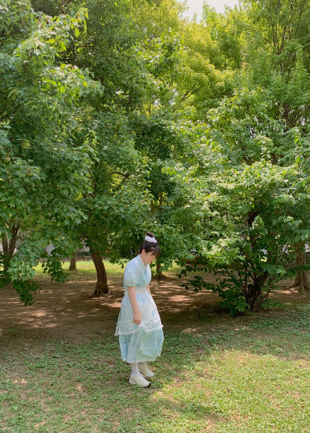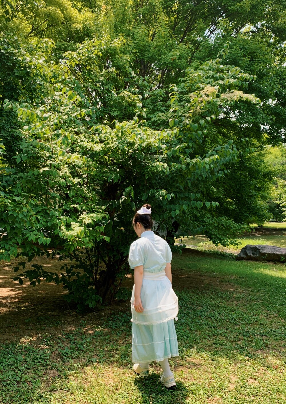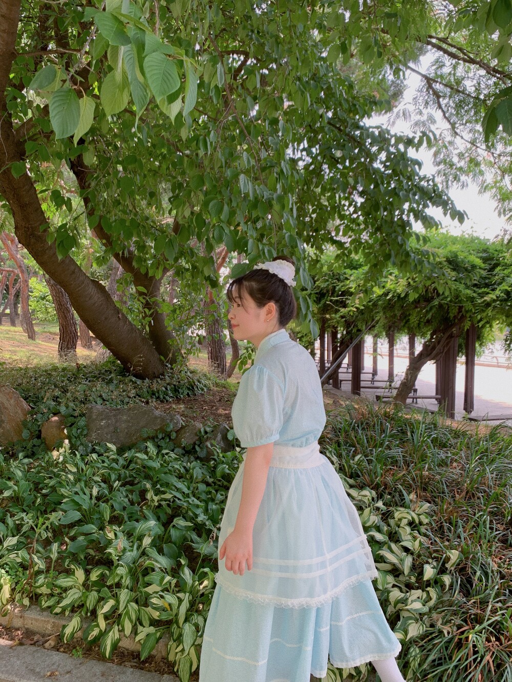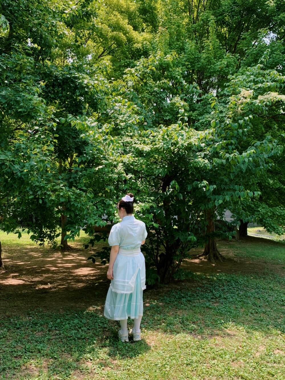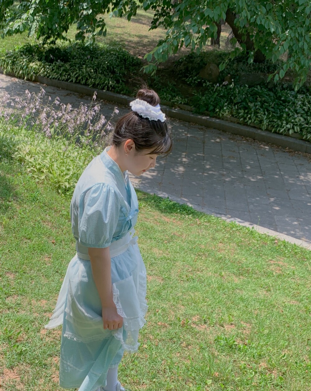 밑단에는 빈티지한 핀턱과 레이스가 포인트인 주머니와 패치워크 로고로 예쁜 디테일을 가득 담았답니다~🫧🫧