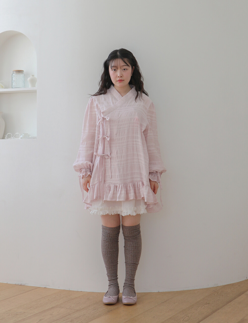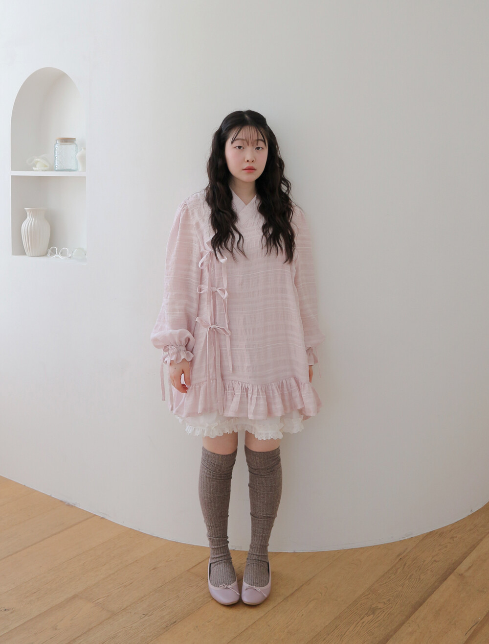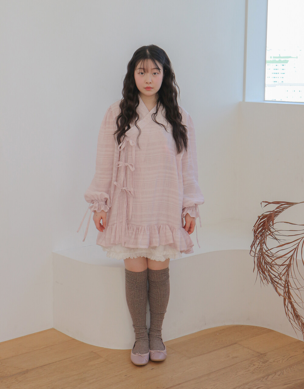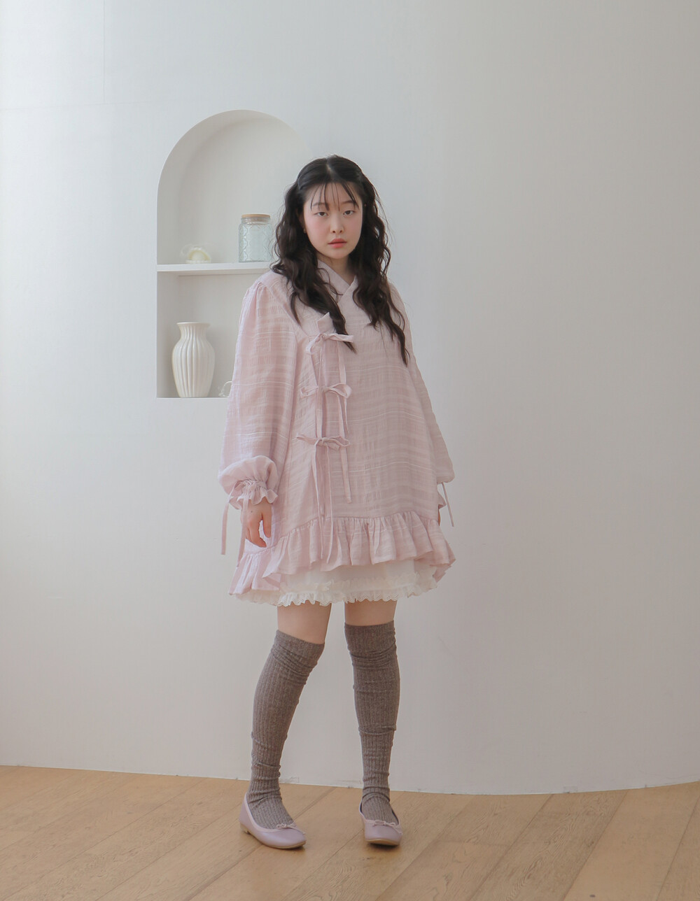 두꺼운 깃과 3개의 고름(리본)은 러블리하면서도 클래식한 분위기를 더합니다.