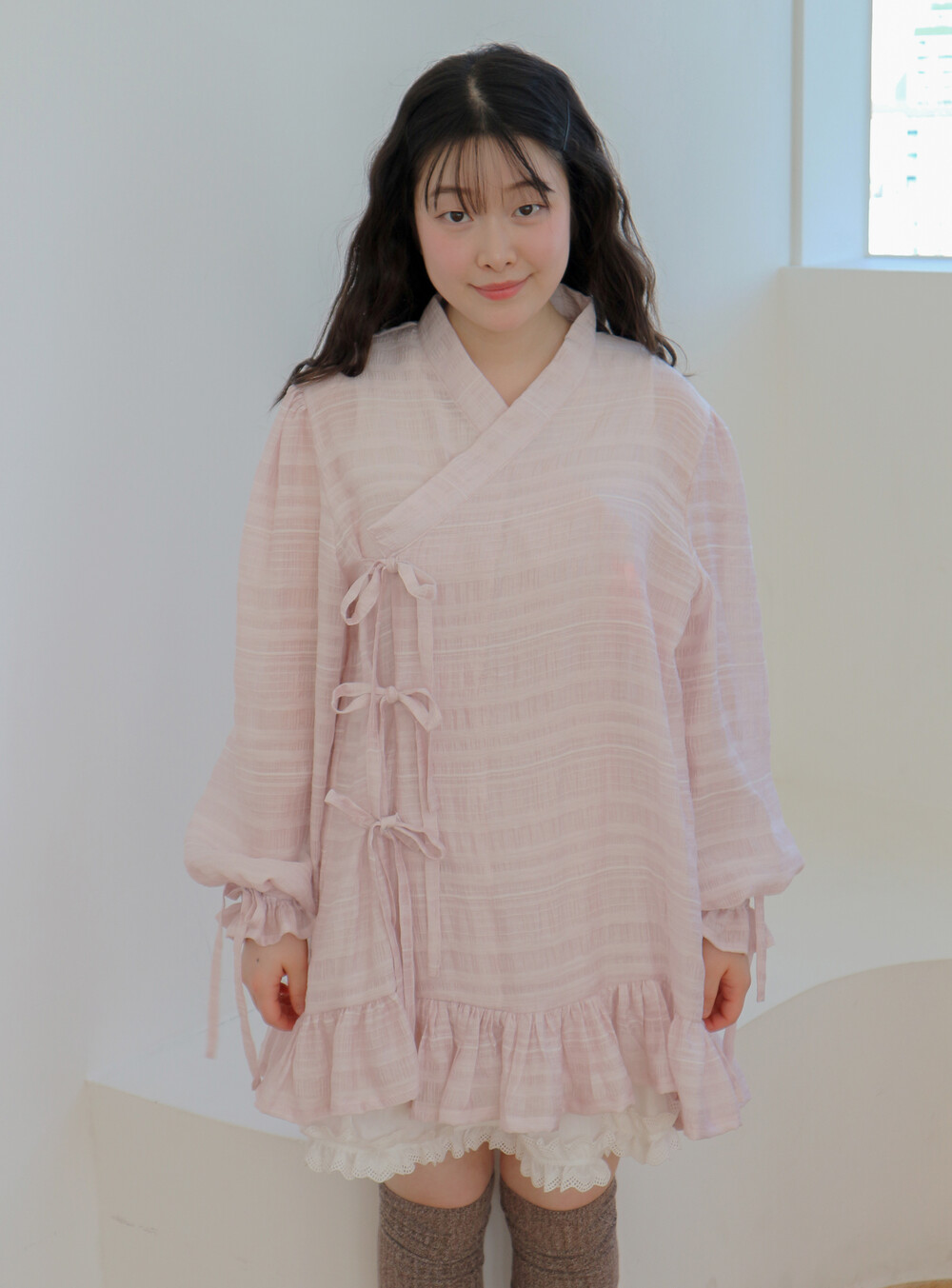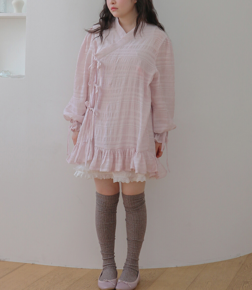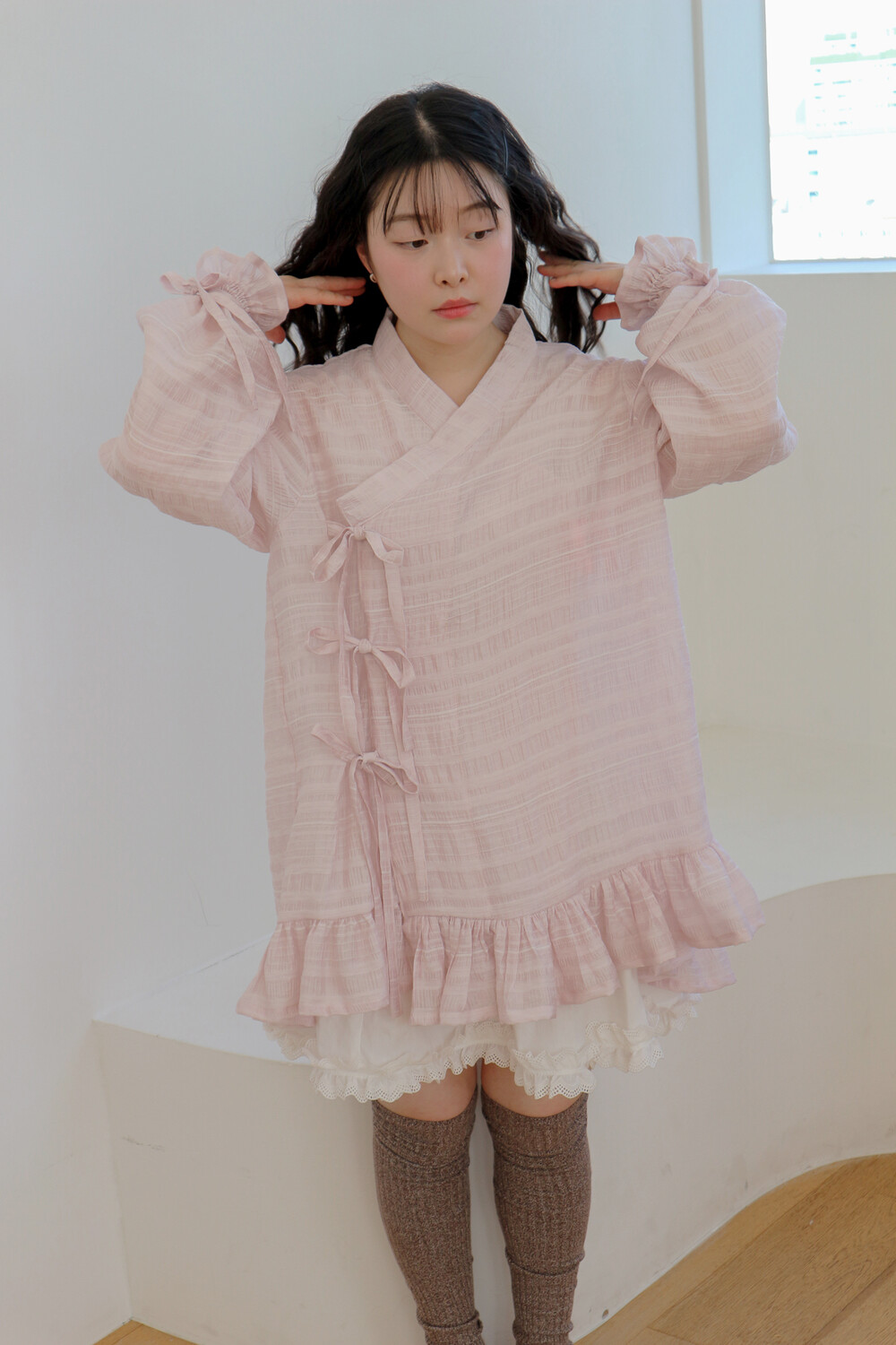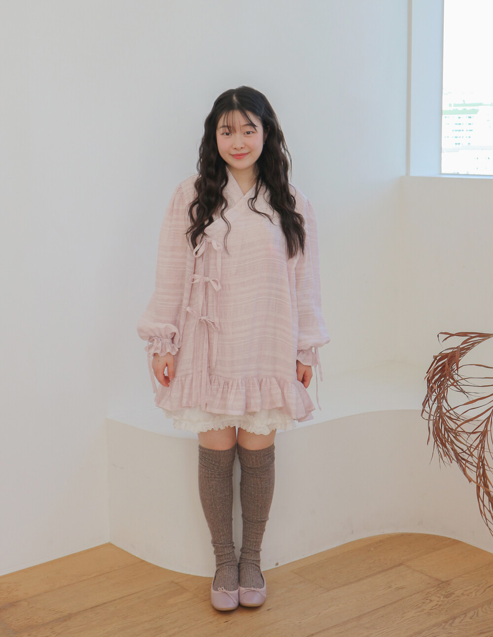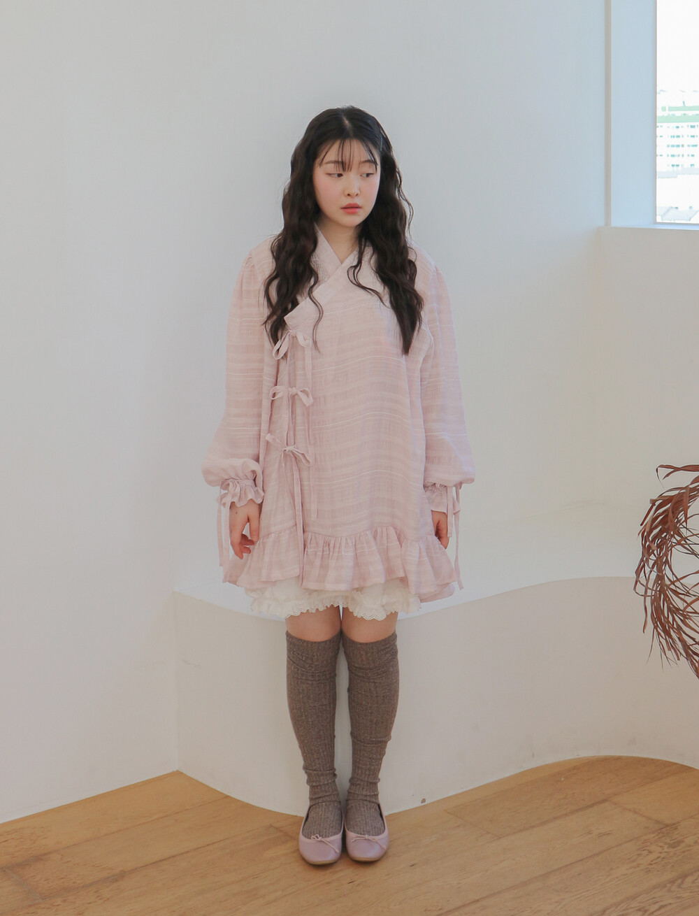 두꺼운 깃과 3개의 고름(리본)은 러블리하면서도 클래식한 분위기를 더합니다.