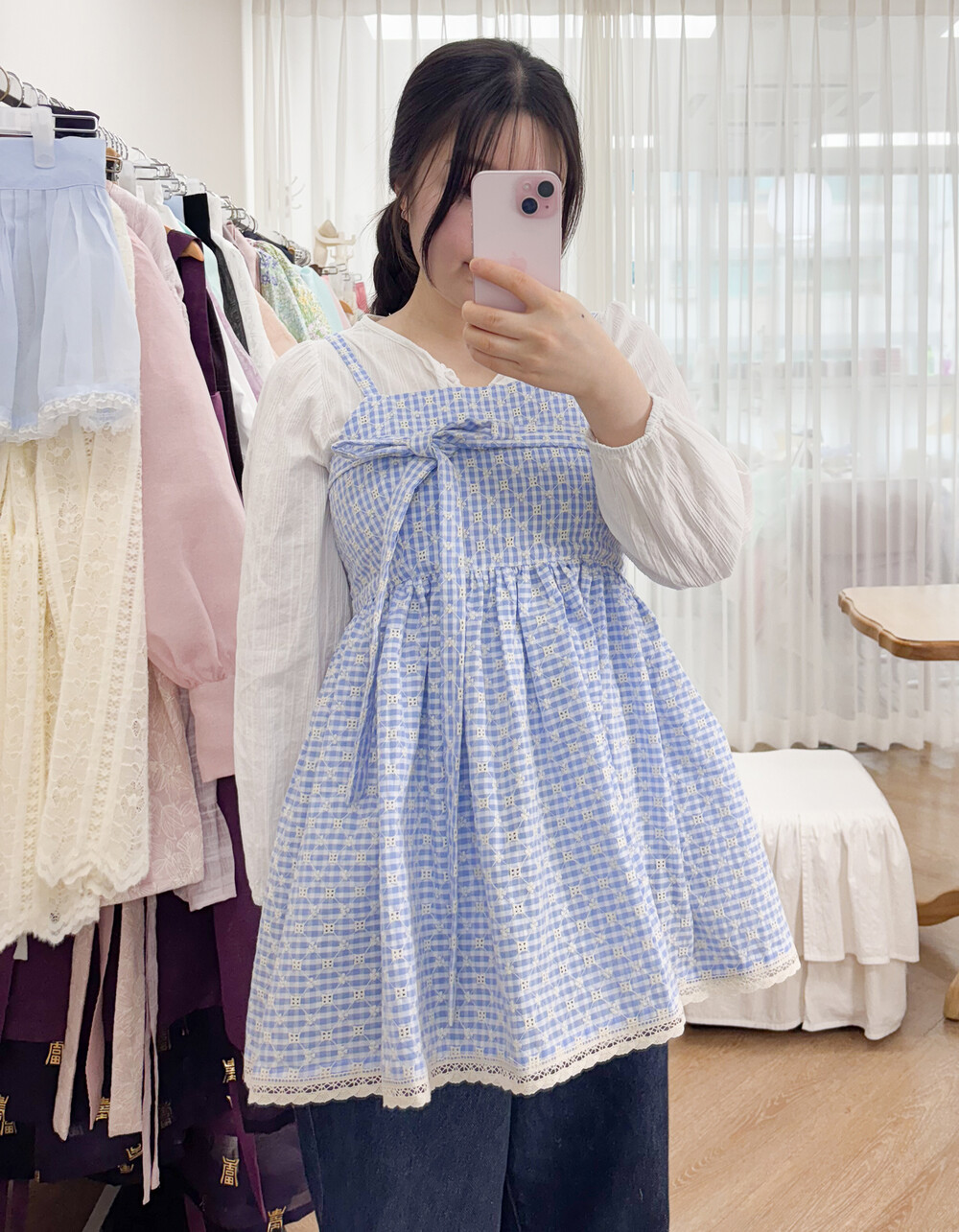 키 : 154cm / 기성복사이즈 : 66size / 기본사이즈 착용