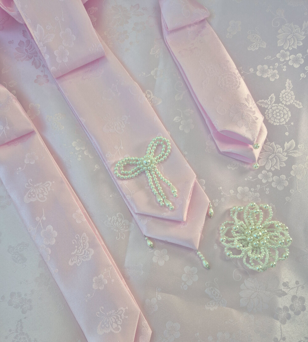 몽환적인 나비와 꽃 패턴과 진주로 사랑스러움을 더하였습니다.