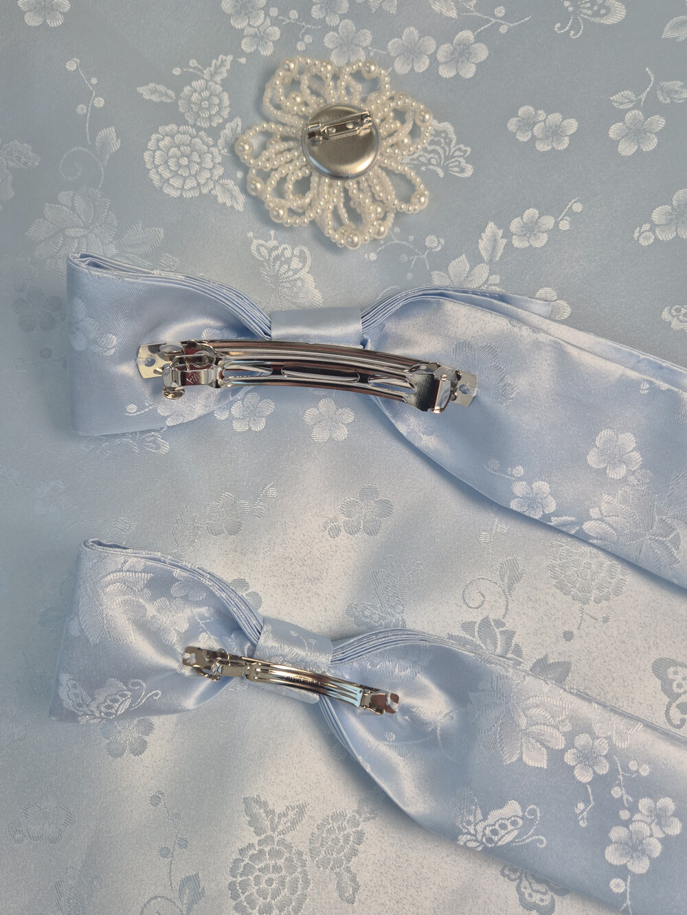 리본 댕기 헤어핀입니다. 뒤에 작은 헤어클립핀이 부착이 되어있는 형태이며