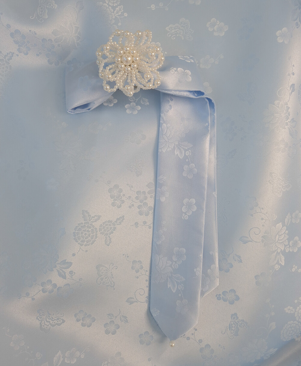 고급스러운 광택감이 있는 한복 양단 원단으로 제작 된 긴 사이즈의