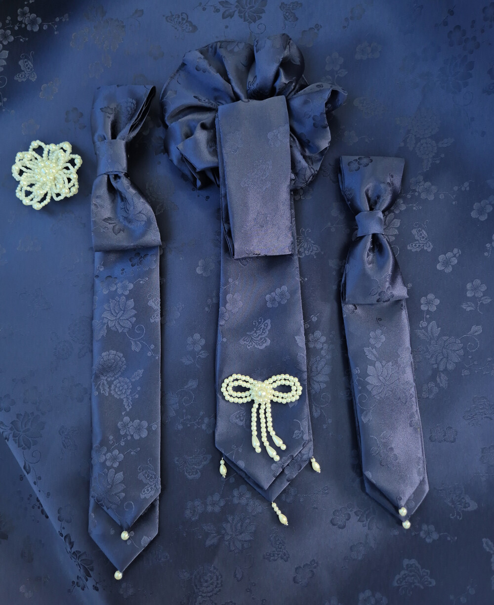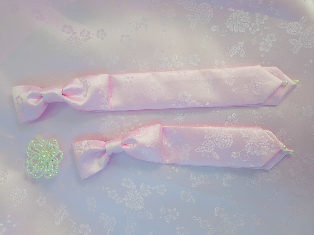 양단 리본 댕기 헤어핀과 브로치