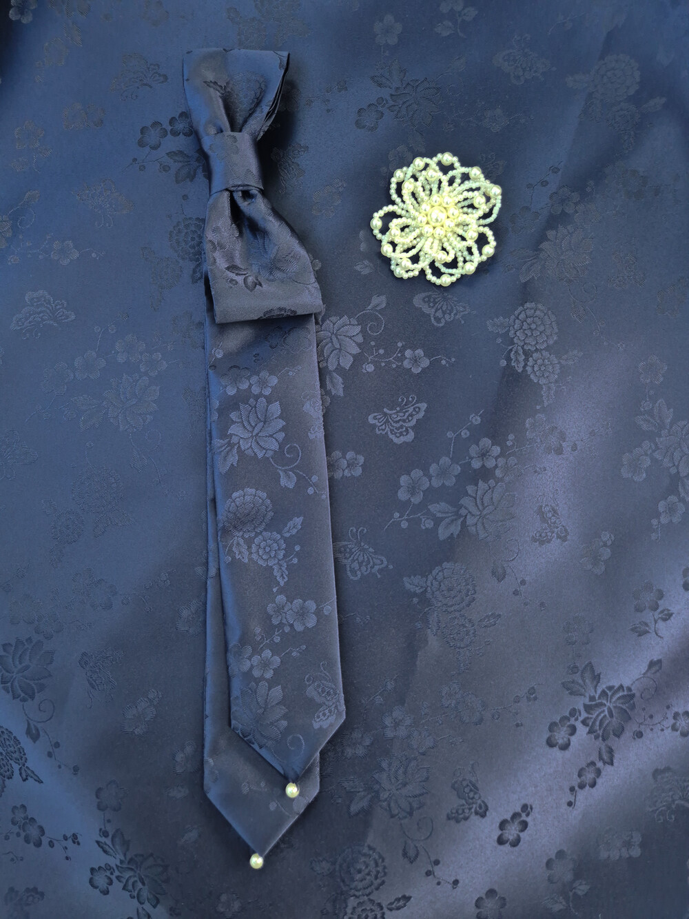 진주 브로치는 진주로 섬세하게 꽃 모양으로 제작되었으며,