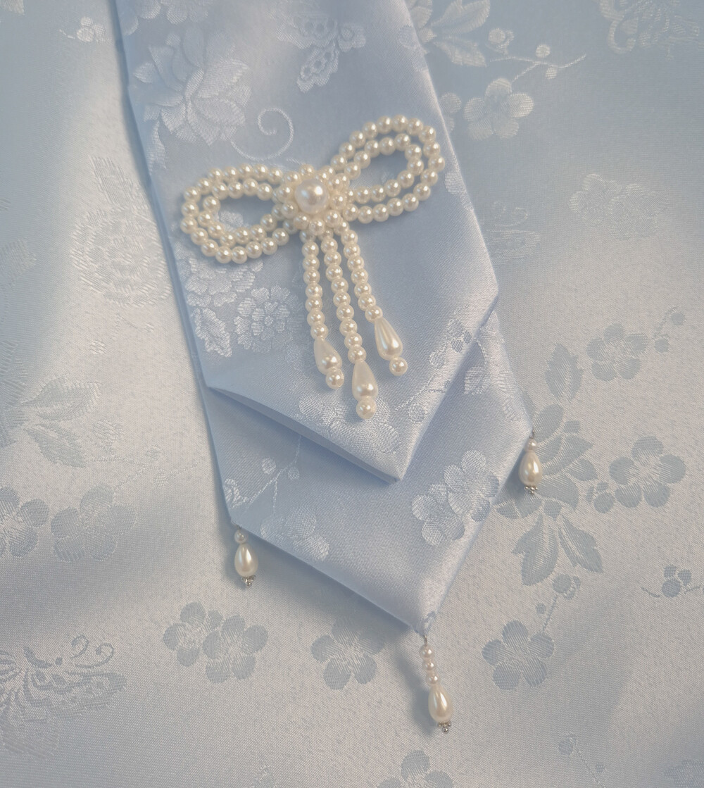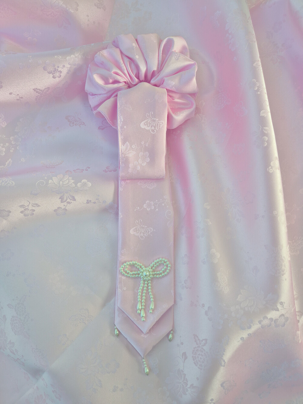 다른 한쪽 댕기 끝은 물방울 모양의 드롭된 진주 장식을 더하였습니다.