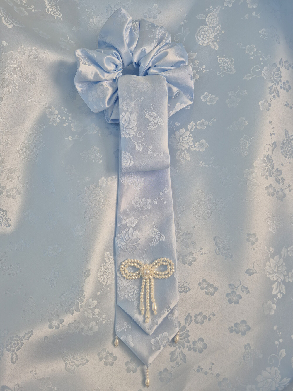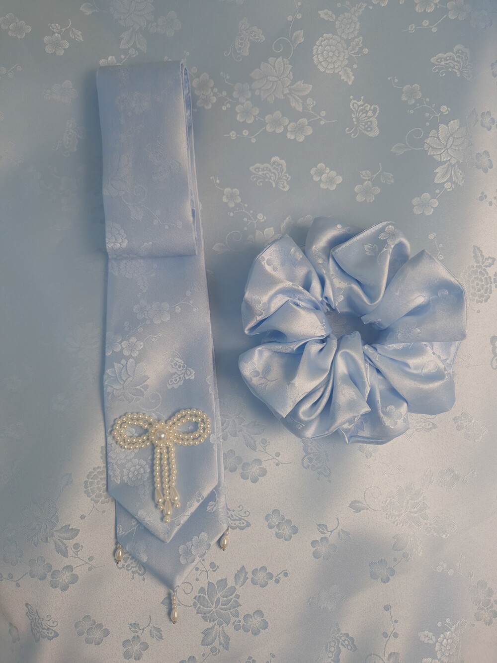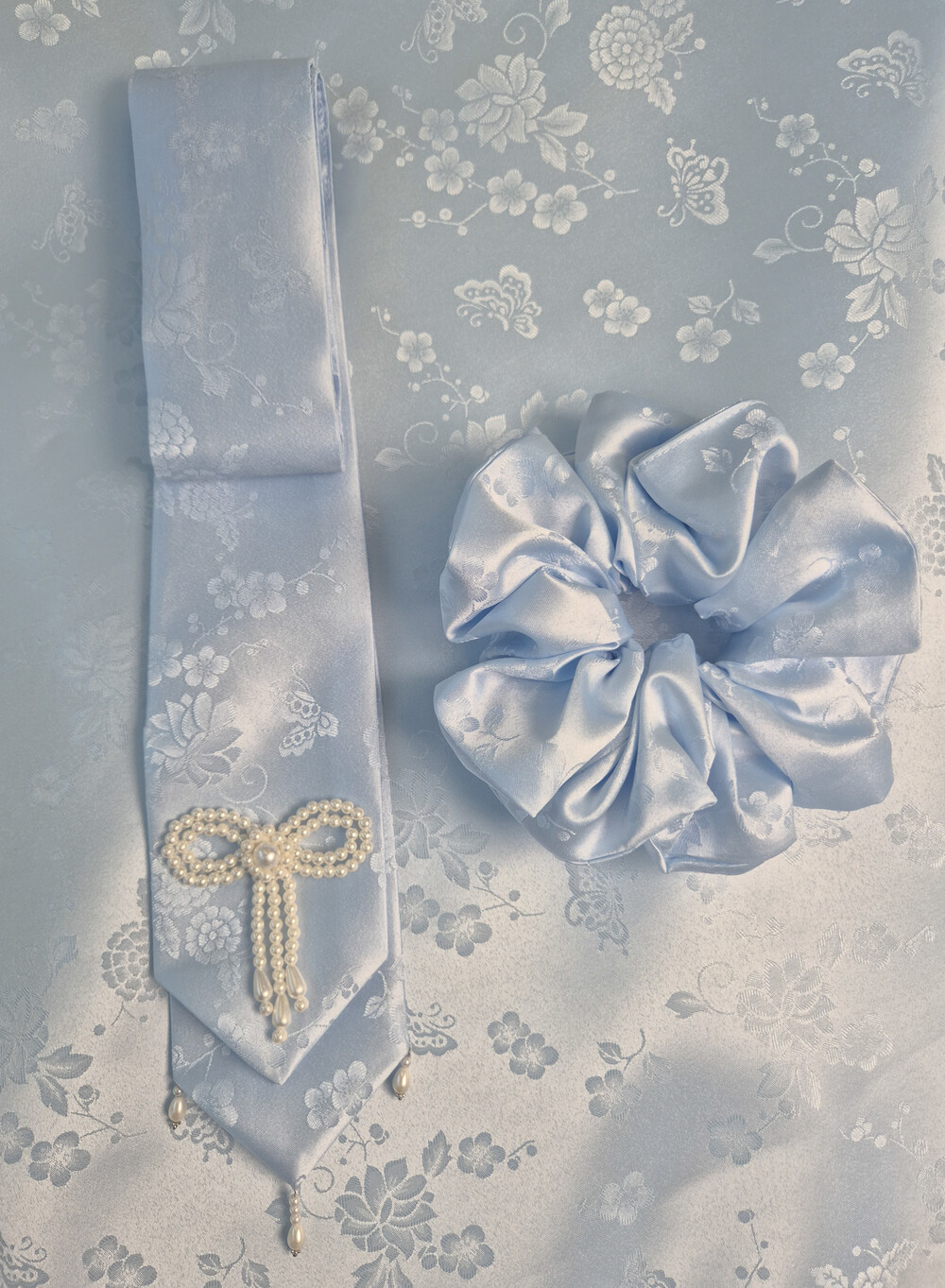 고급스러운 광택감이 있는 한복 양단 원단으로 제작 된 긴 사이즈 댕기와 헤어슈슈 입니다.