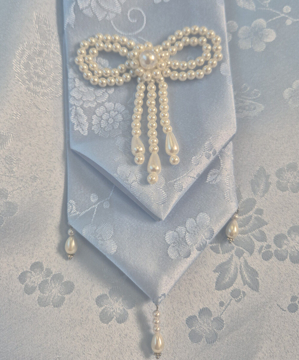 몽환적인 나비와 꽃 패턴과 진주로 사랑스러움을 더하였습니다.