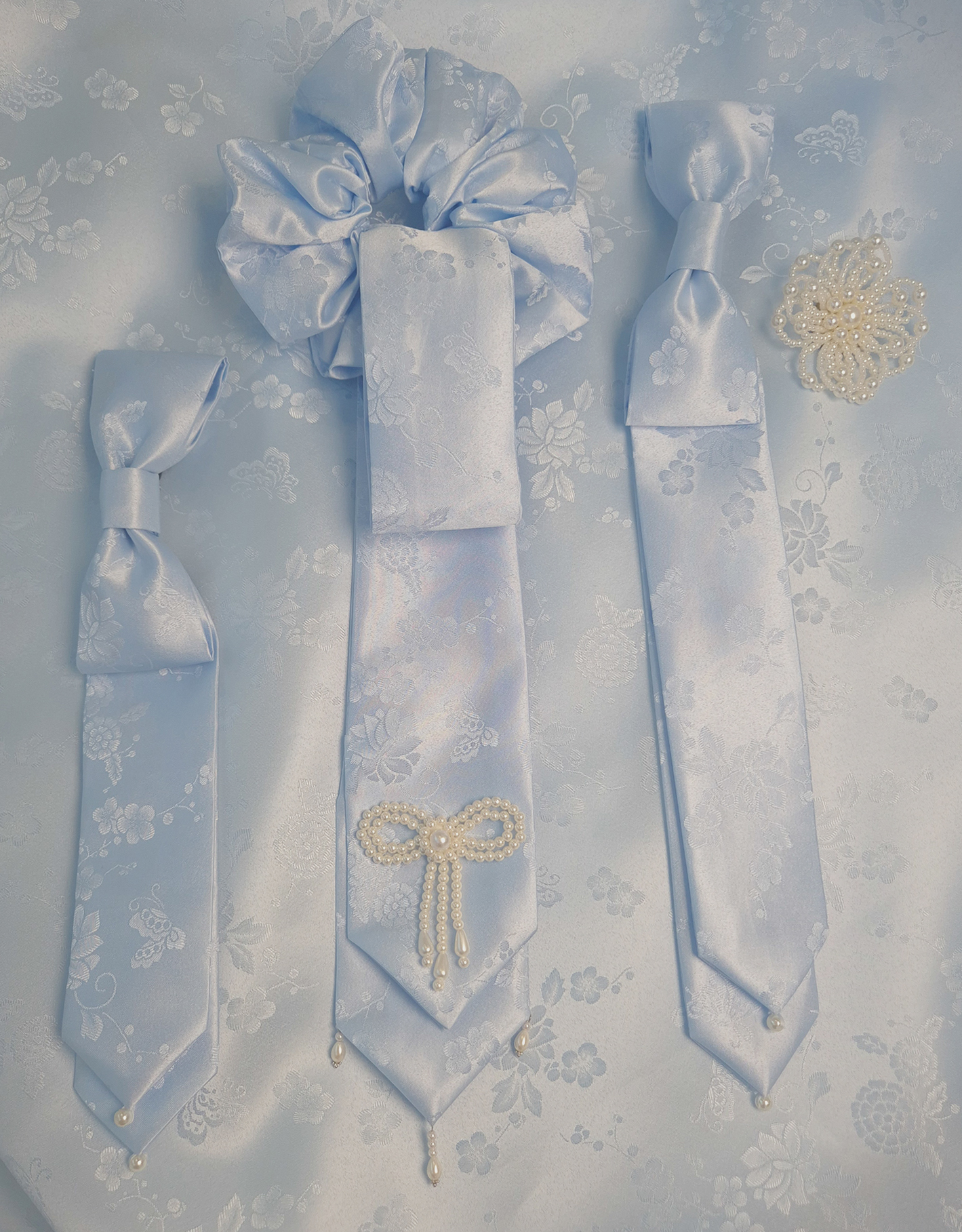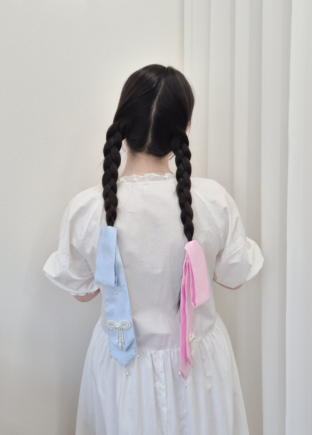 헤어슈슈와 댕기를 따로 착용하여 3가지 스타일로 다양하게 연출 가능합니다.