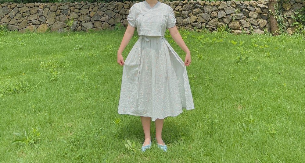 허리치마는 랩스커트 방식으로 구멍에 끈을