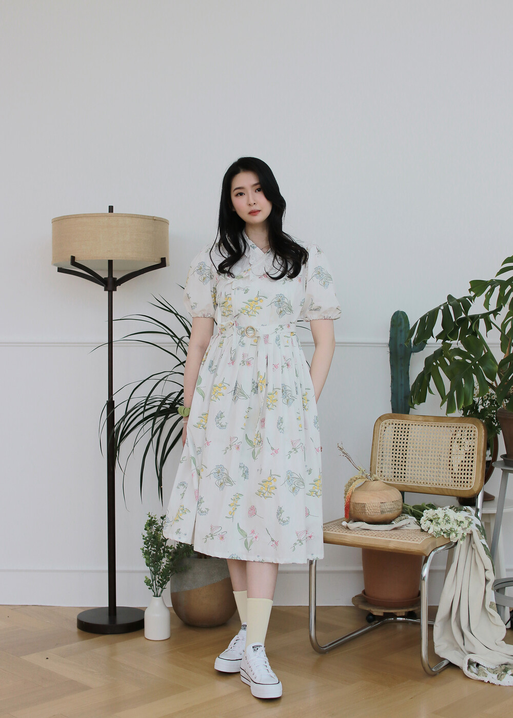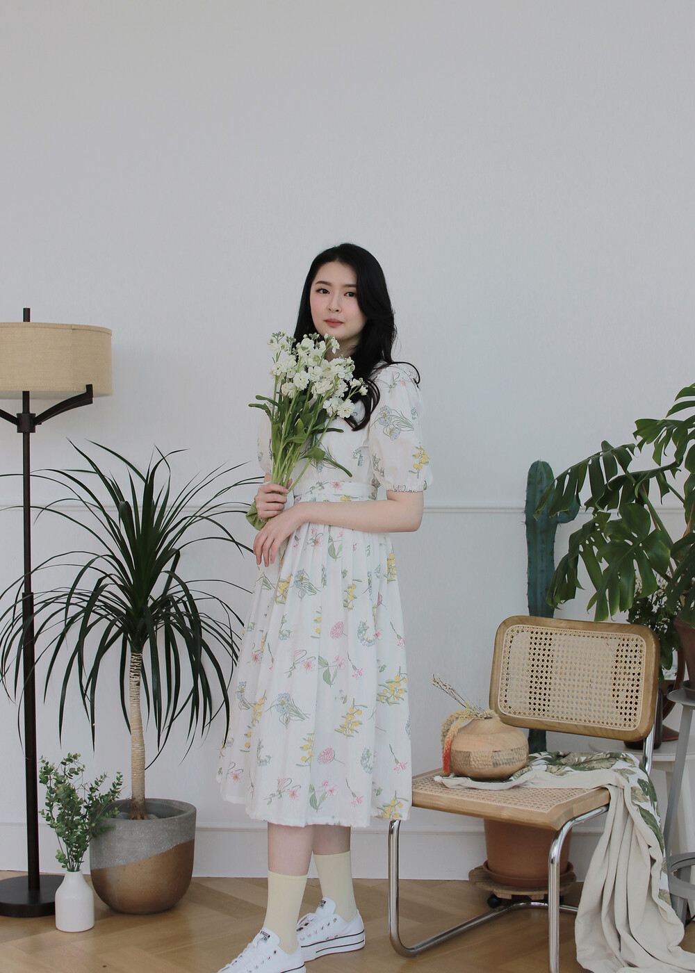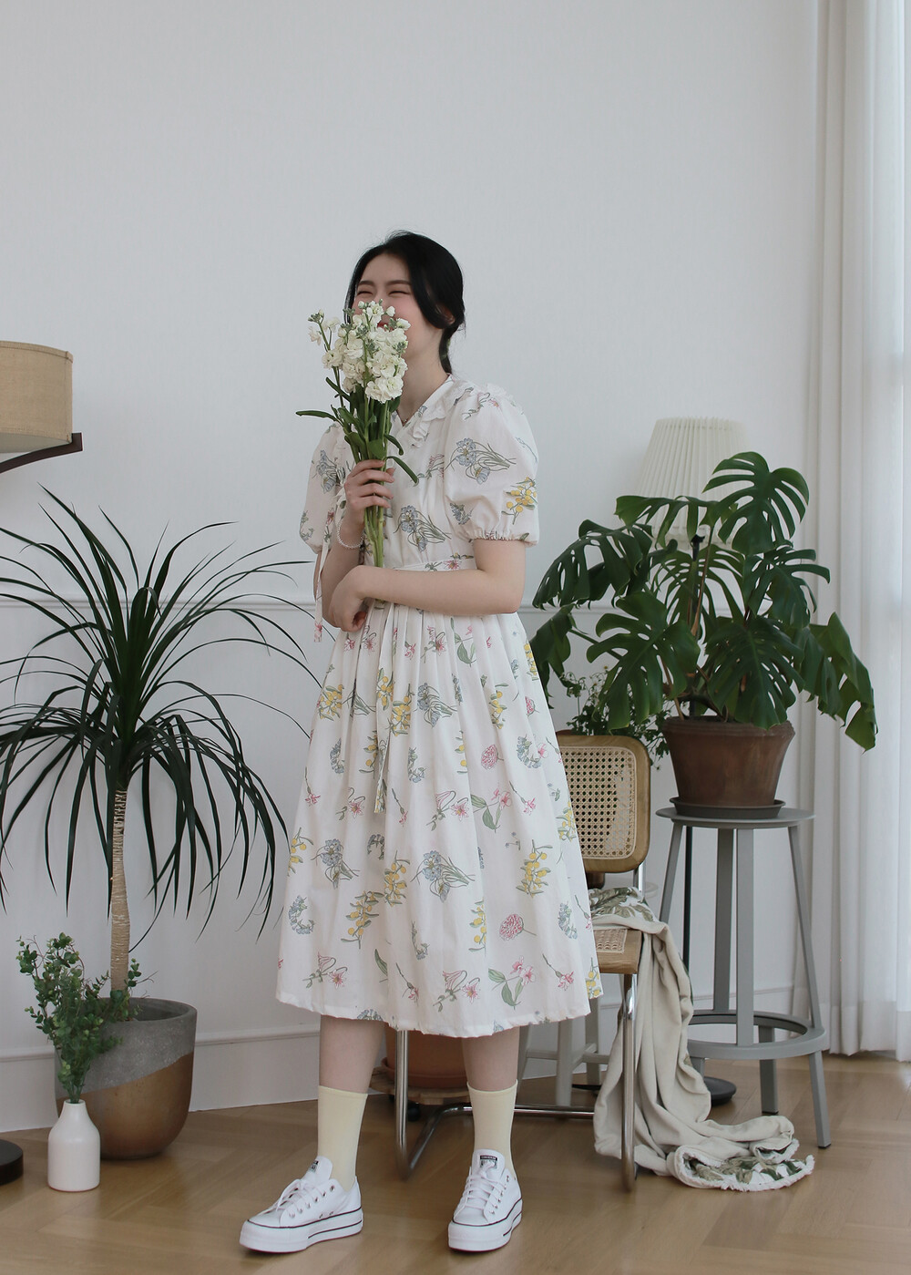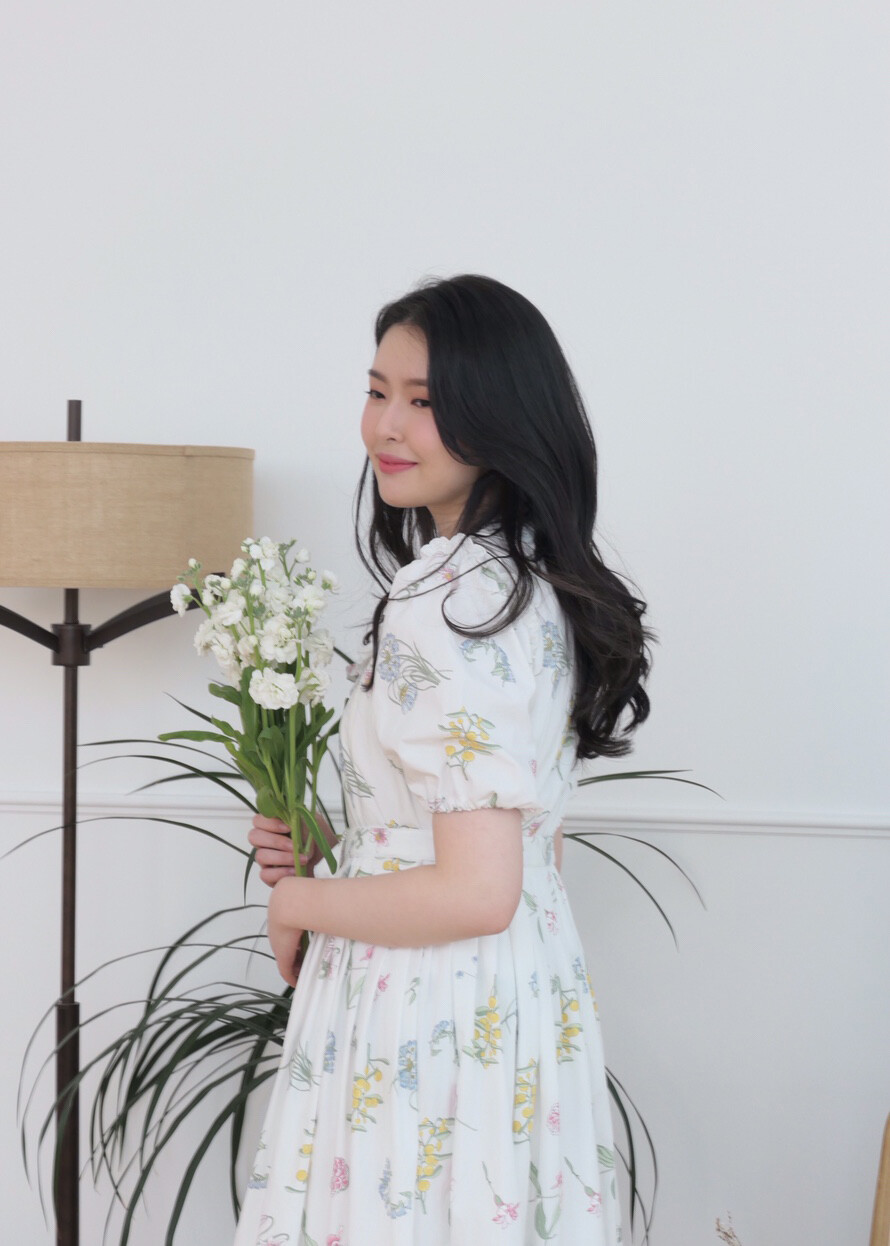 시원한 여름원피스로 작은 레이스 디테일들을 어깨와