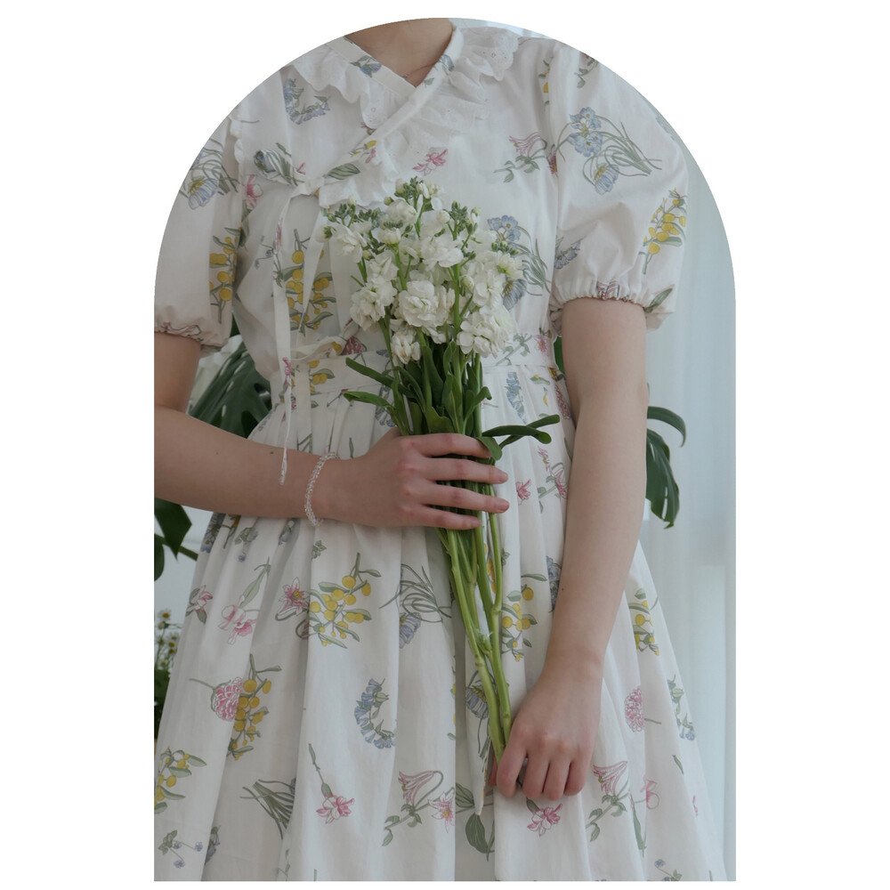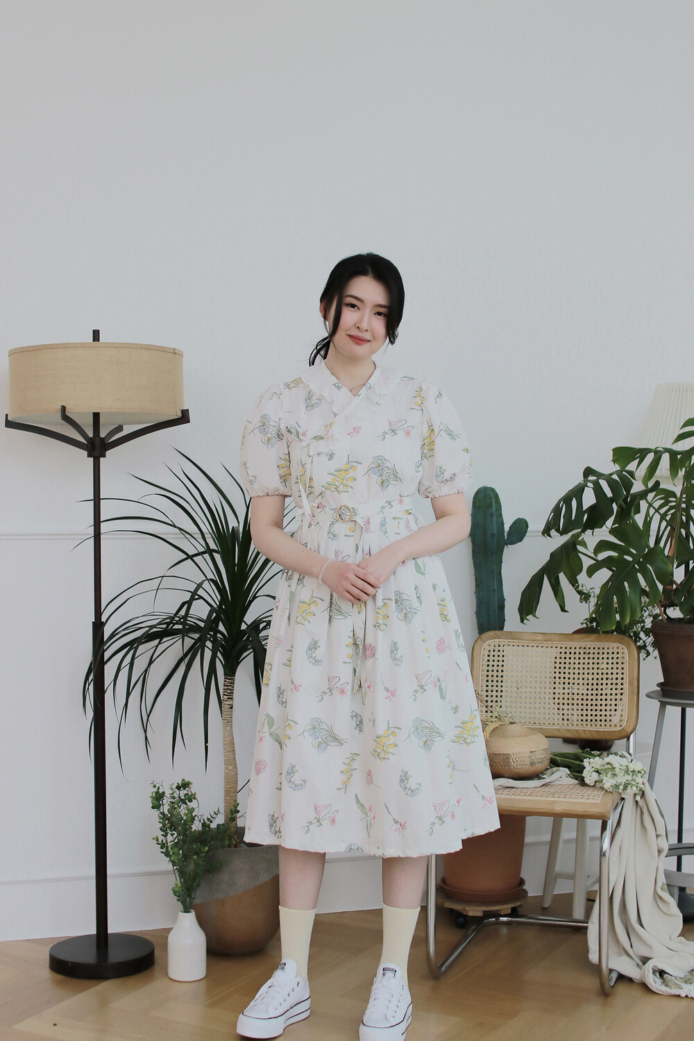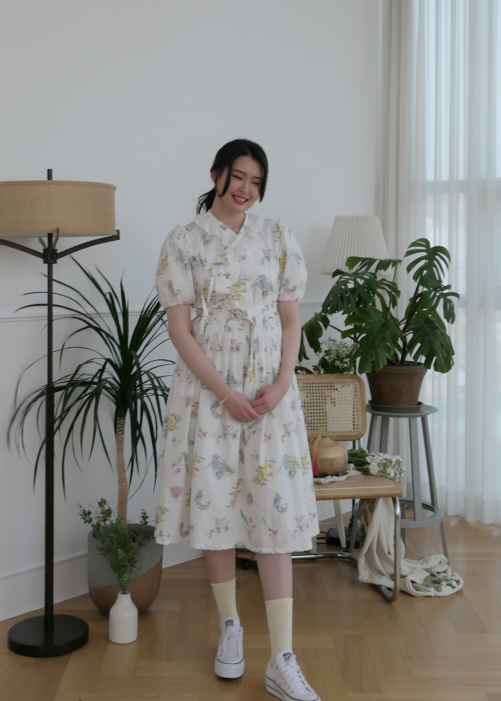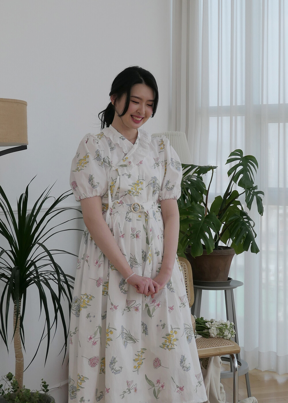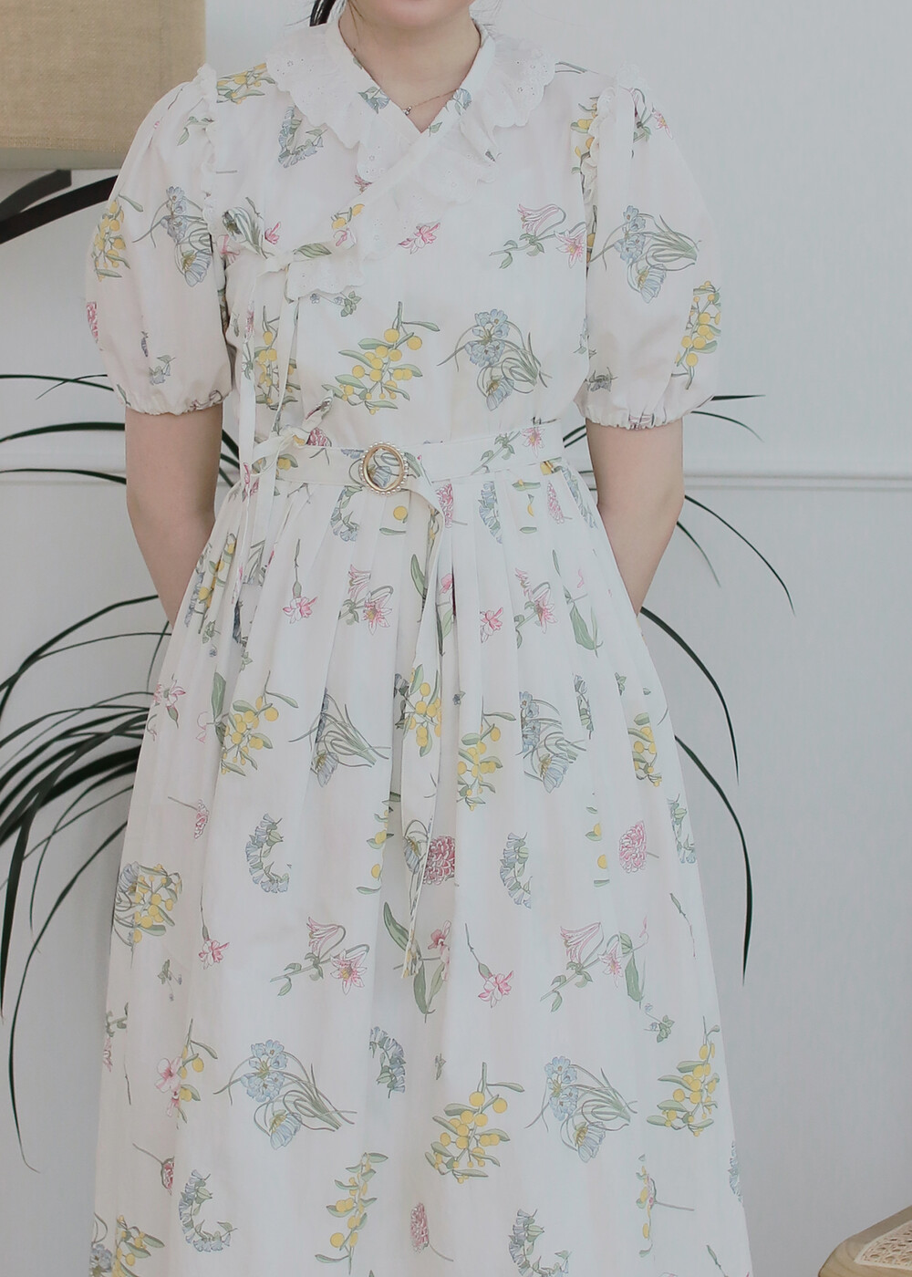 얇은 고름이 이중으로 달려있고, 허리벨트가 원피스를