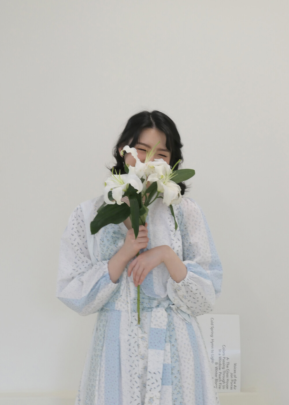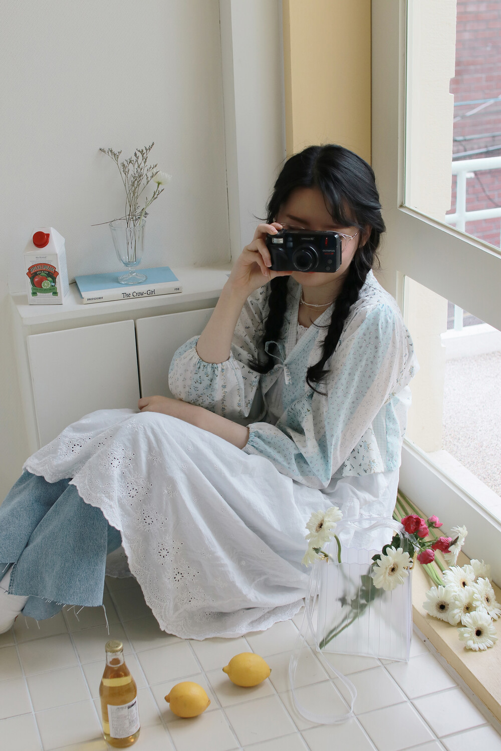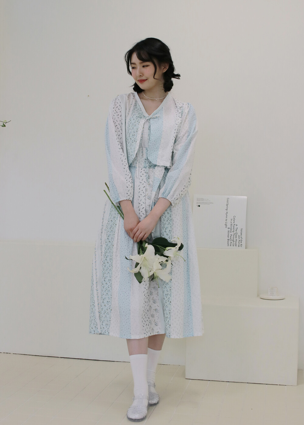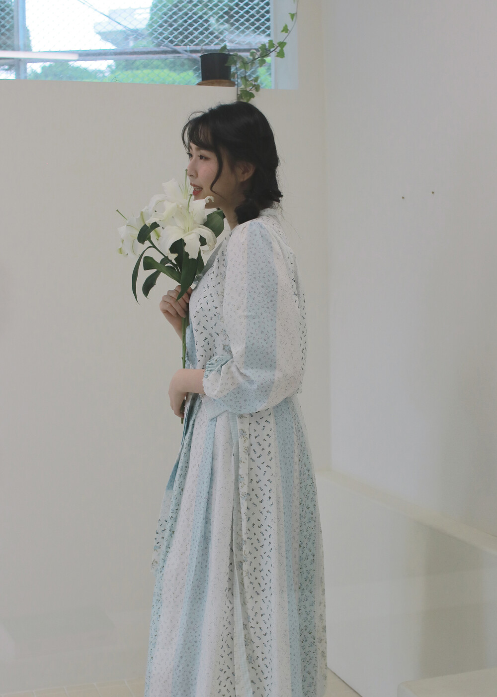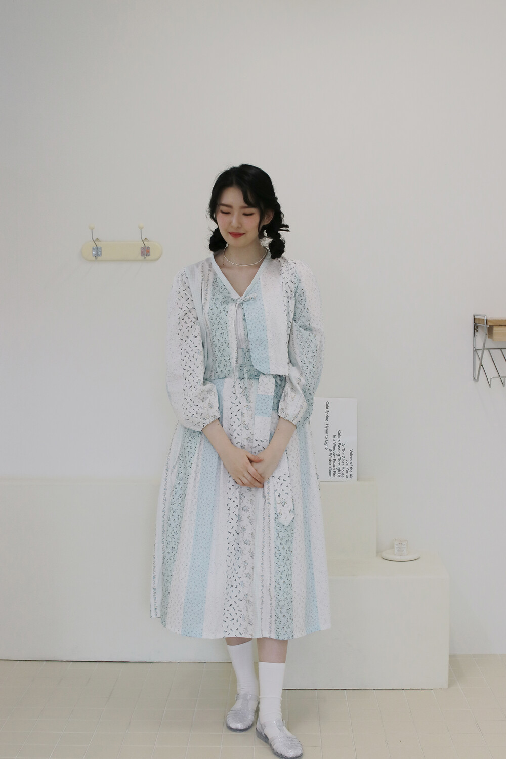 활용한 면 원단 투피스입니다.청량한 색감의 원단과