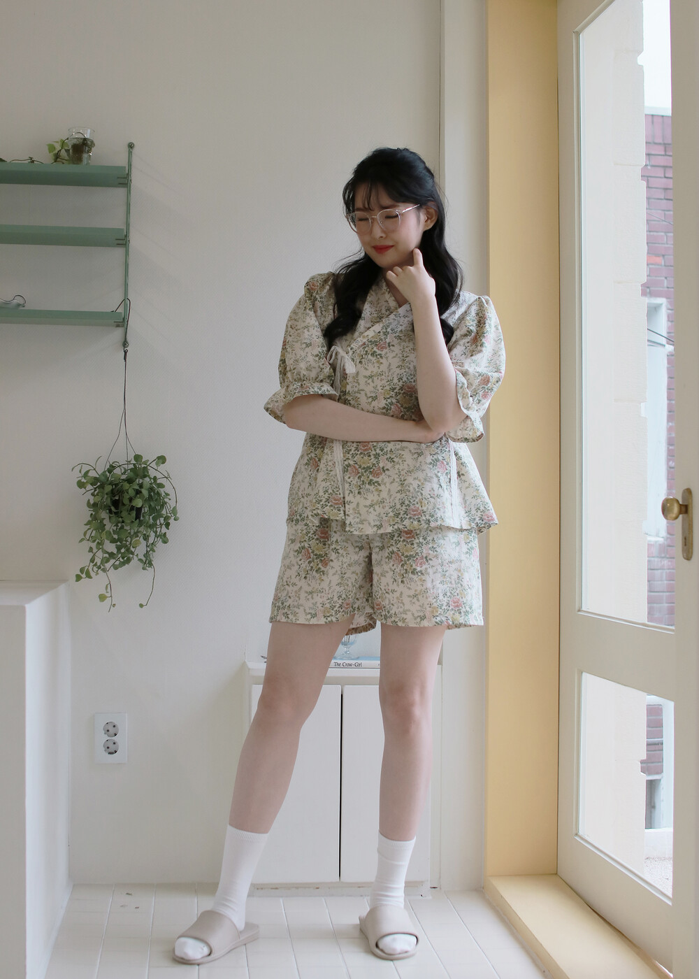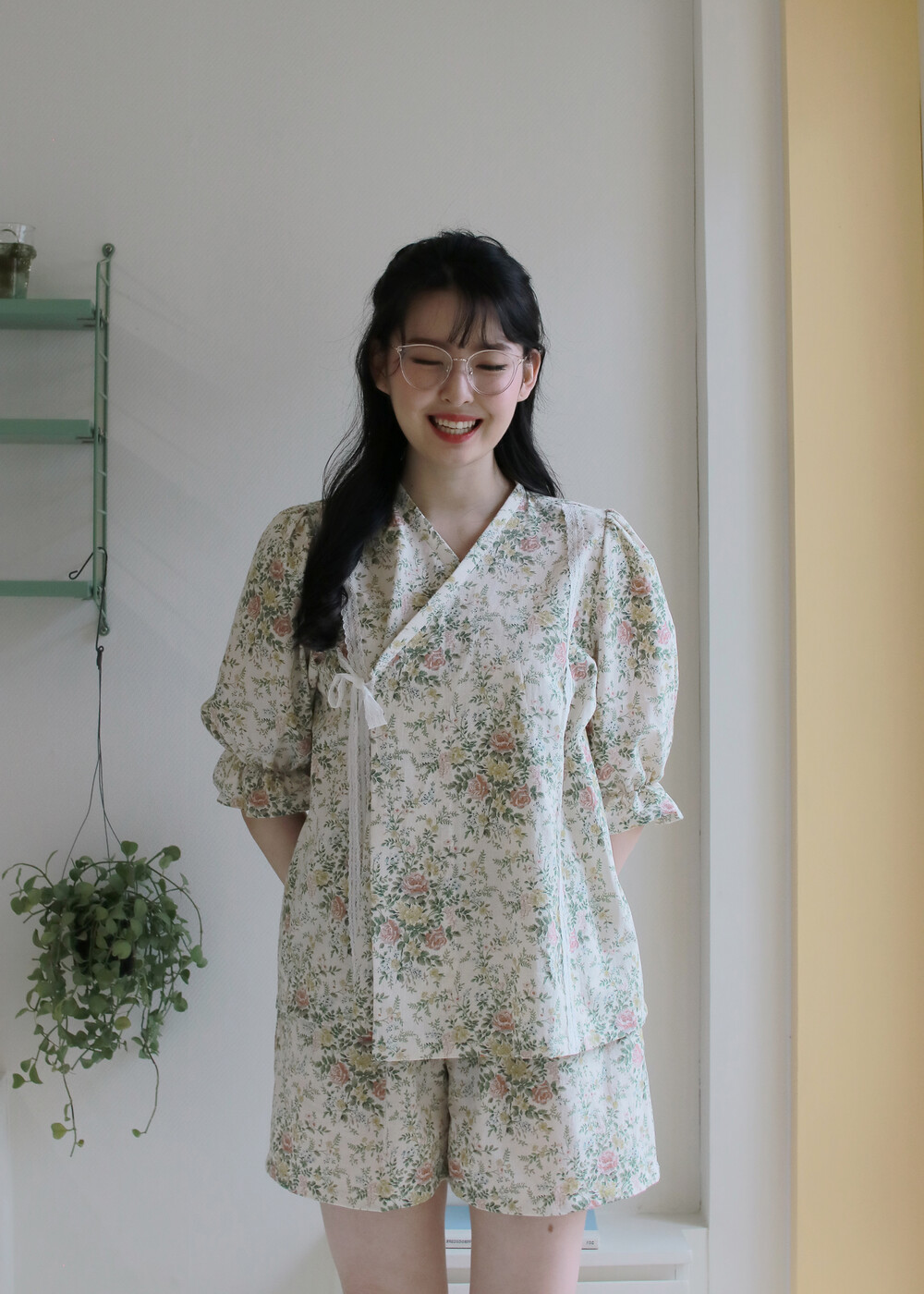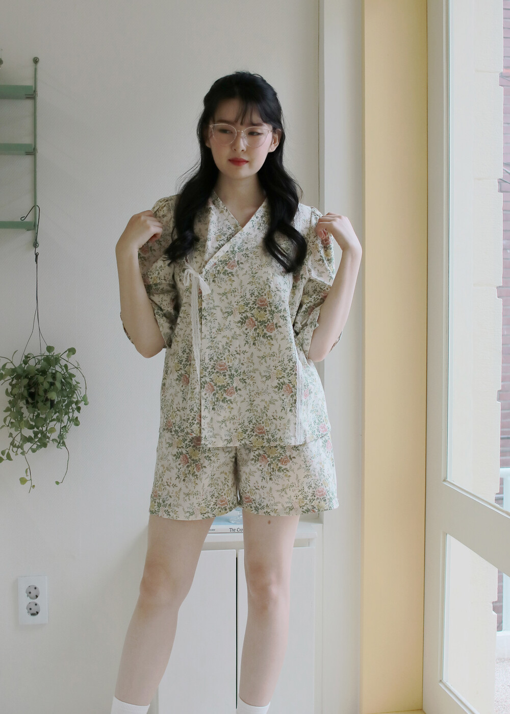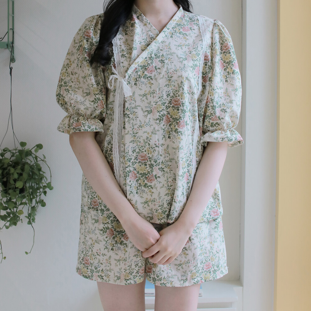 저고리 잠옷 세트입니다. 하늘하늘한 소재에 넉넉한 품과