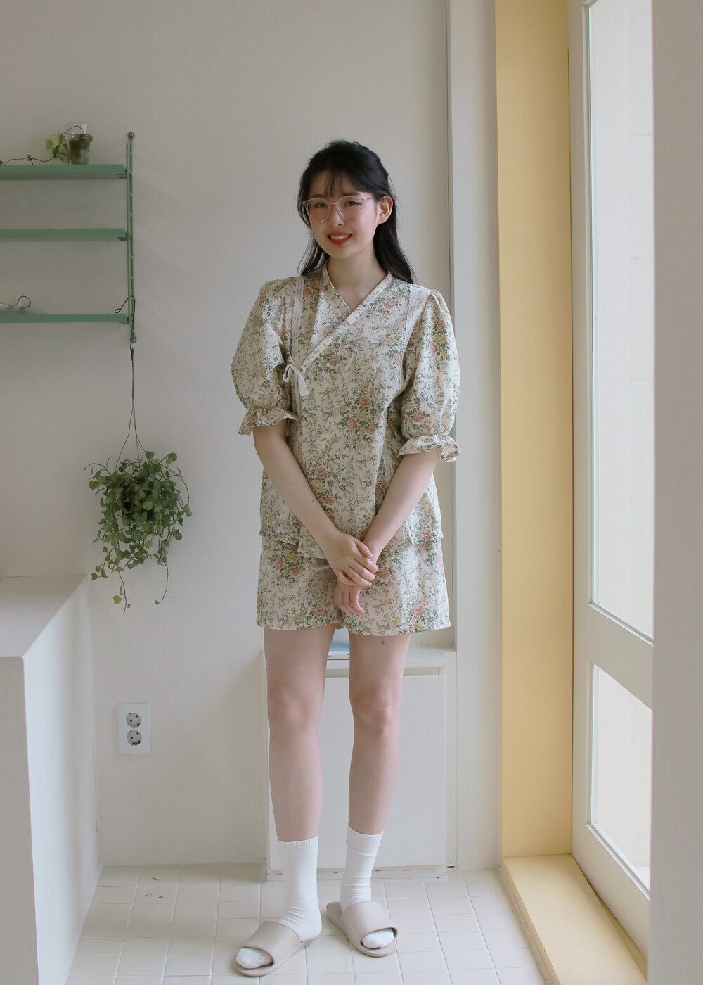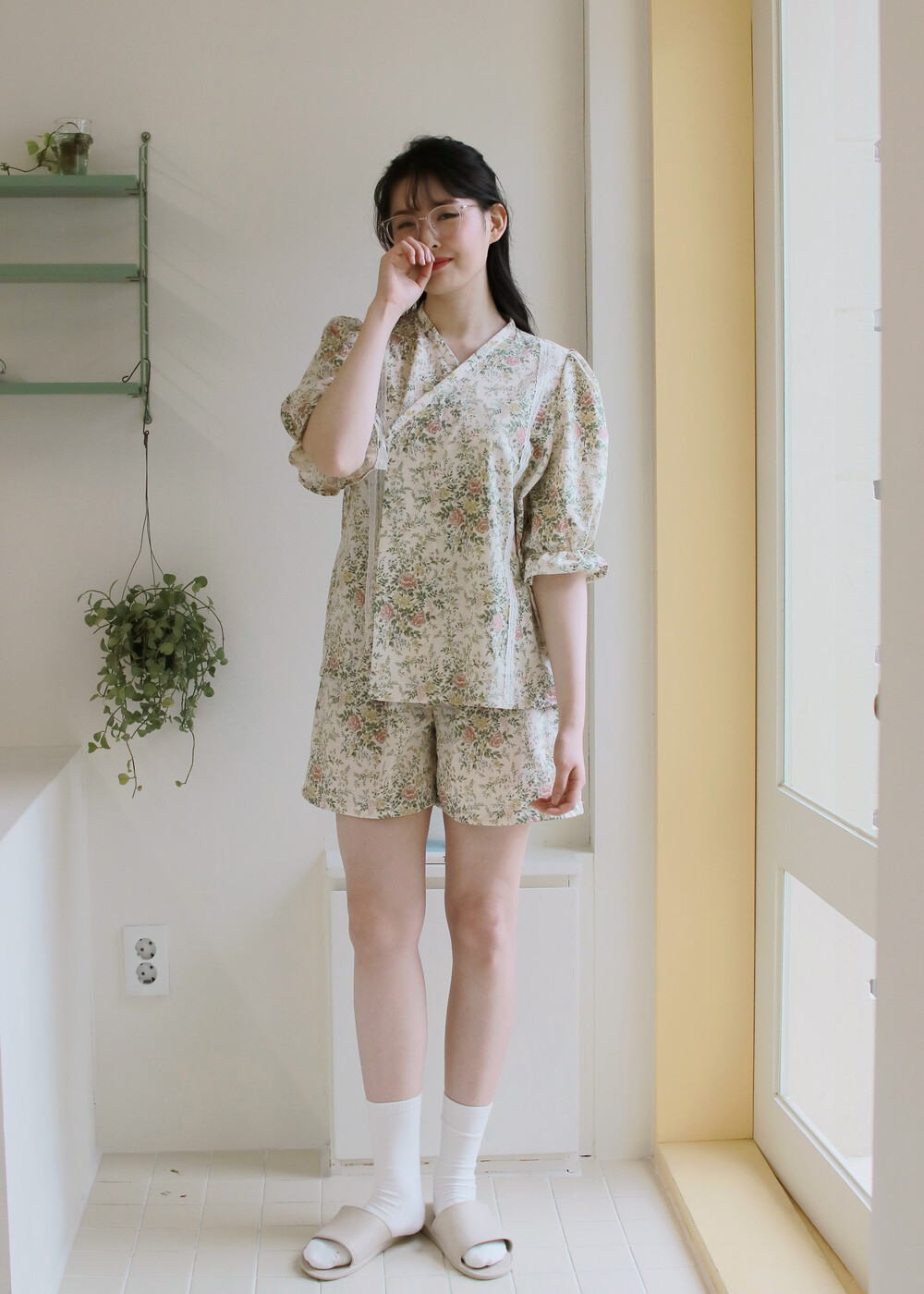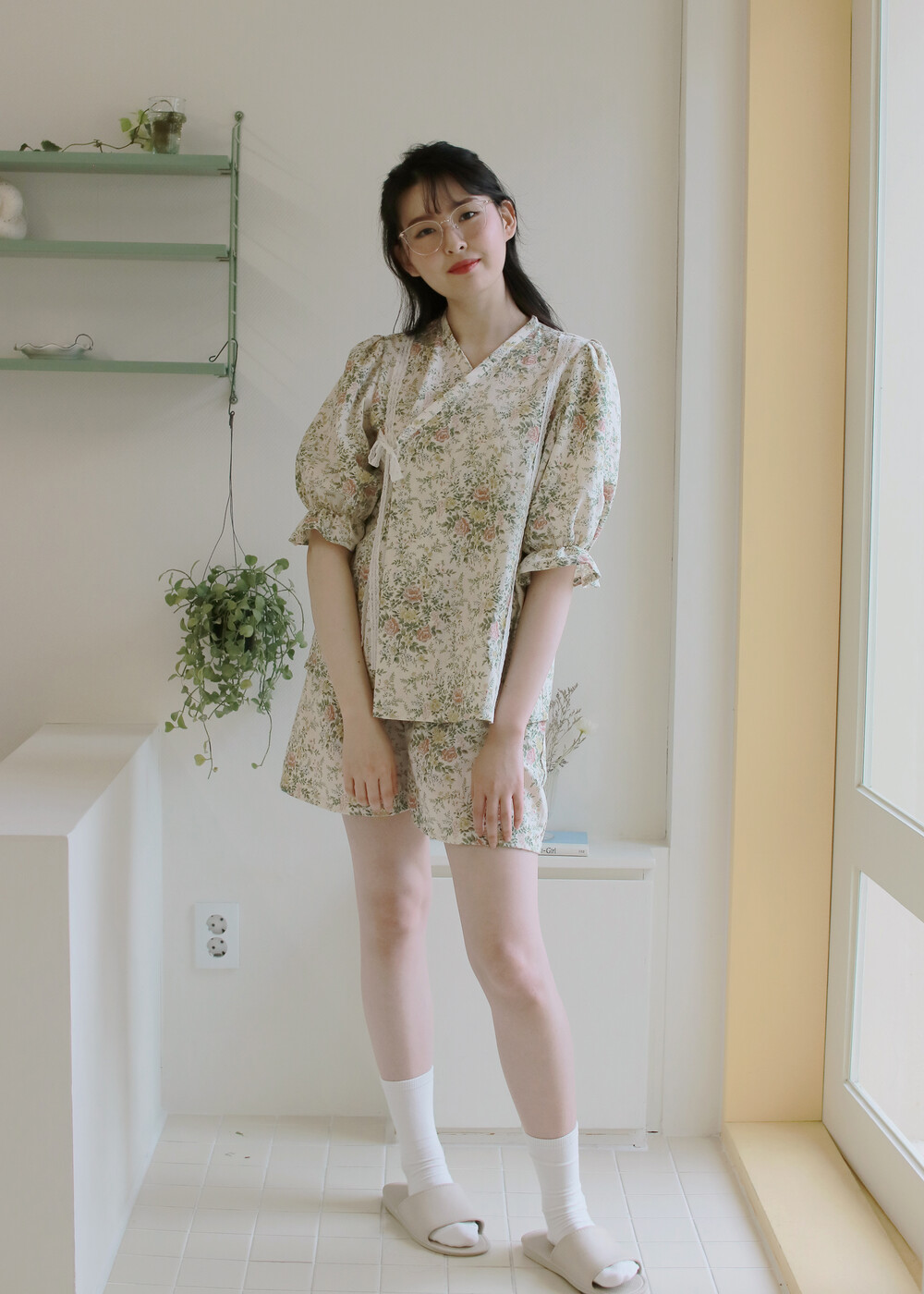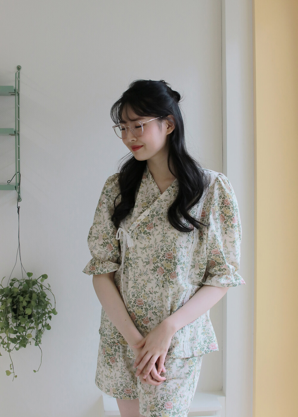 저고리 잠옷 세트입니다. 하늘하늘한 소재에 넉넉한 품과