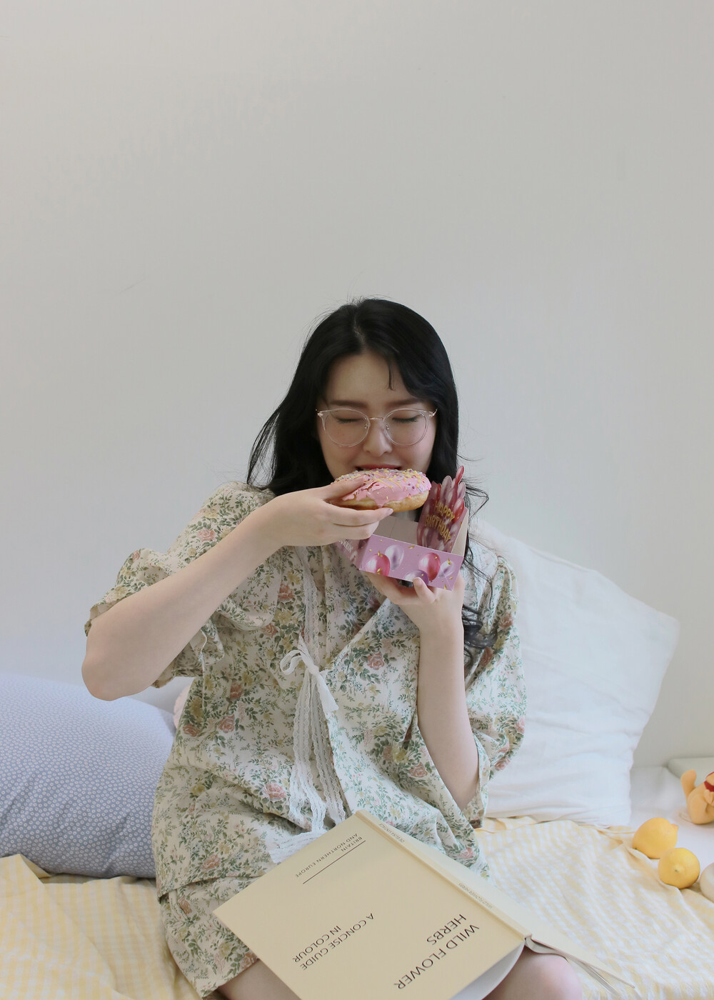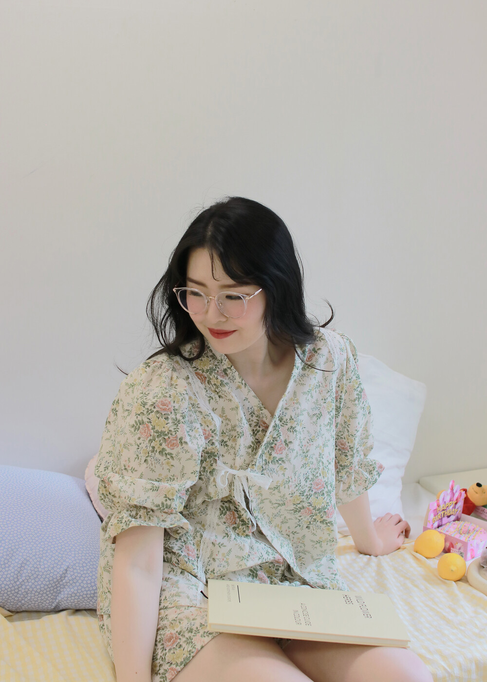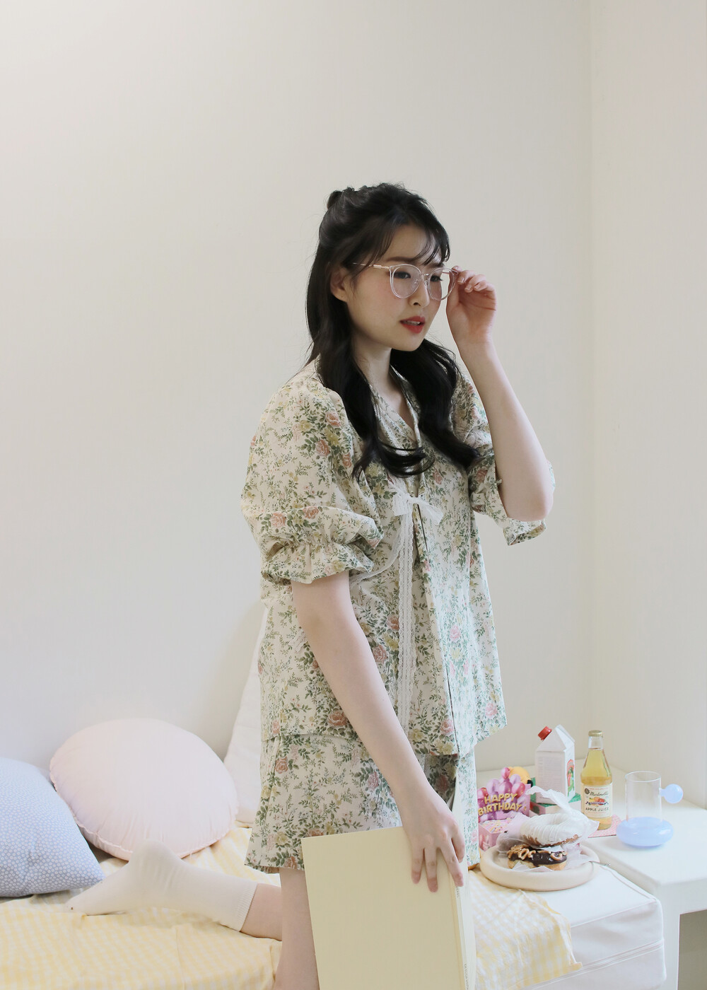 사랑스러운 레이스 장식과 어깨 퍼프가 있어 홈웨어 뿐 아니라