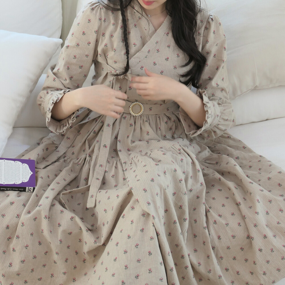 캉캉 철릭 원피스입니다. 진주벨트의 착용 유무에 따라