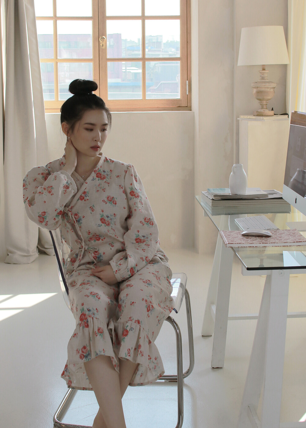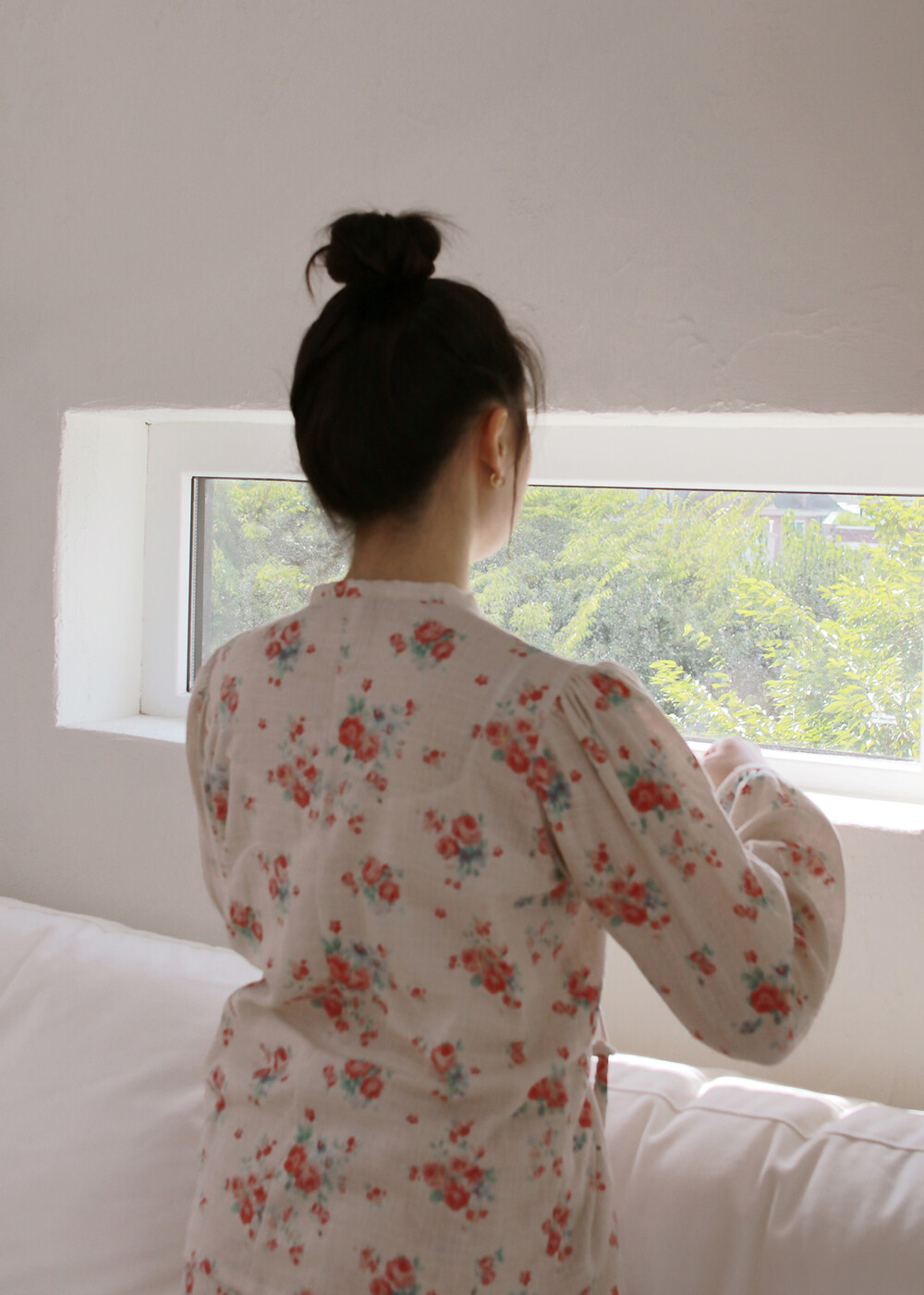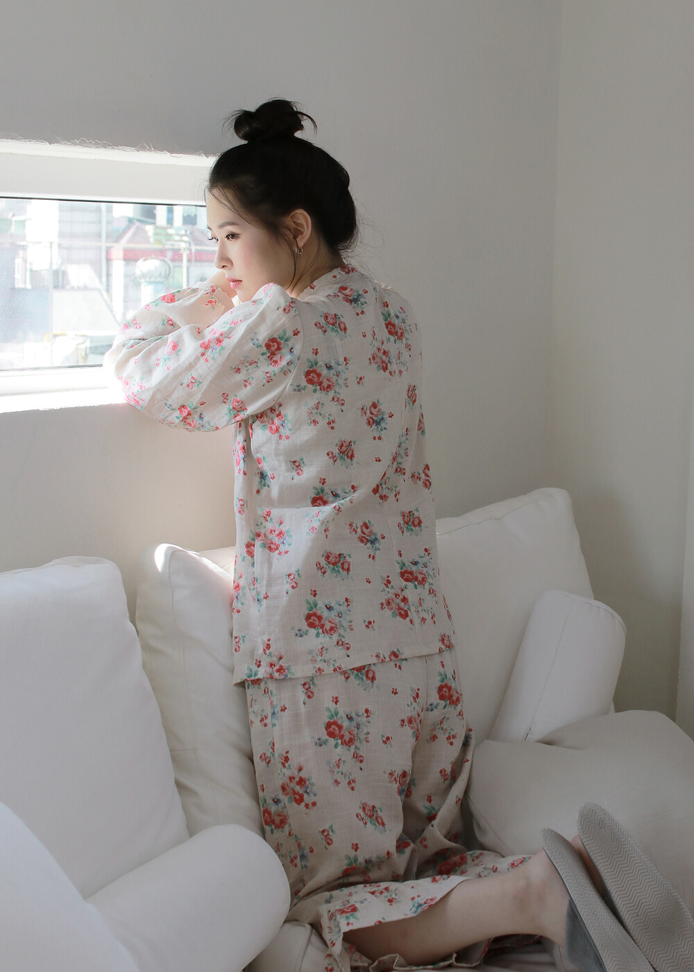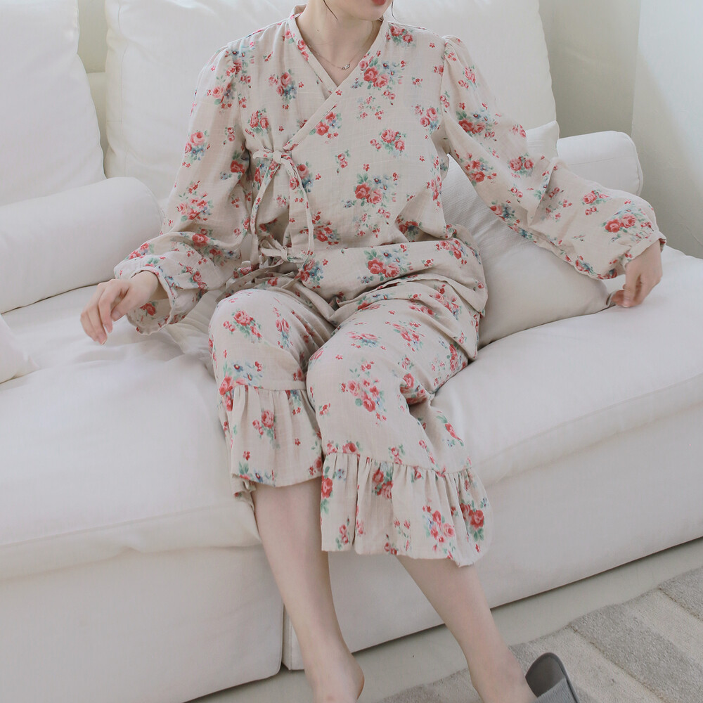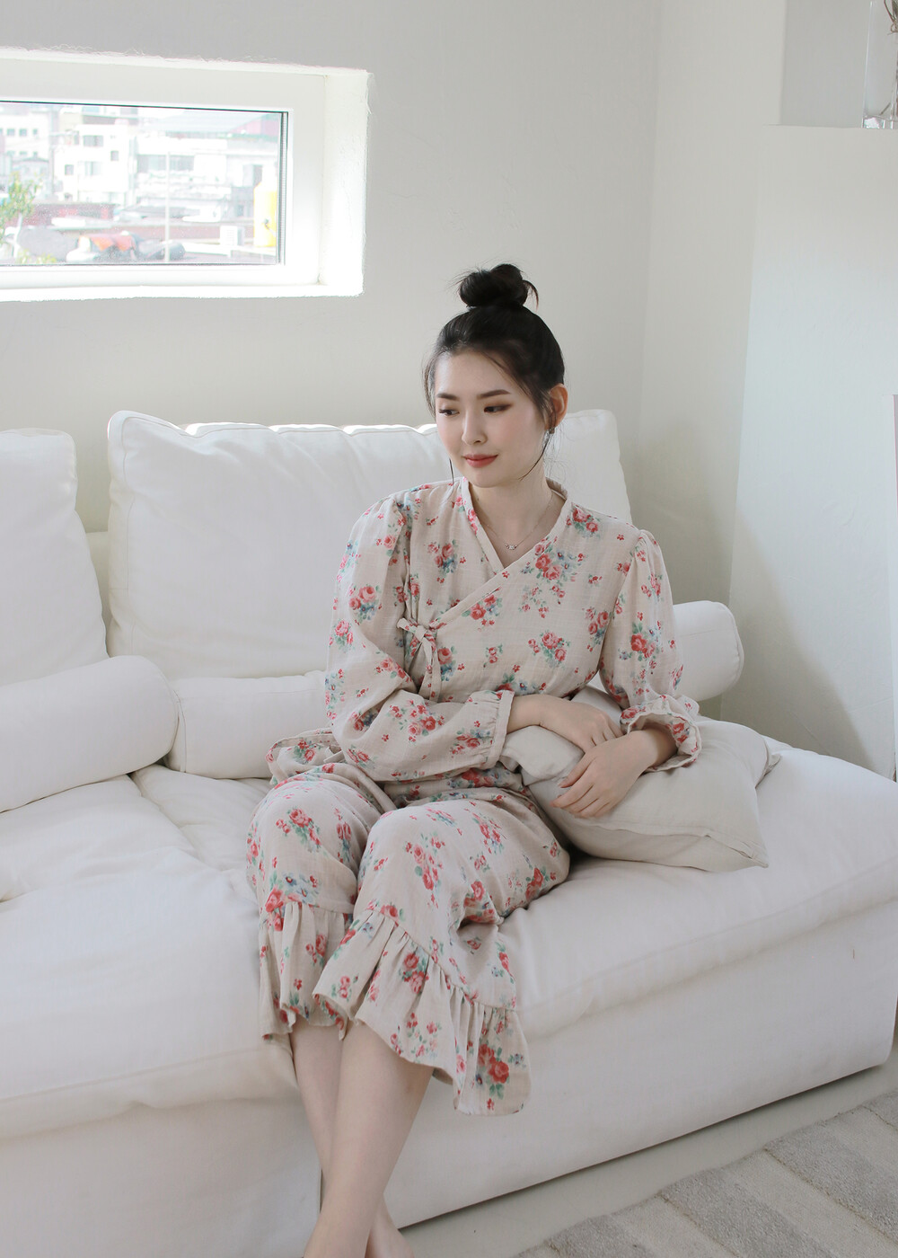 빈티지한 플라워 이중직 원단으로 제작된잠옷 세트입니다.