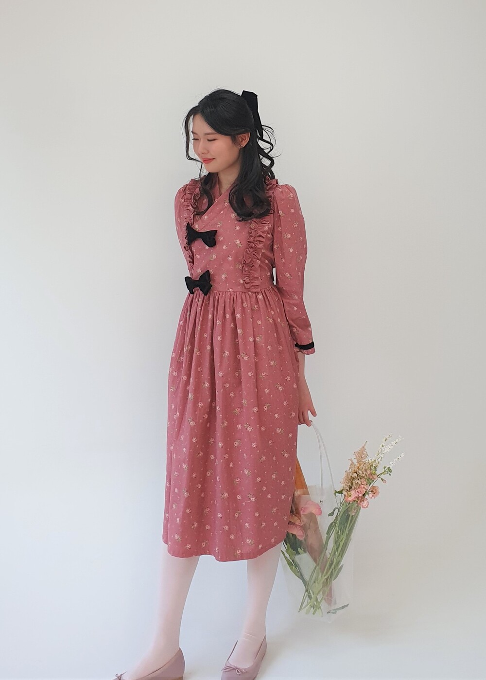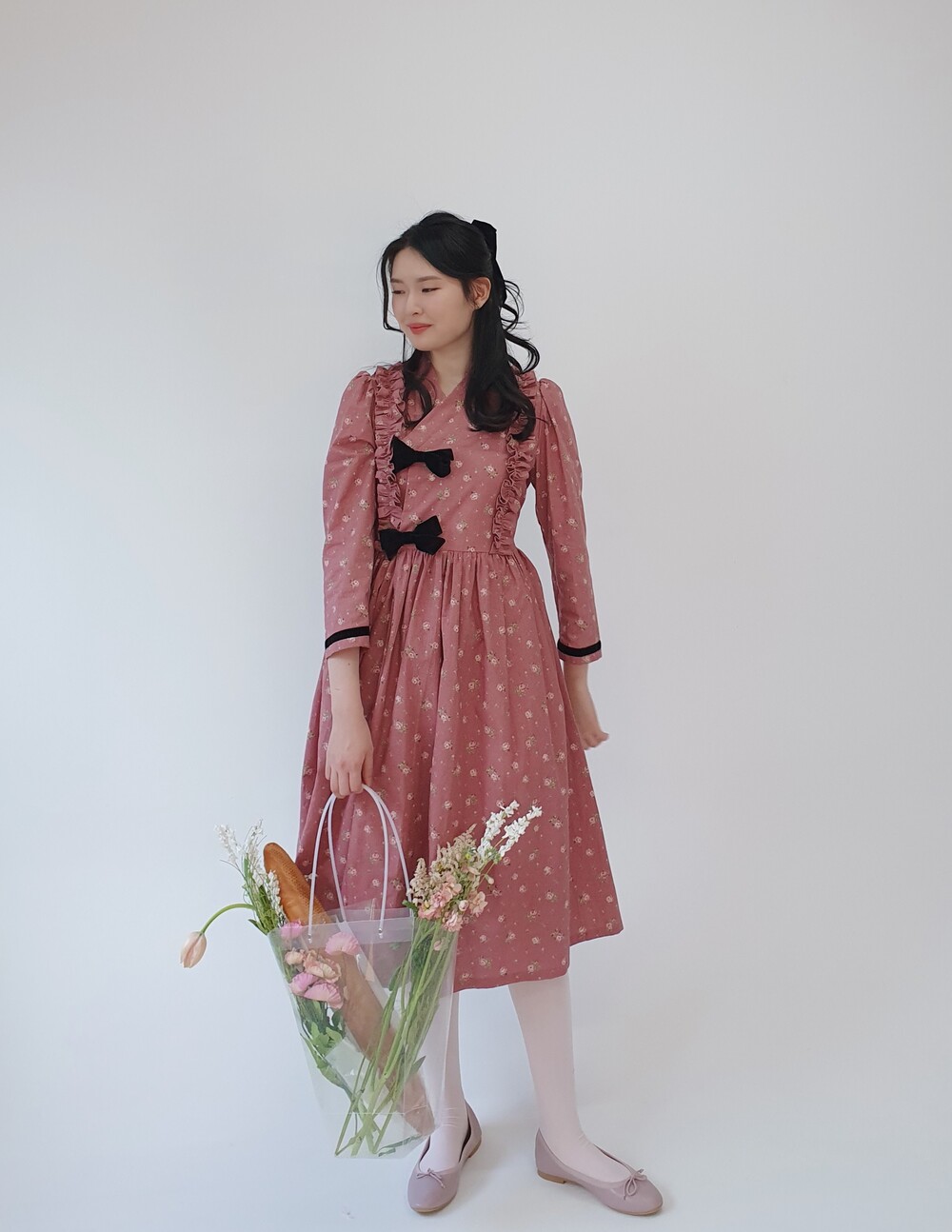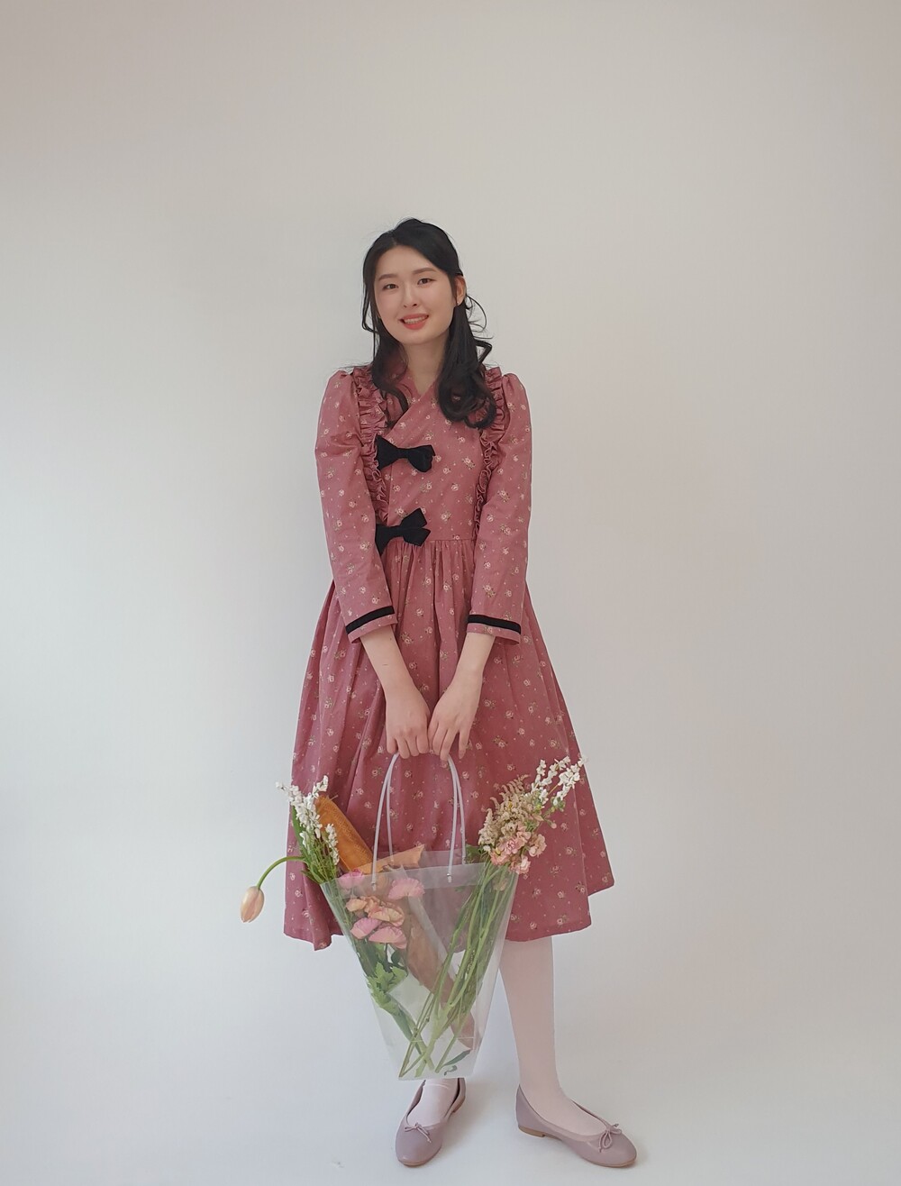 벨벳 리본 원피스입니다. 상의에 섬세한 프릴디테일과