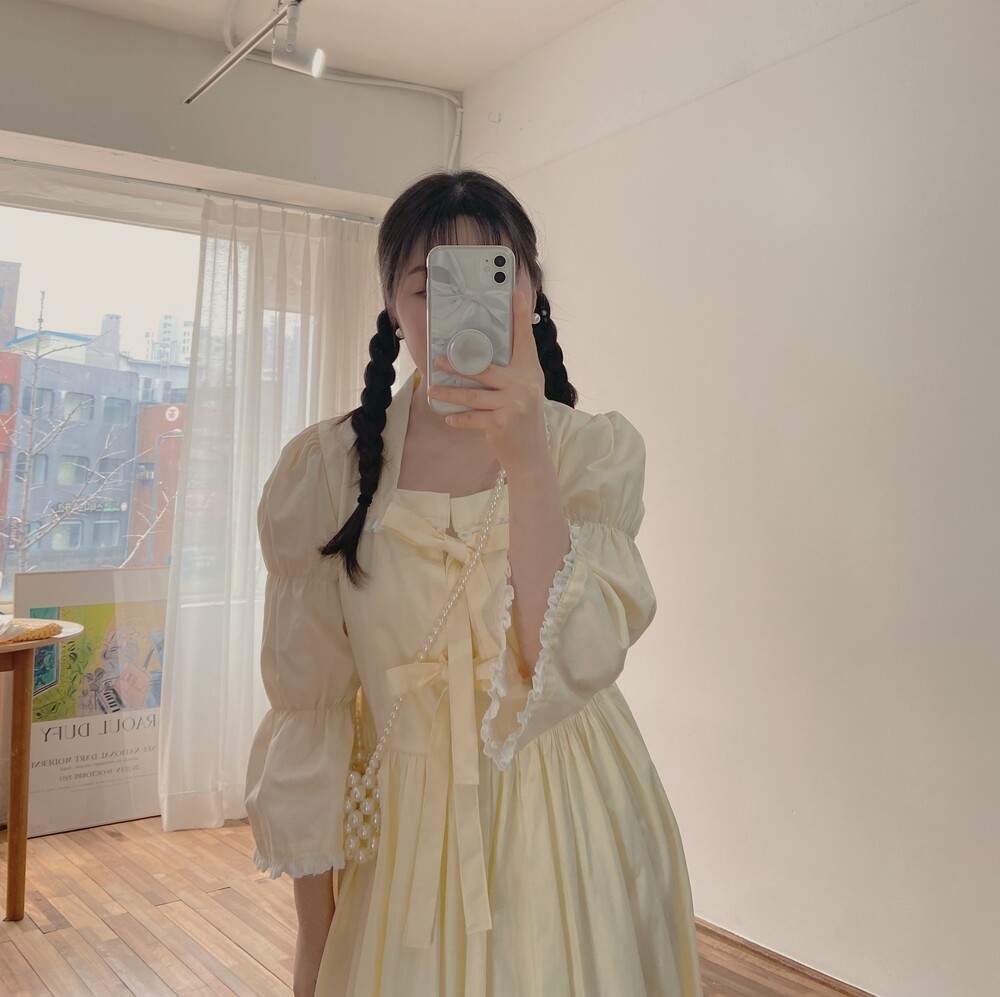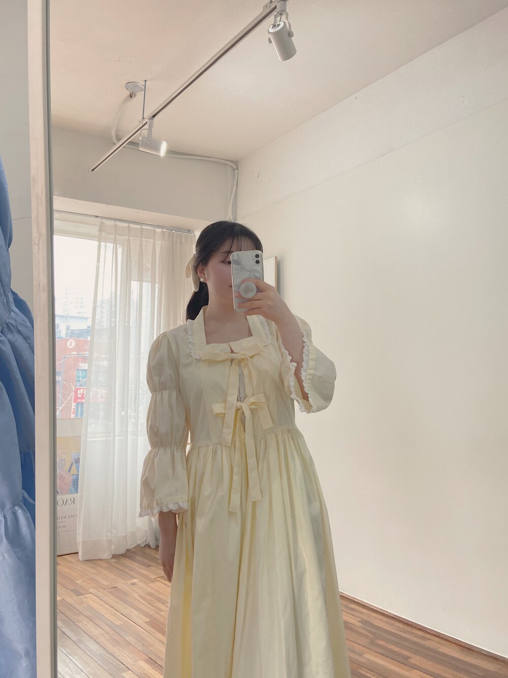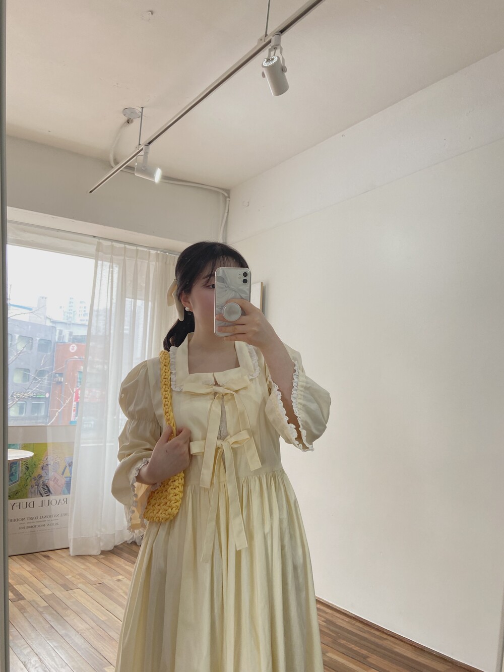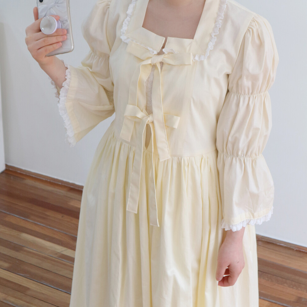 프릴 맞깃 원피스입니다. 작은 면레이스로 소매와