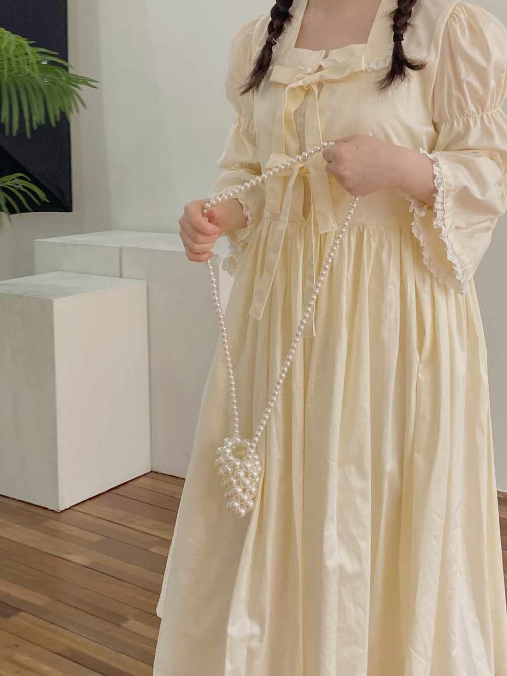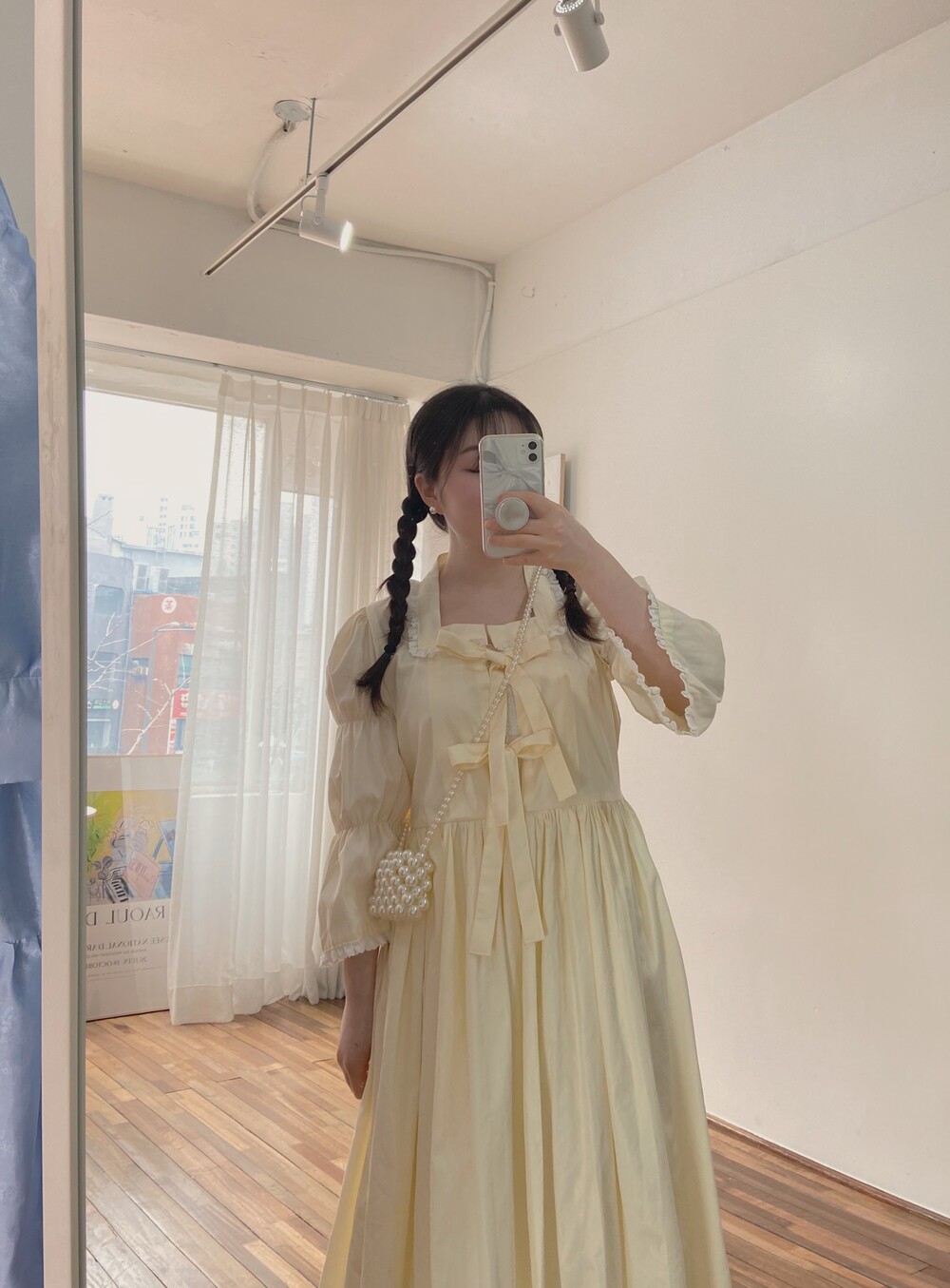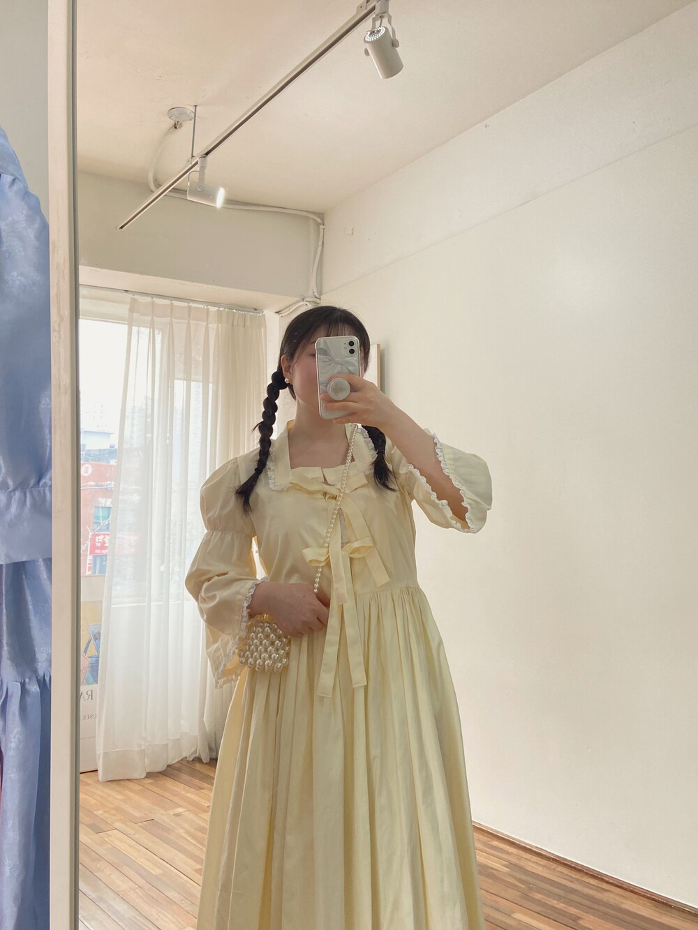 프릴 맞깃 원피스입니다. 작은 면레이스로 소매와
