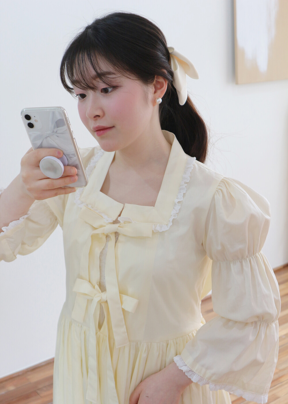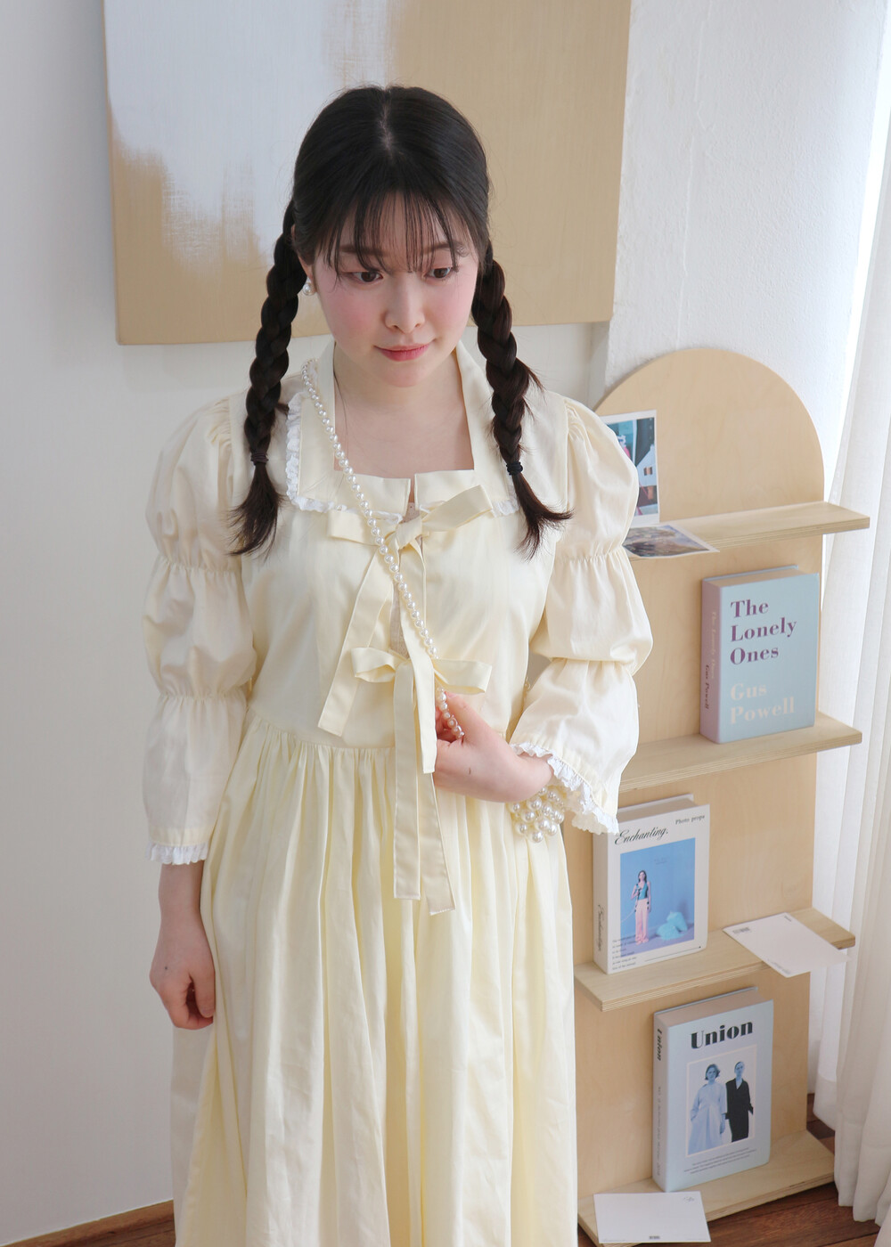 리본으로 끈을 묶으면 허리라인이 살짝 들어가 핏이 예뻐요!