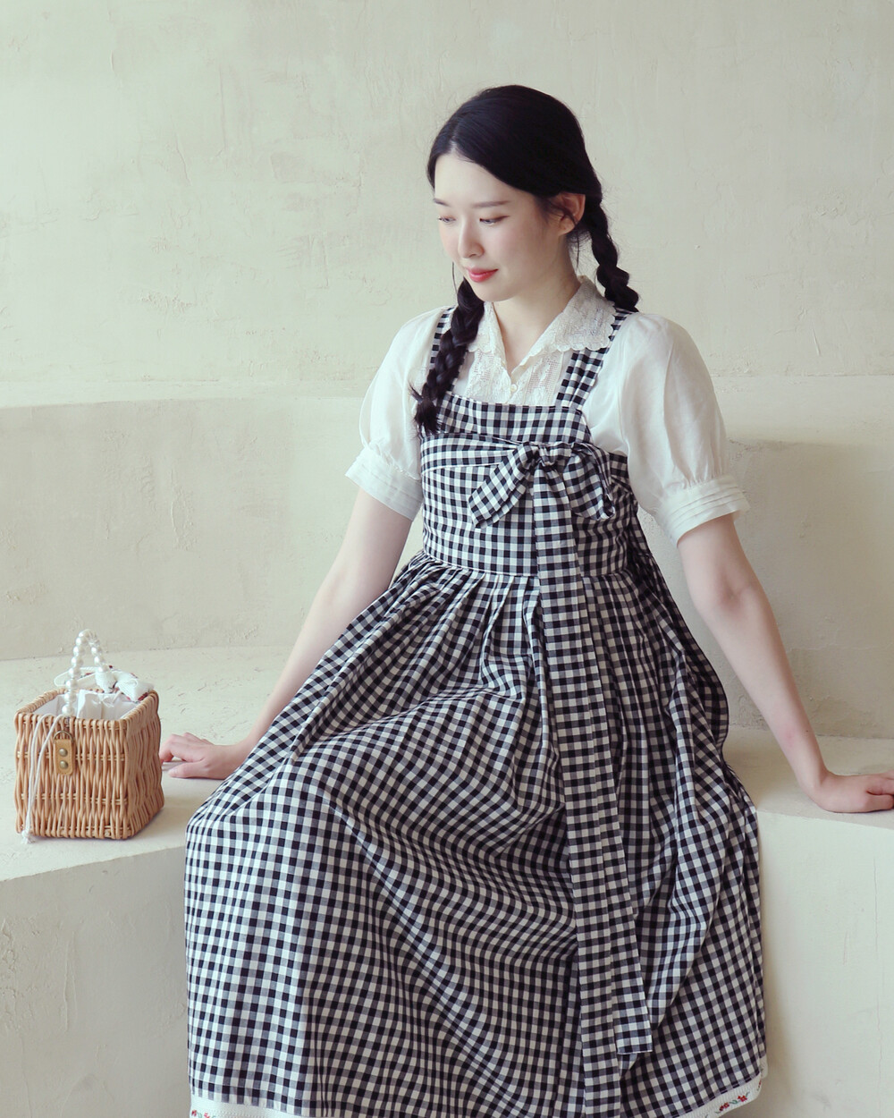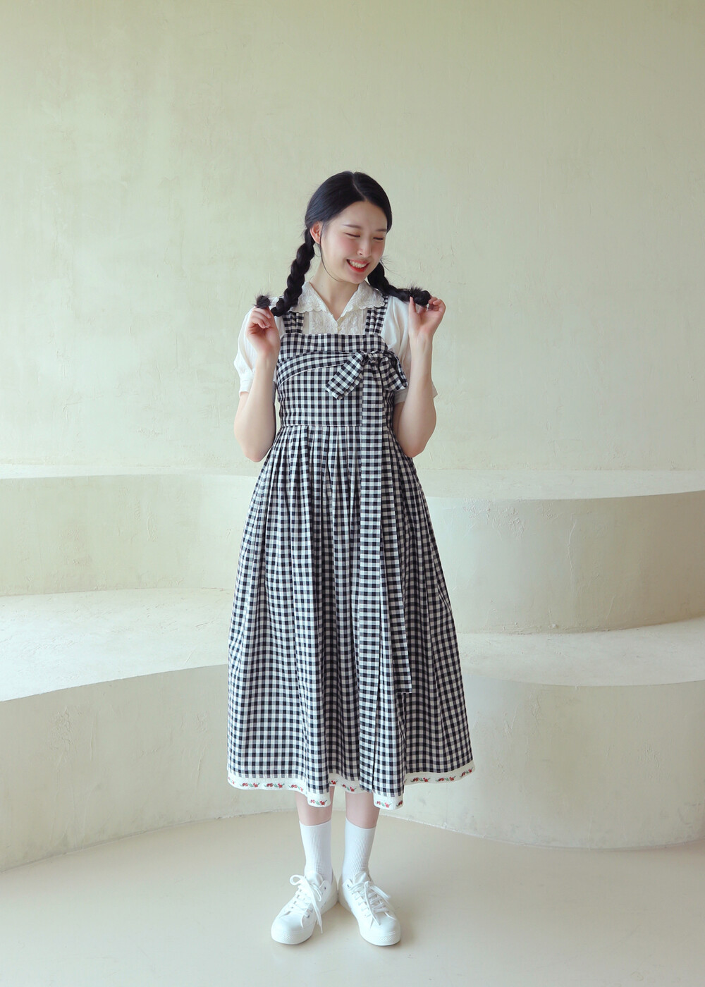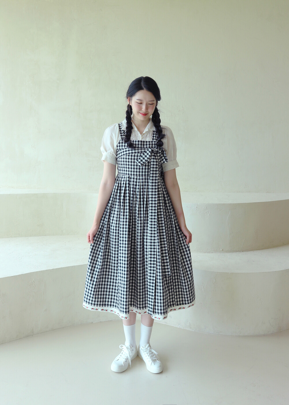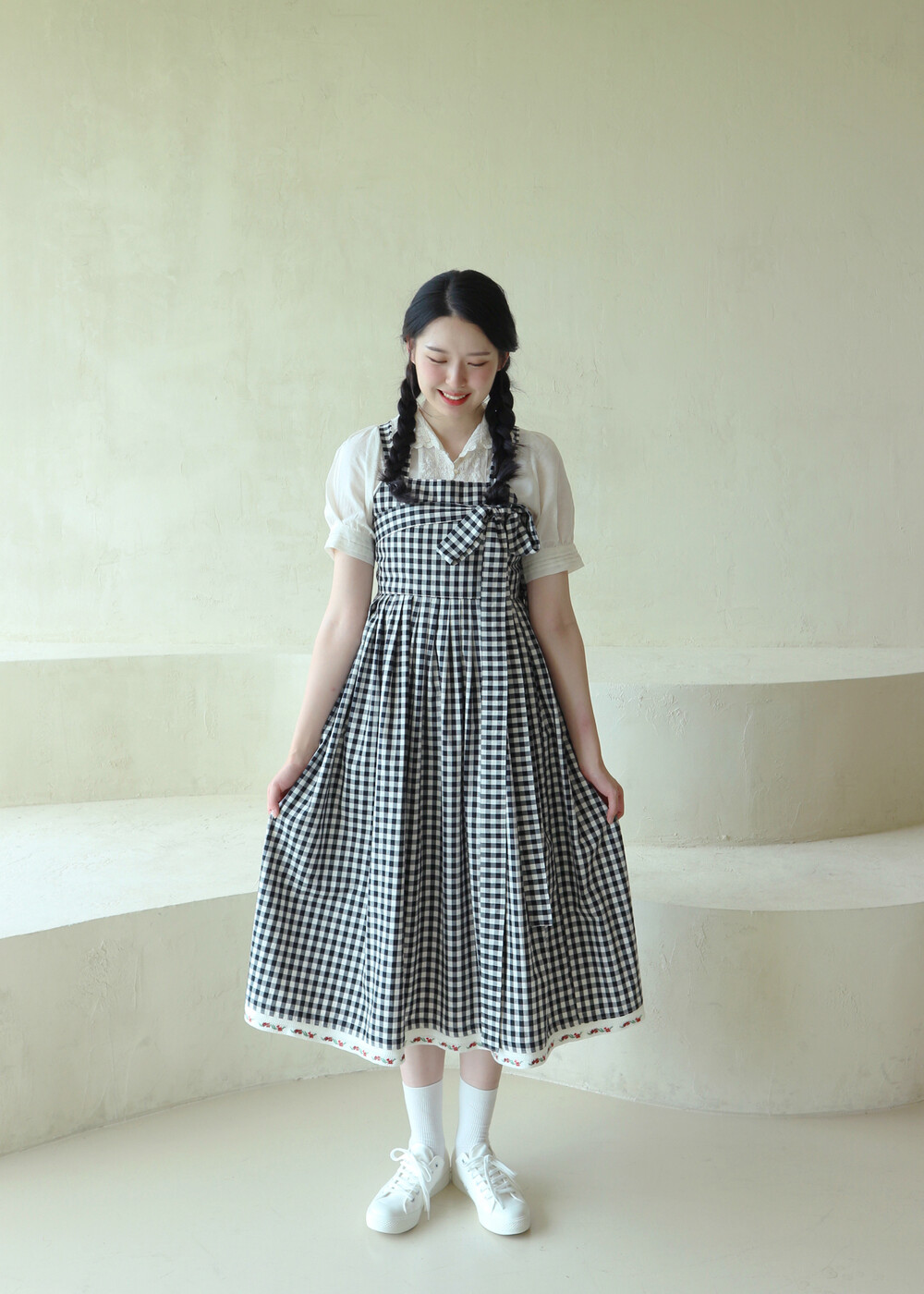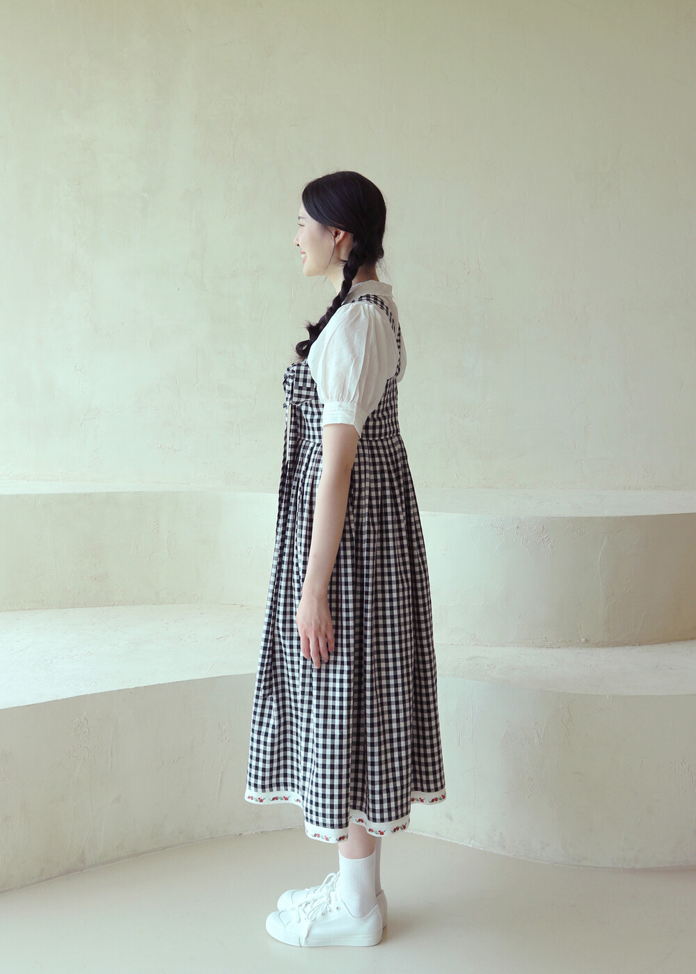 귀여운 고방체크 원단으로 제작 된 말기원피스입니다.