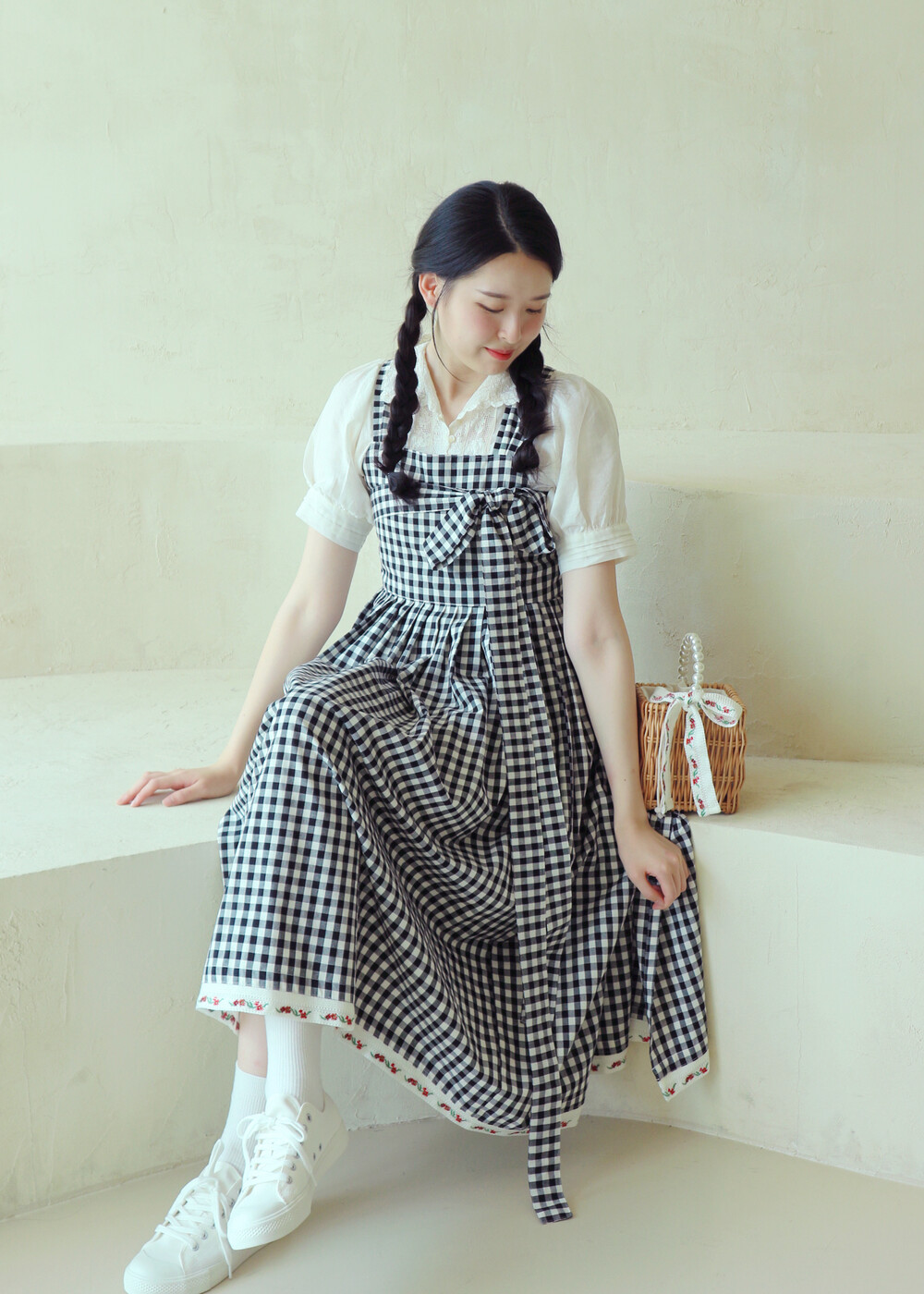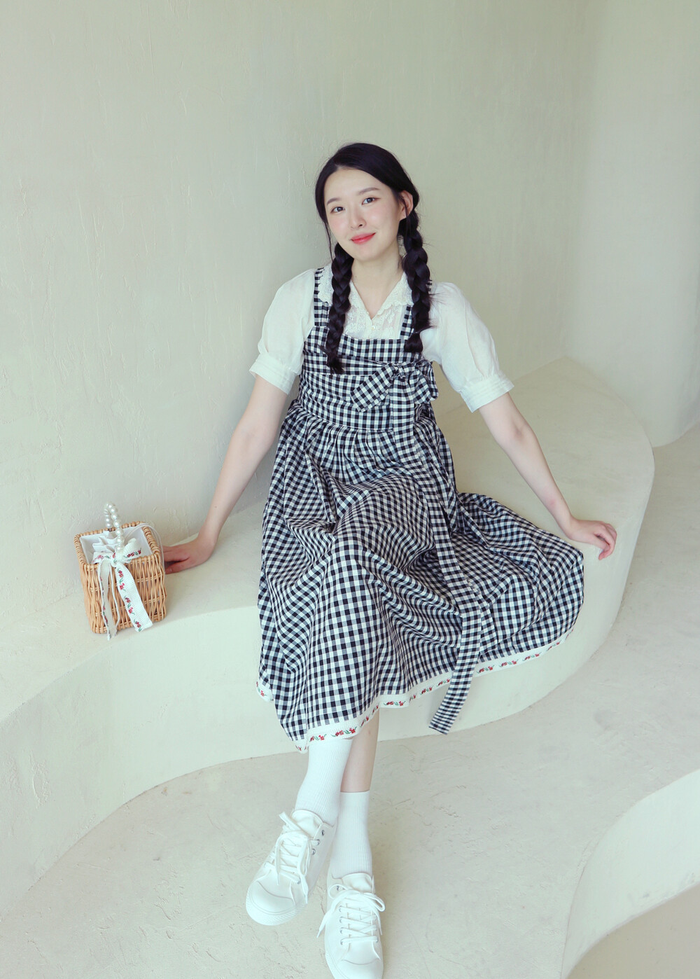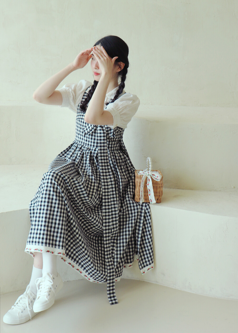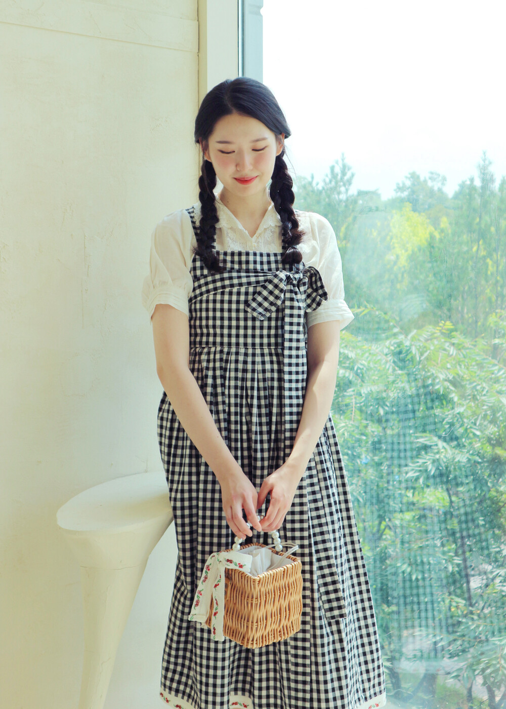 귀여운 고방체크 원단으로 제작 된 말기원피스입니다.