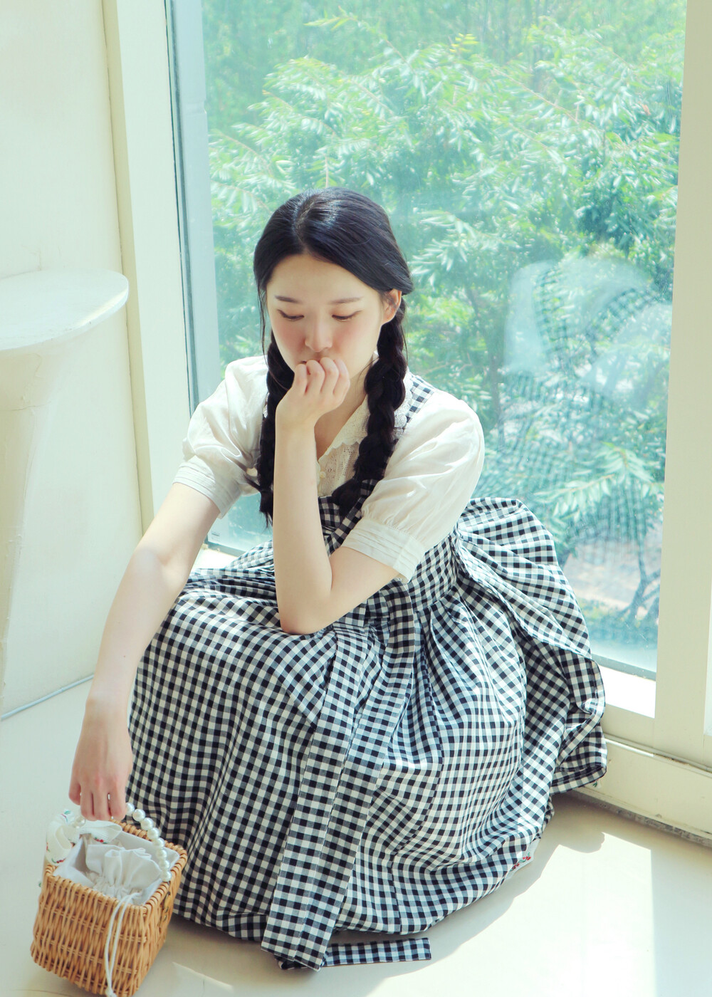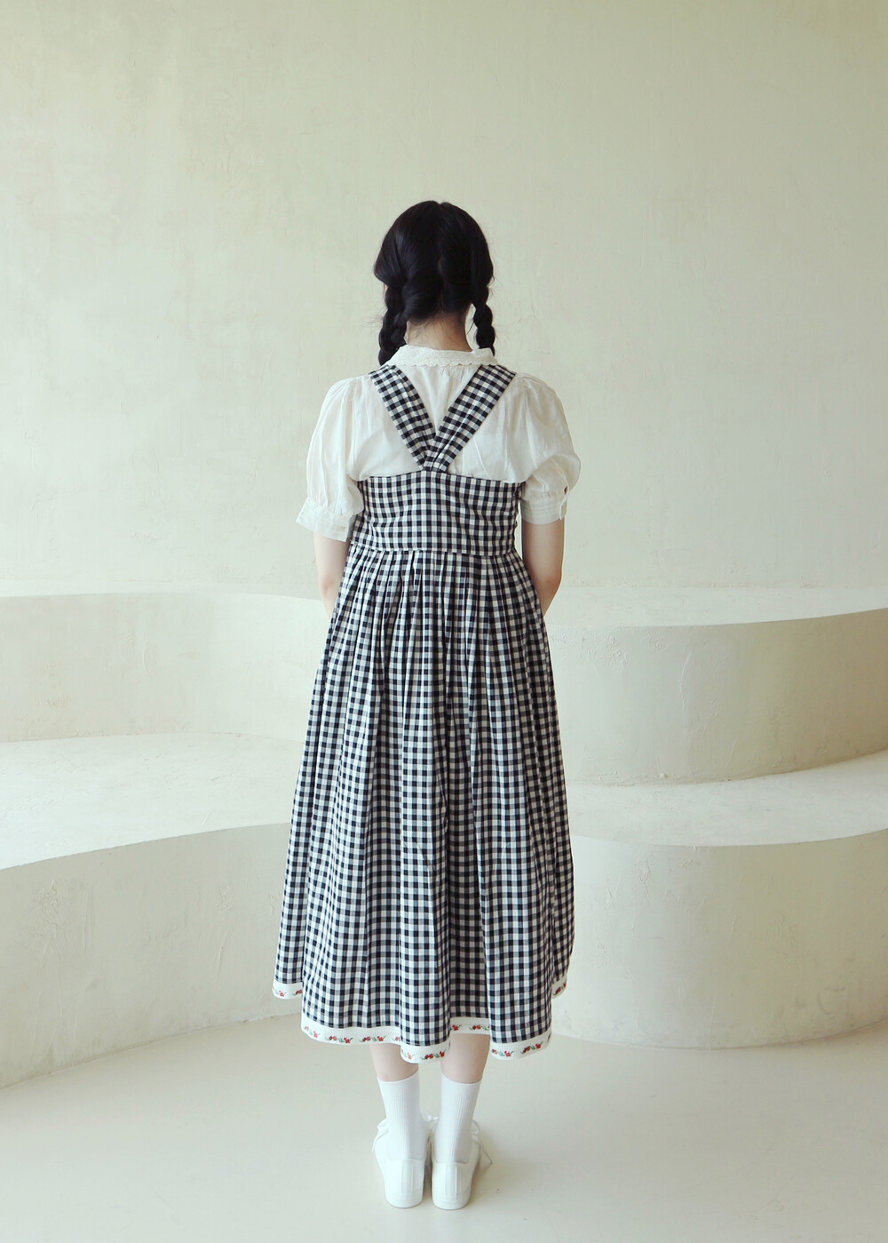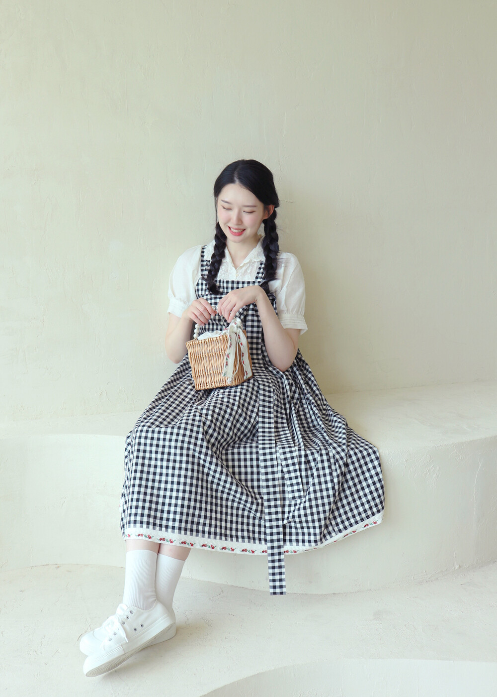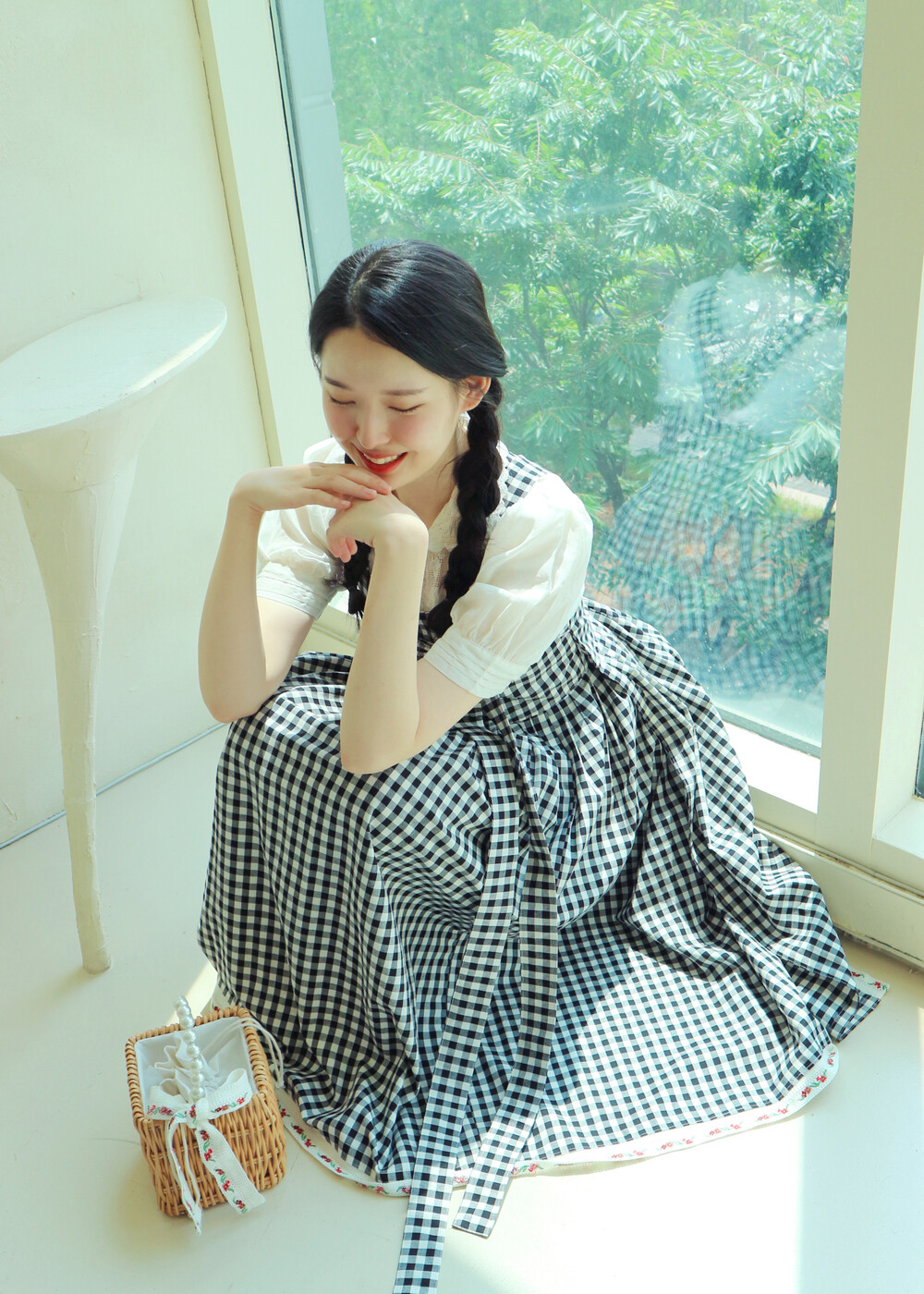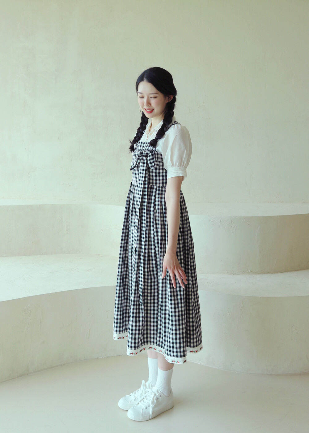 귀여운 고방체크 원단으로 제작 된 말기원피스입니다.