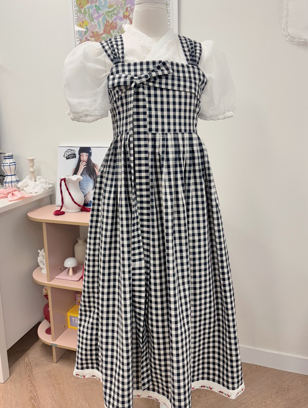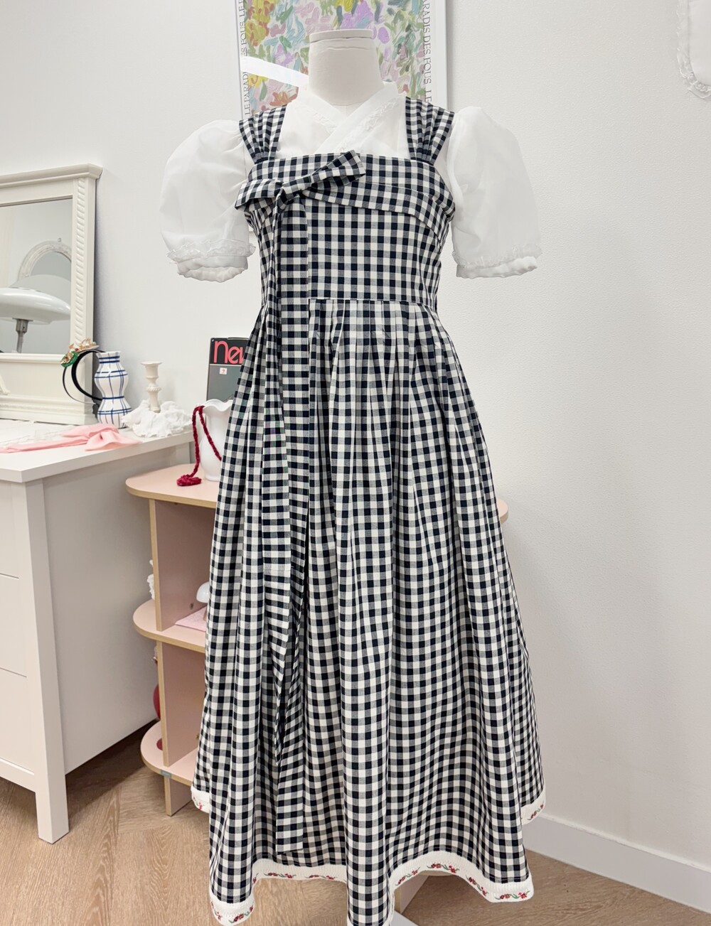 22 고방체크 말기원피스 +화이트 핀턱 노방 저고리