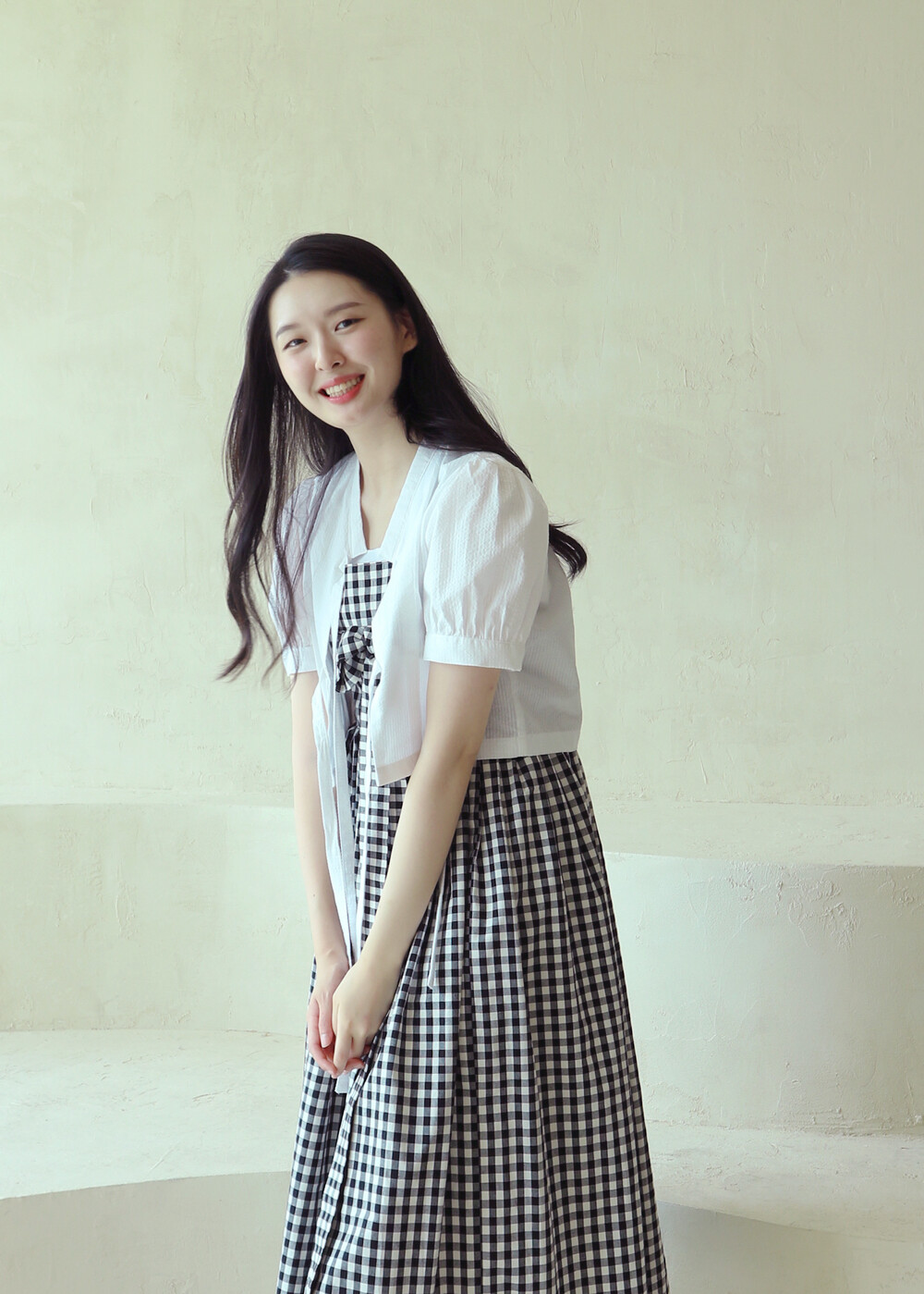 허리치마 또는 원피스와 함께 착용하기 좋습니다.
