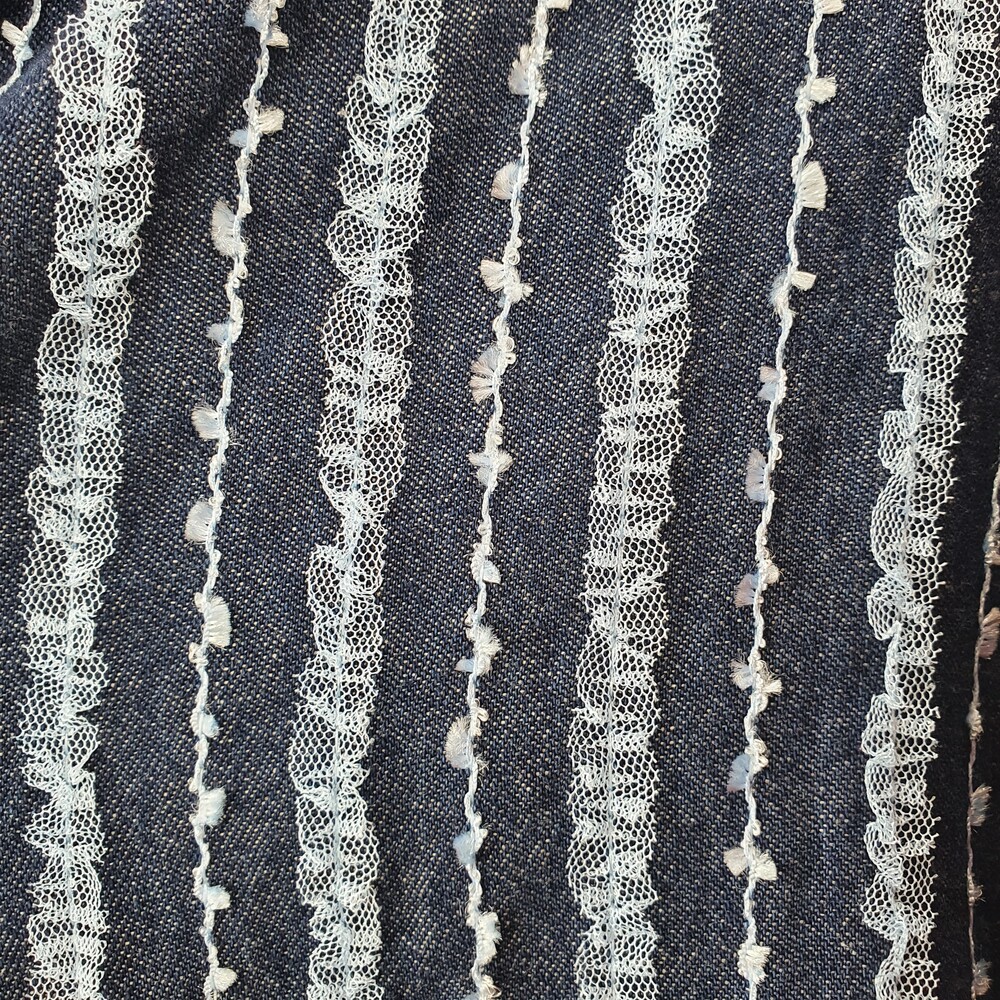 중청색의 청에 레이스가 달려있는 원단으로 제작 된