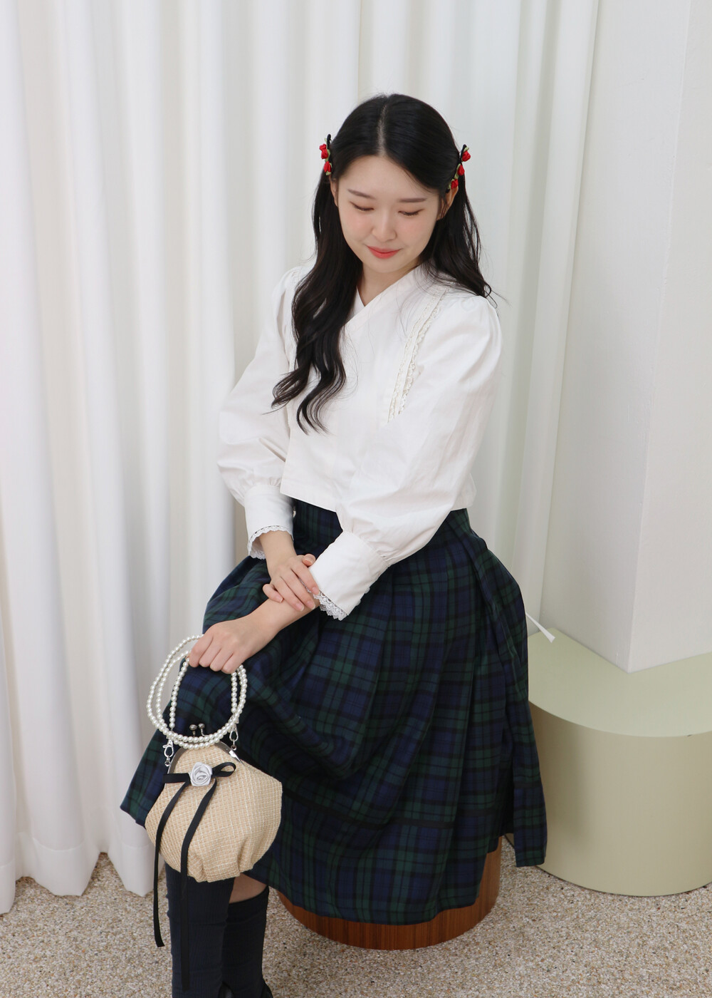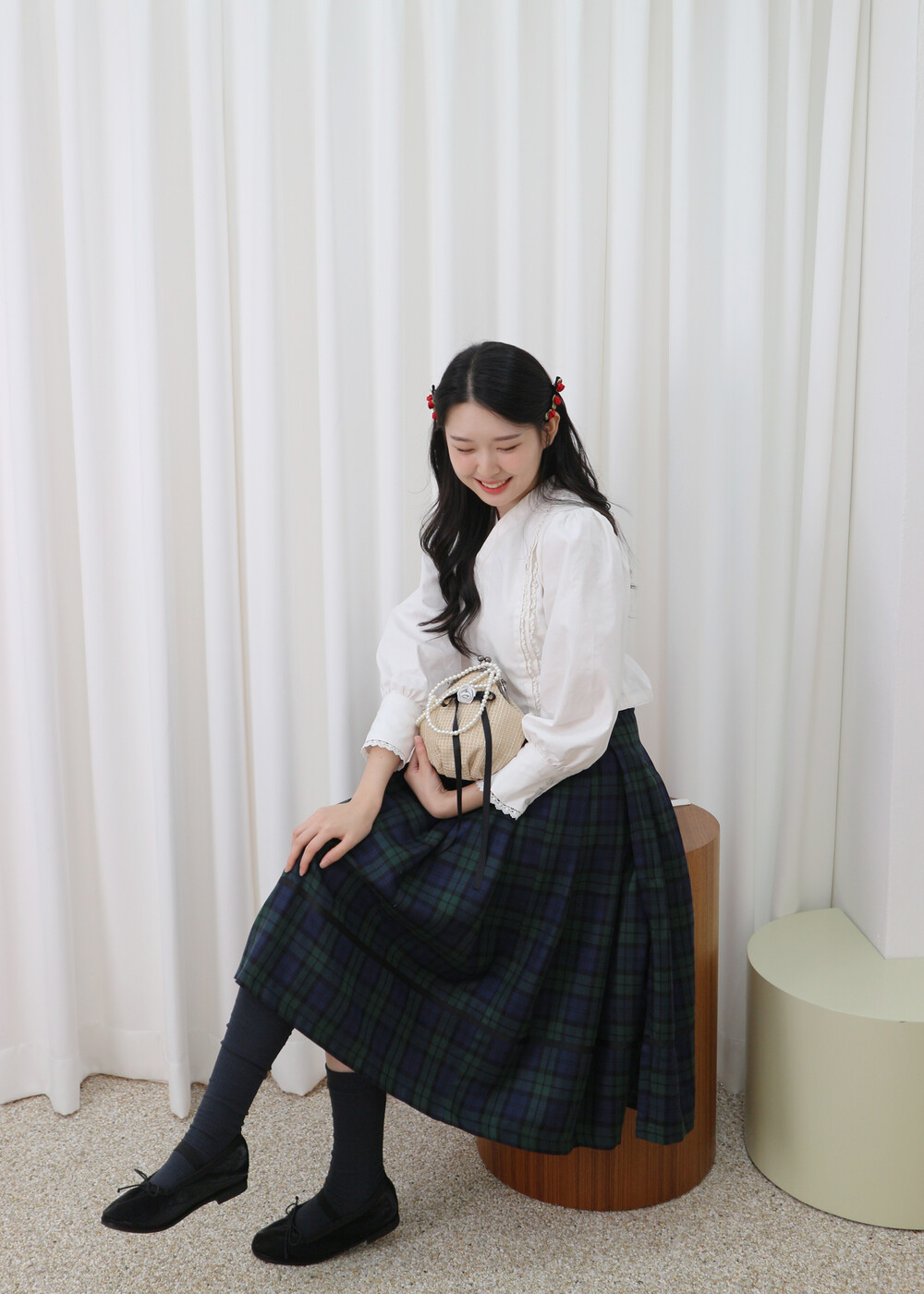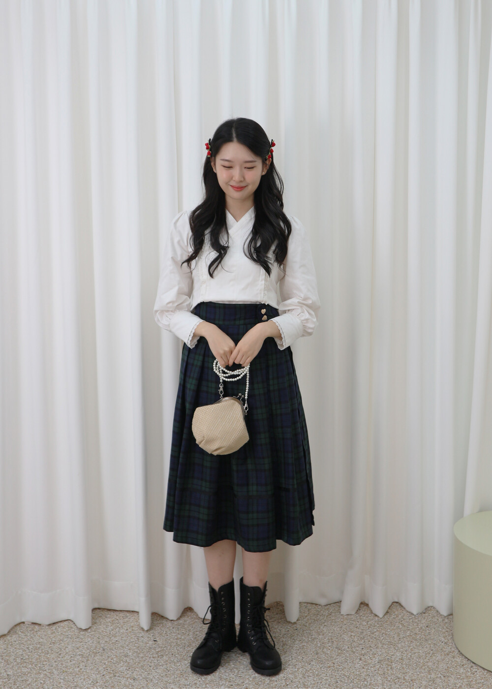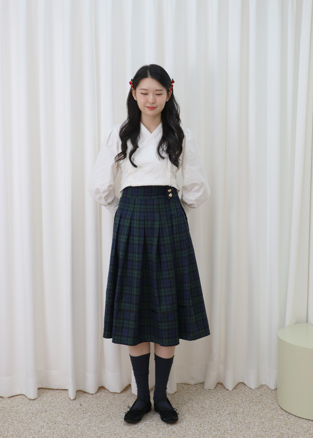 하이틴스러운 무드를 가득 느낄 수 있는 그린 체크 허리치마입니다.