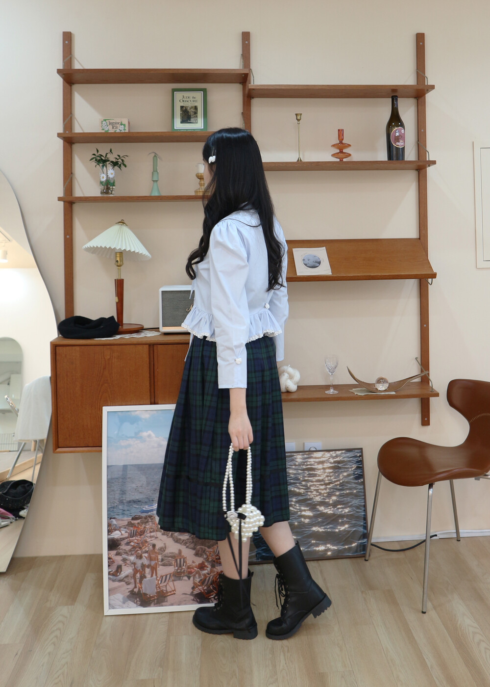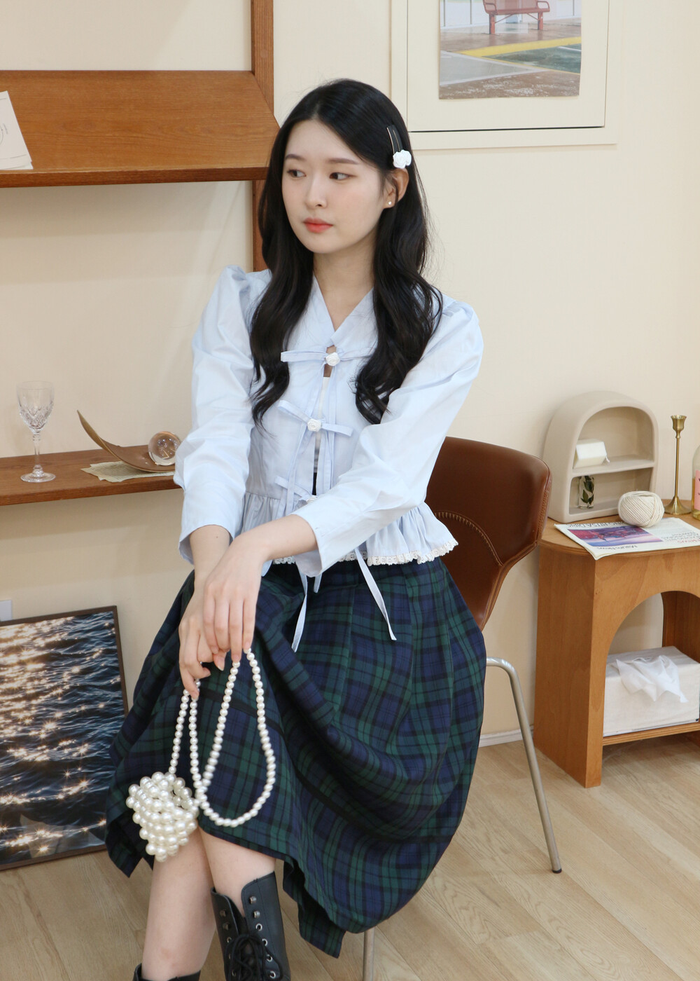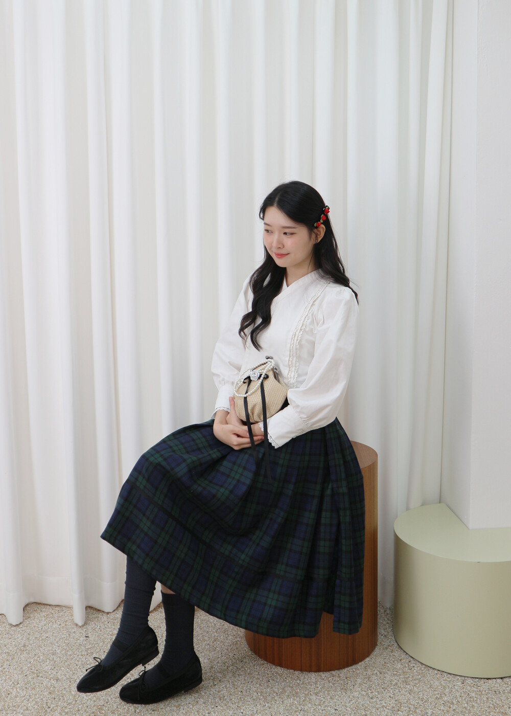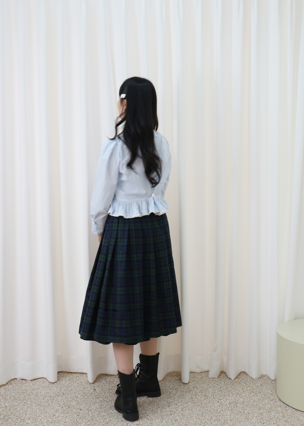 하이틴스러운 무드를 가득 느낄 수 있는 그린 체크 허리치마입니다.