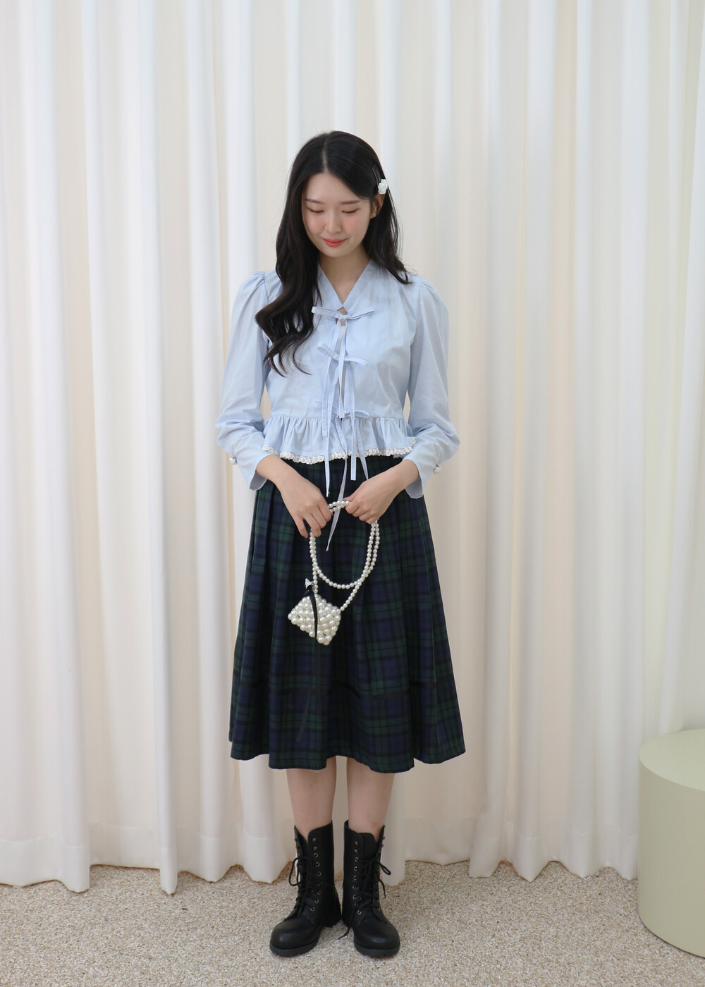 치마 아랫단 쪽으로 리본 포인트를 주었습니다.
