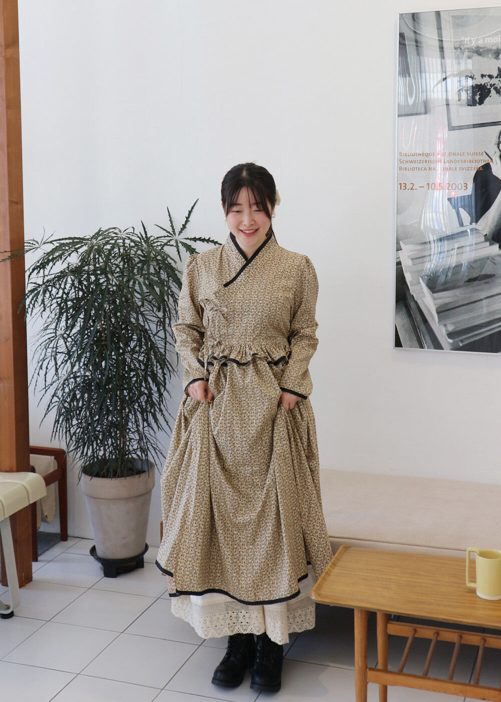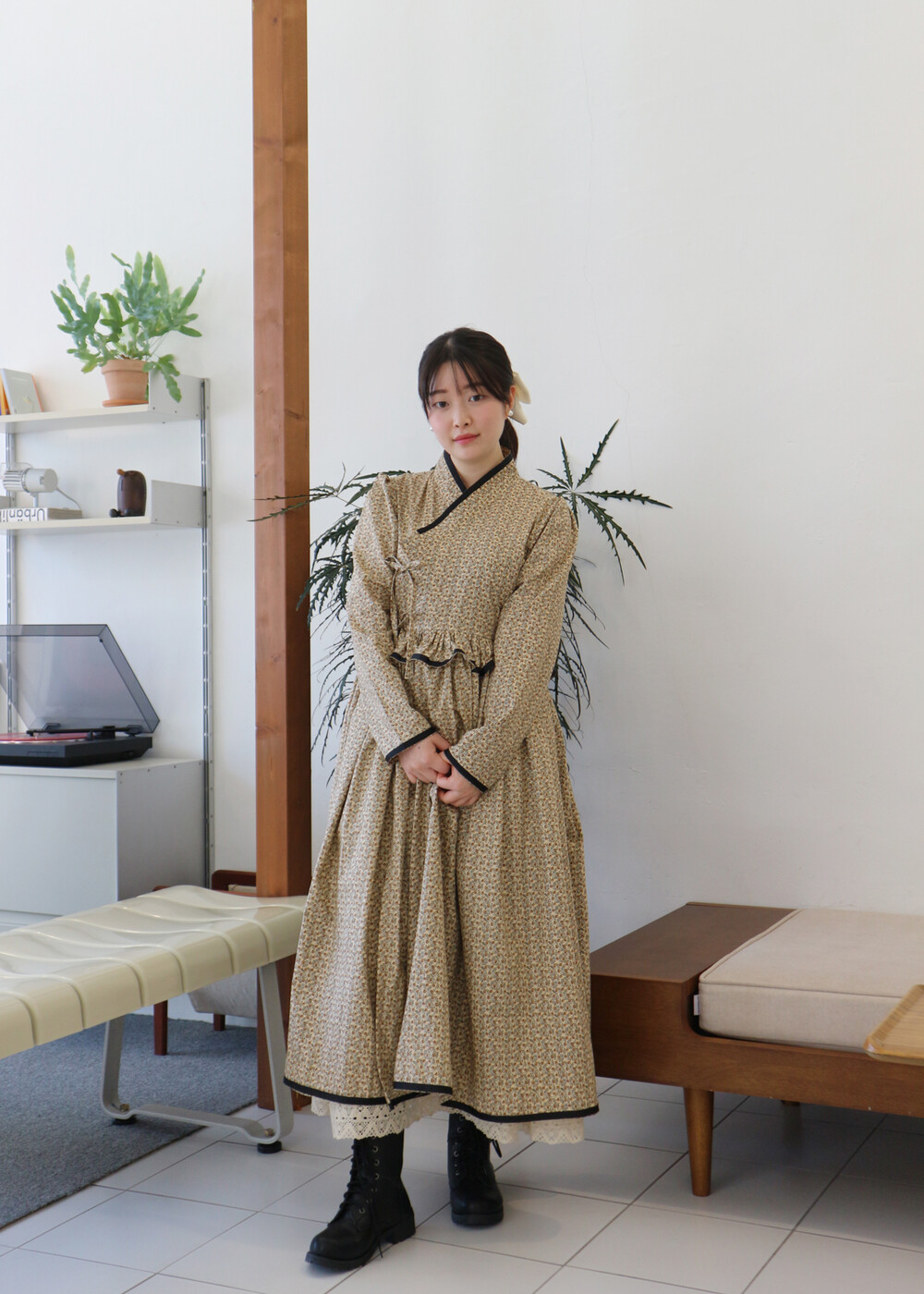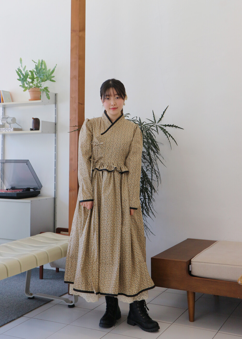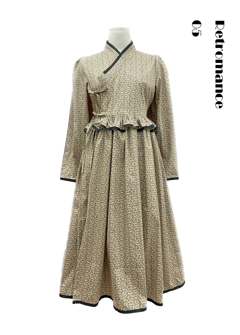 빈티지한 패턴의 원단을 활용하여 2단으로 제작한 캉캉원피스입니다.