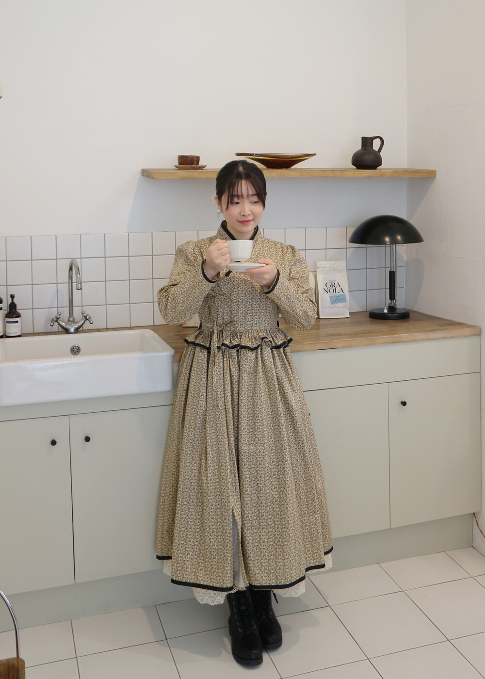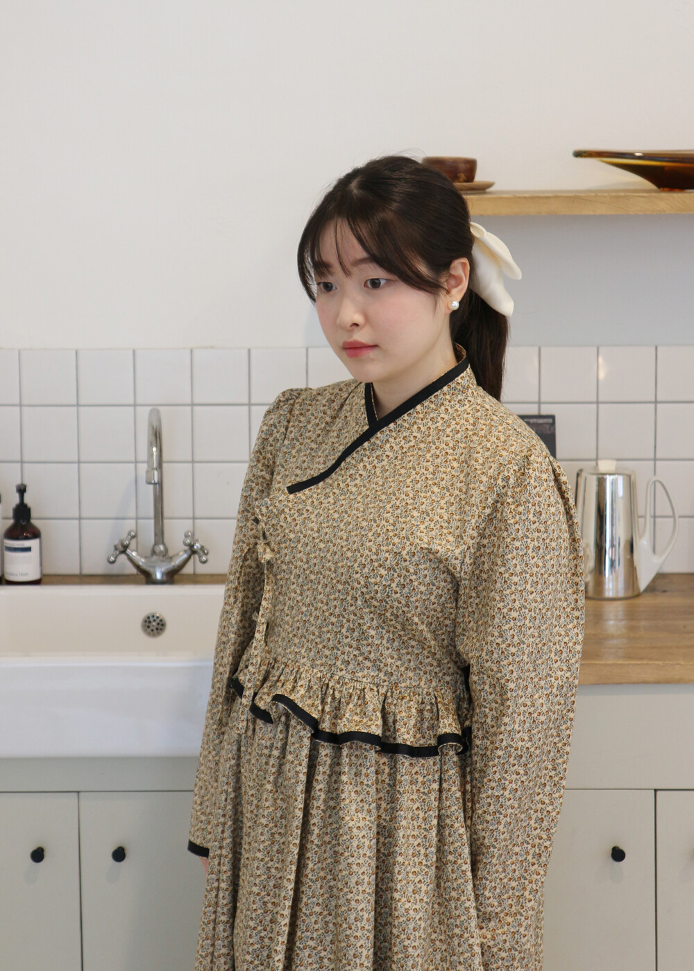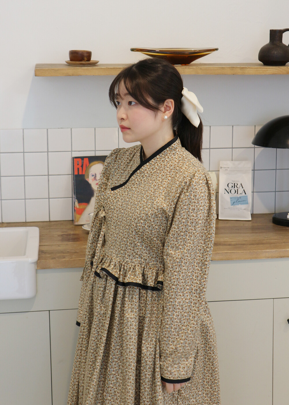 빈티지한 패턴의 원단을 활용하여 2단으로 제작한 캉캉원피스입니다.