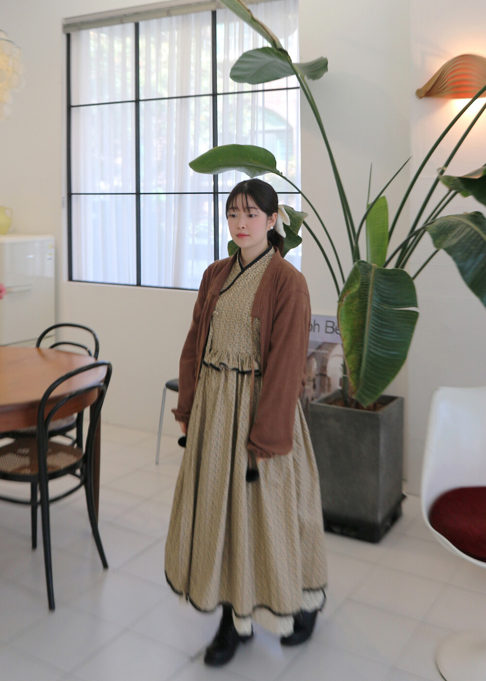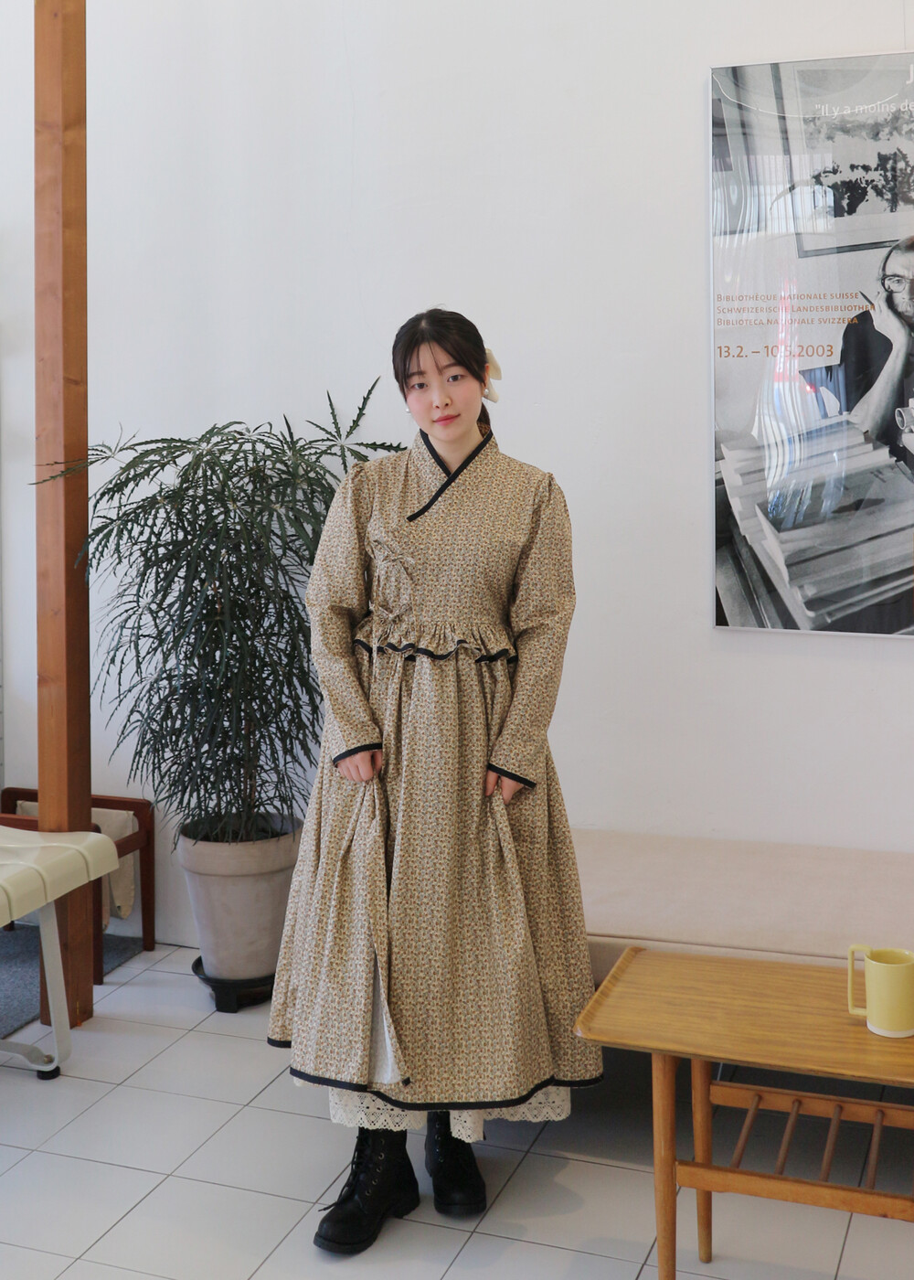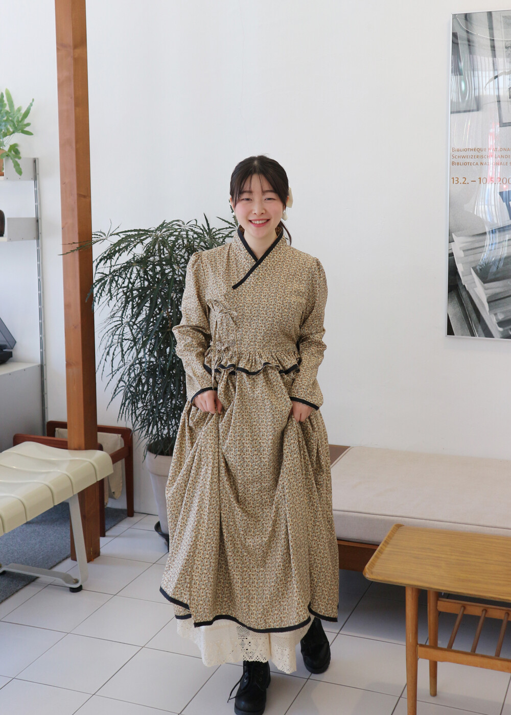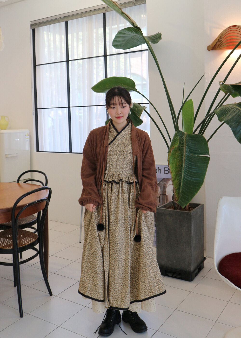 빈티지한 패턴의 원단을 활용하여 2단으로 제작한 캉캉원피스입니다.