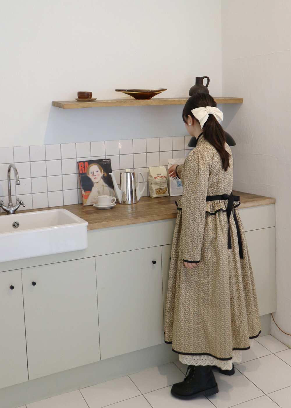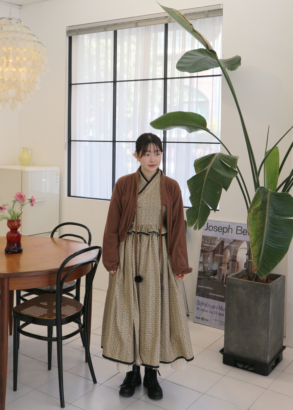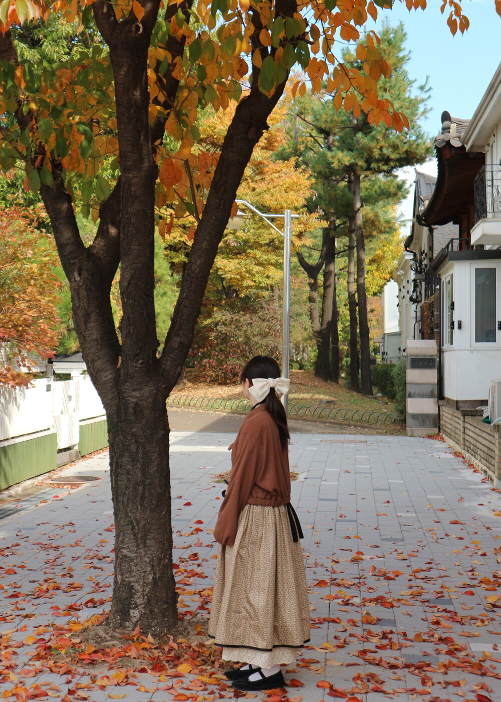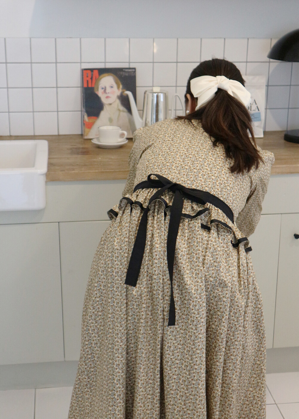 밑단에과 소매끝 깃 검정리본으로 장식이 되어있으며