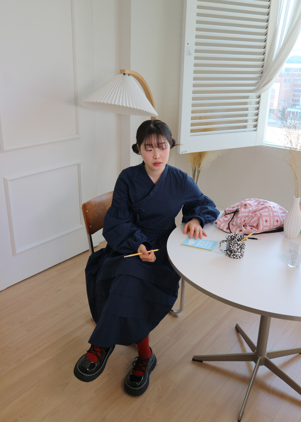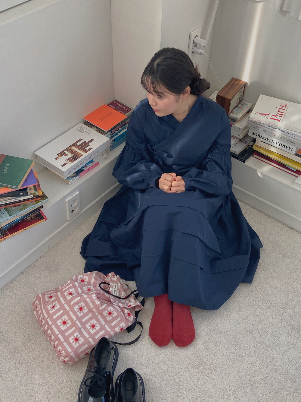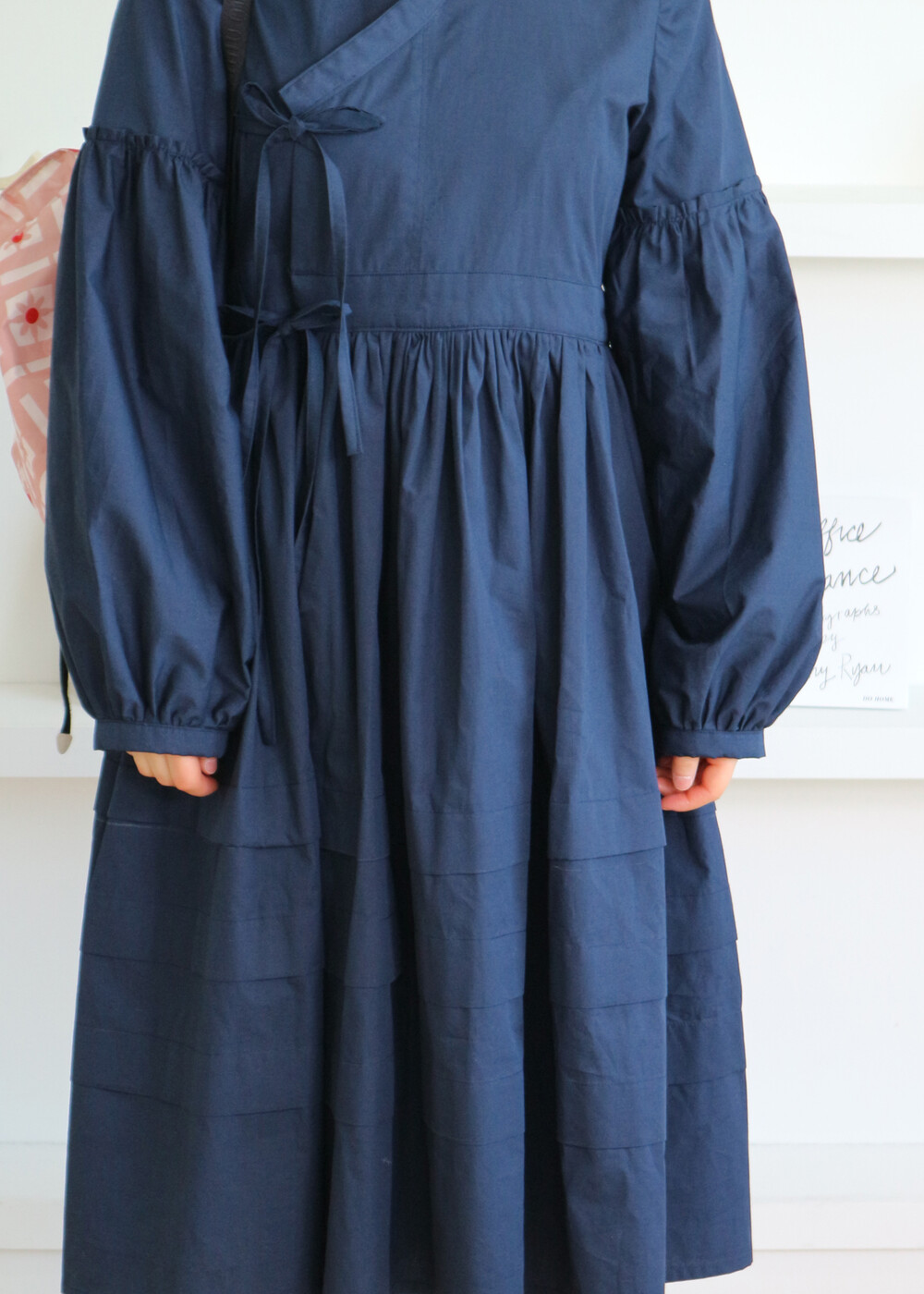 치마의 3단 핀턱과 어깨에는 퍼프가 없어서 슬림하게 떨어지지만