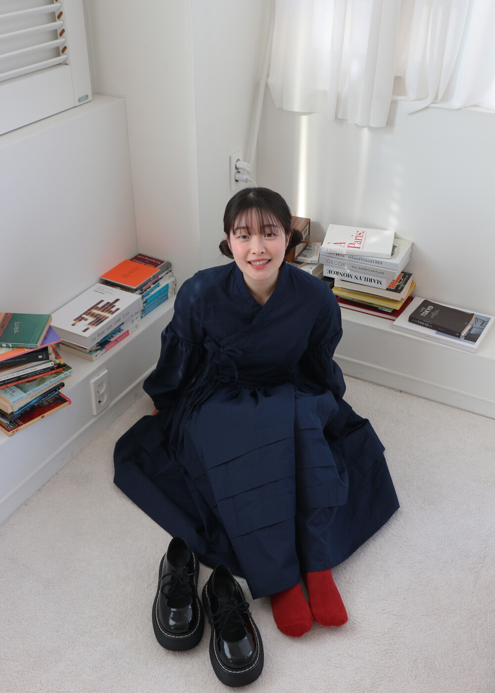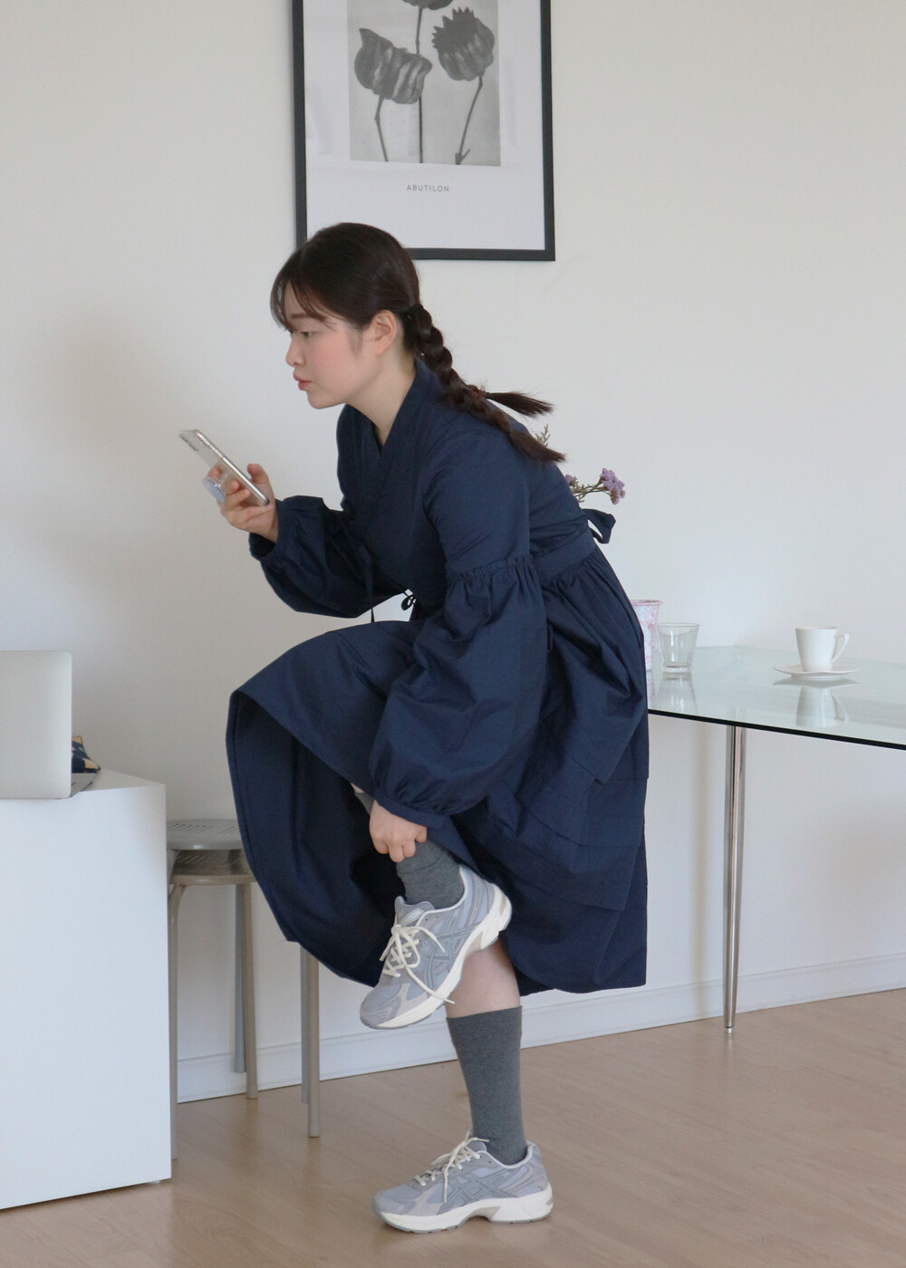 제작된 클래식 철릭 원피스입니다. 깔끔한 원피스로 이 보다 더