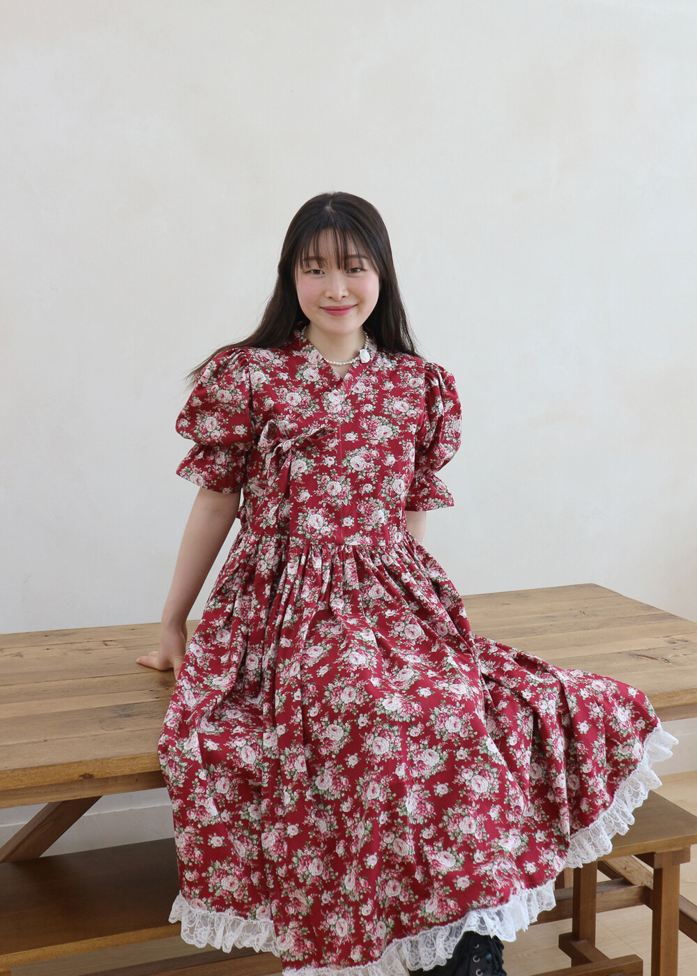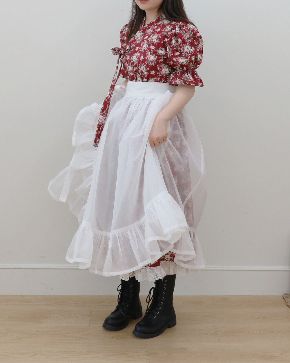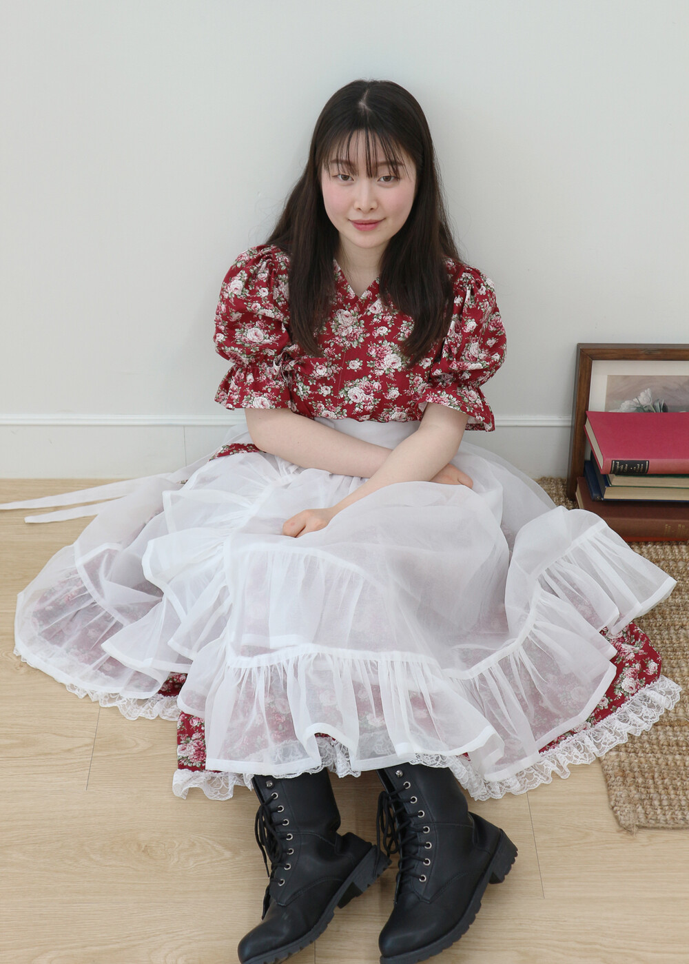 치마 아랫단에 얇은 레이스로 장식하여 빈티지하게 제작하였습니다.