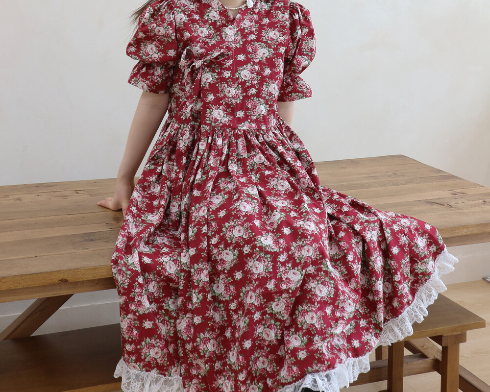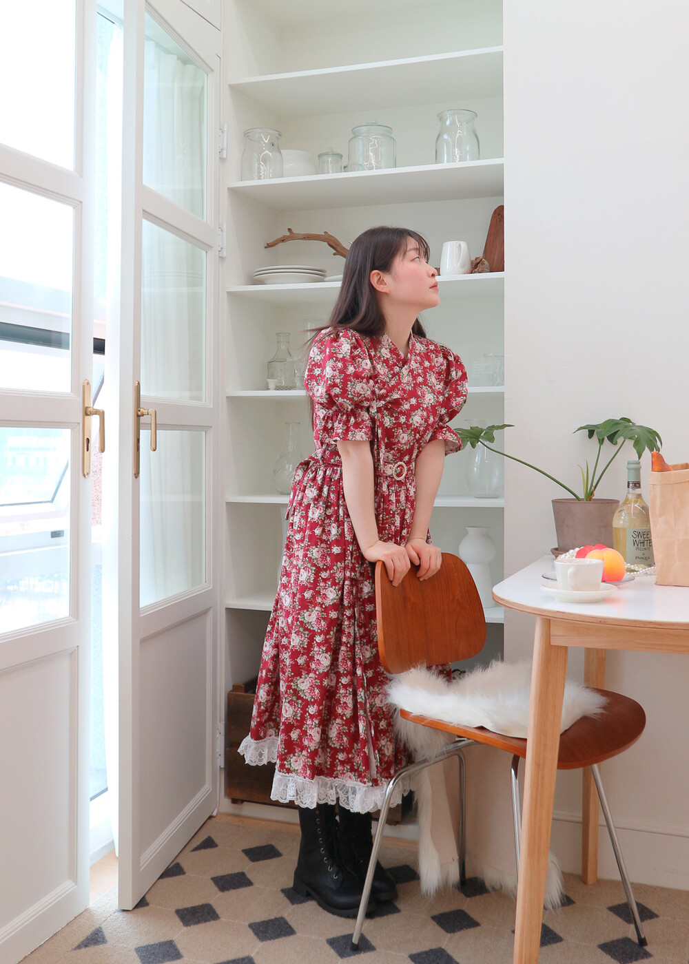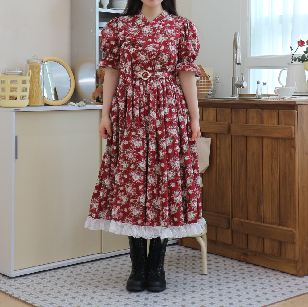 치마 아랫단에 얇은 레이스로 장식하여 빈티지하게 제작하였습니다.