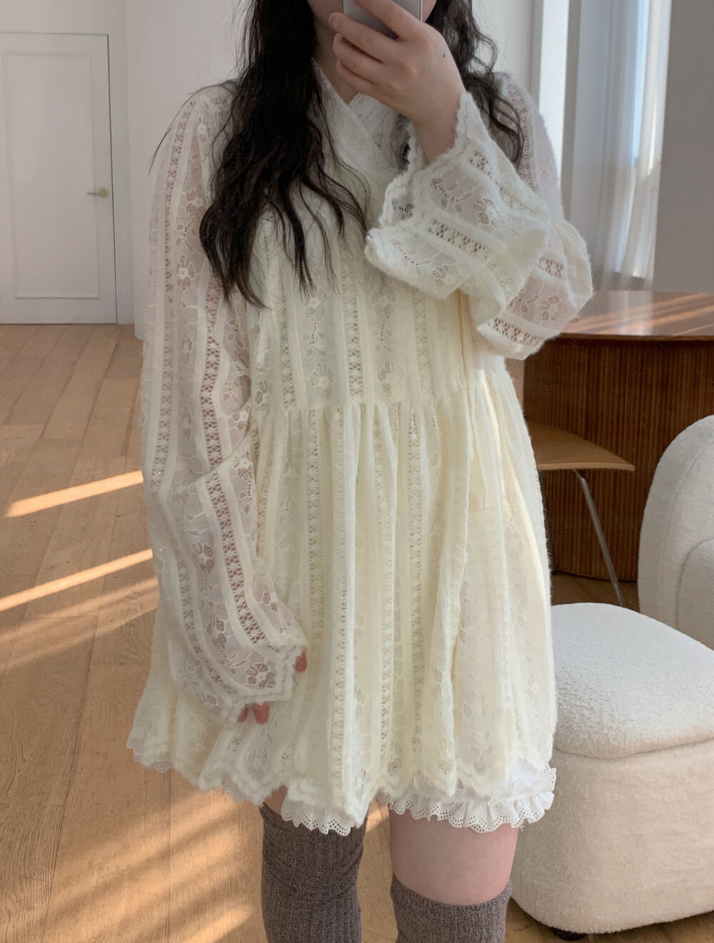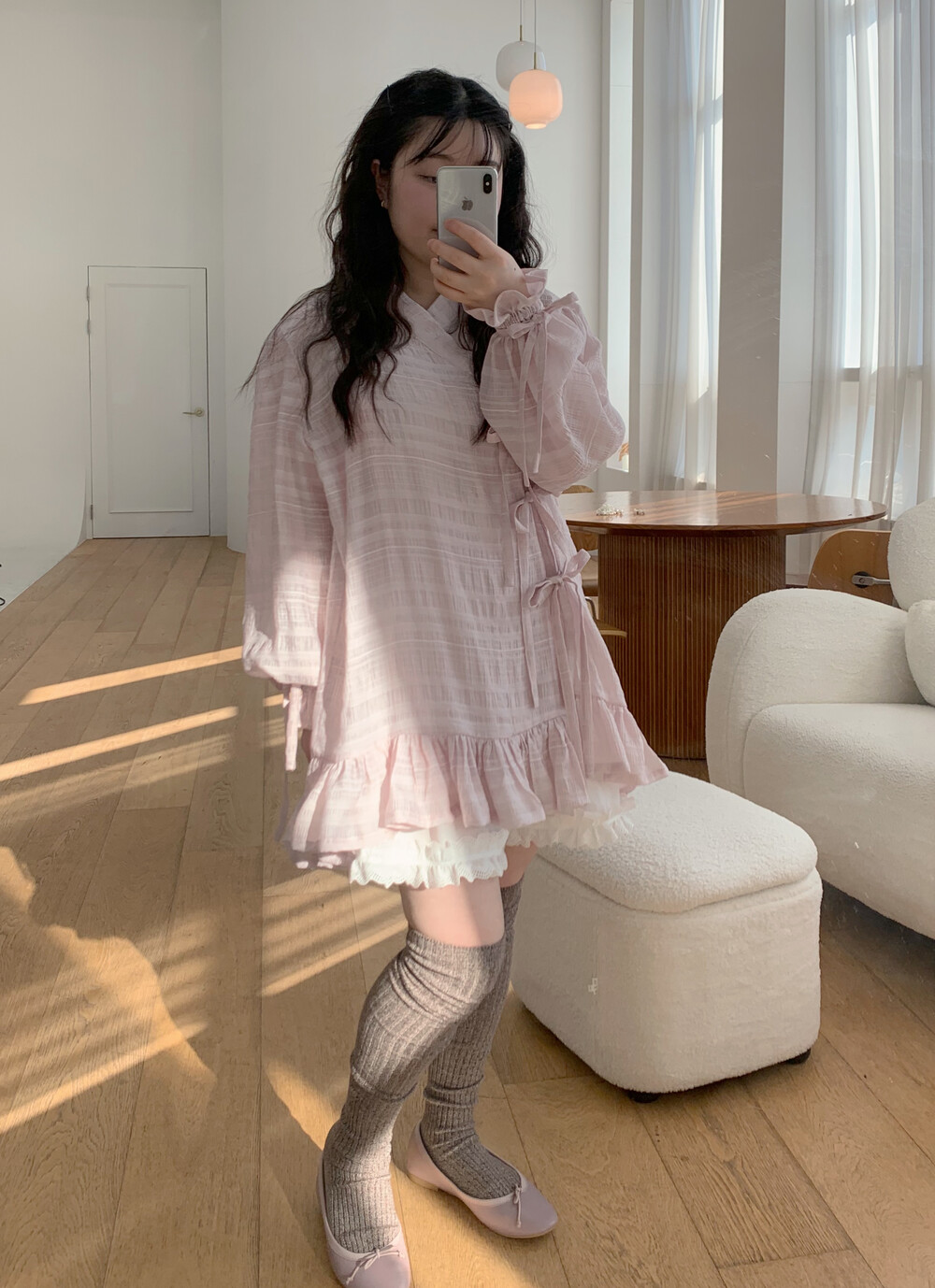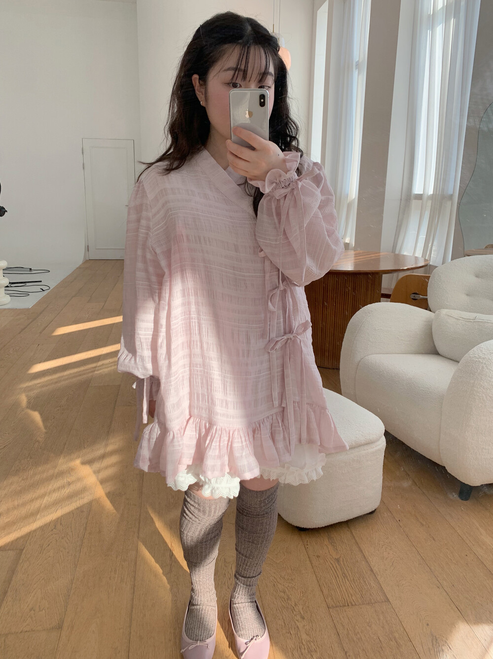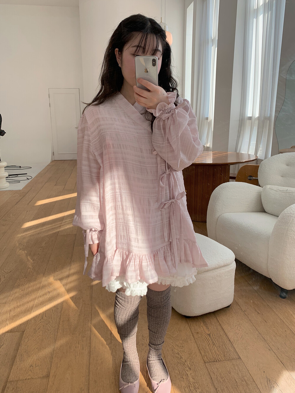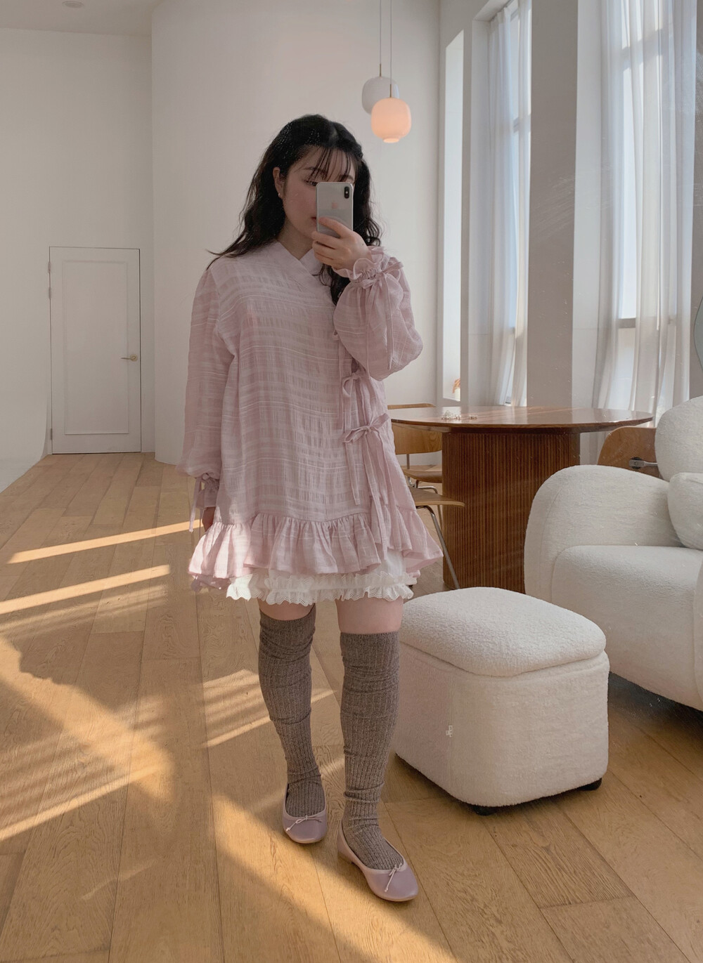 치마에 귀여운 프릴 레이스 장식이 되어있습니다.