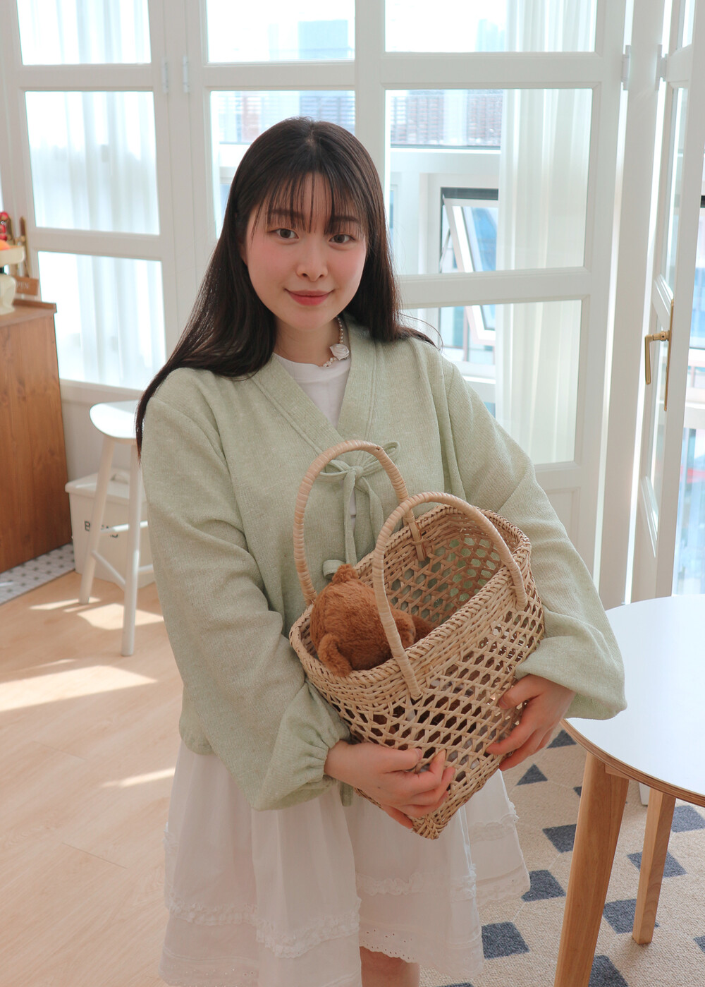 봄에 착용하기 좋은 니트 맞깃 저고리입니다.