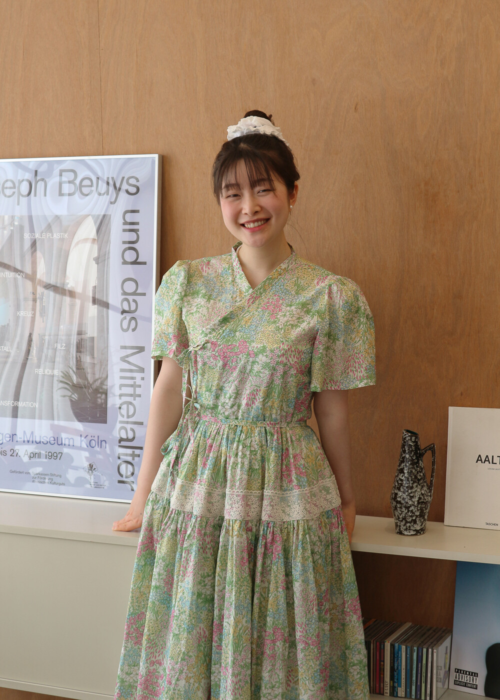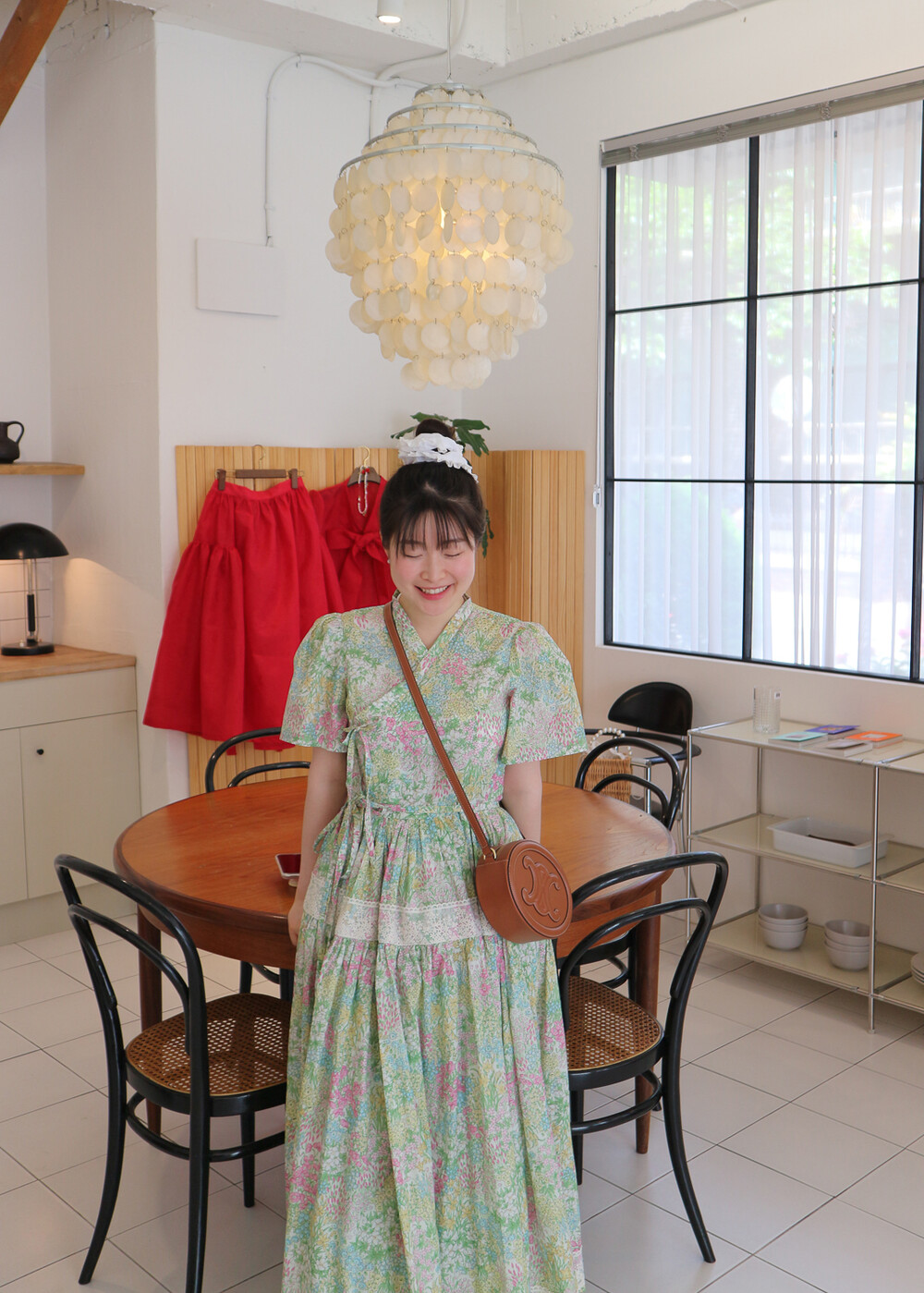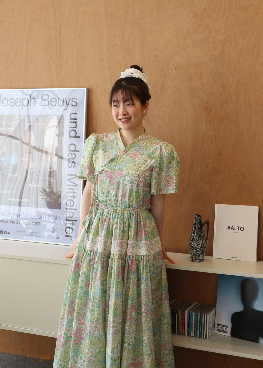 주었습니다. 아기자기한 꽃과 풀 패턴이 숲을 연상시키는 원피스입니다.