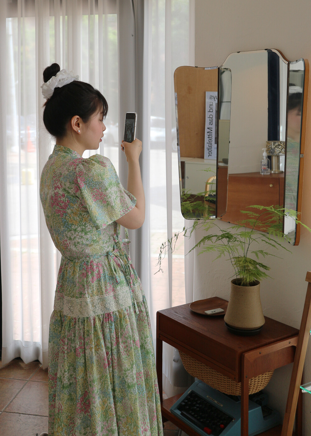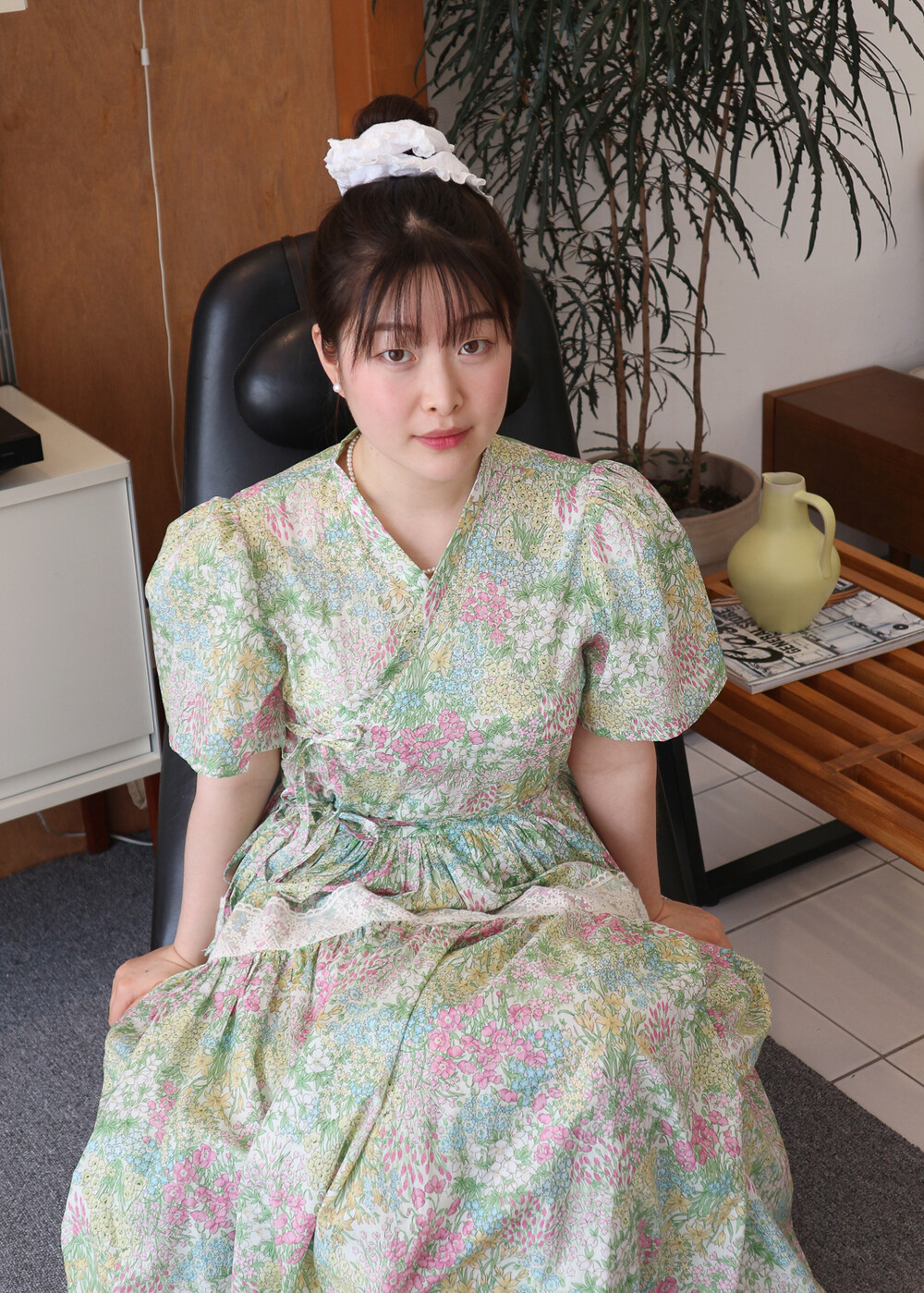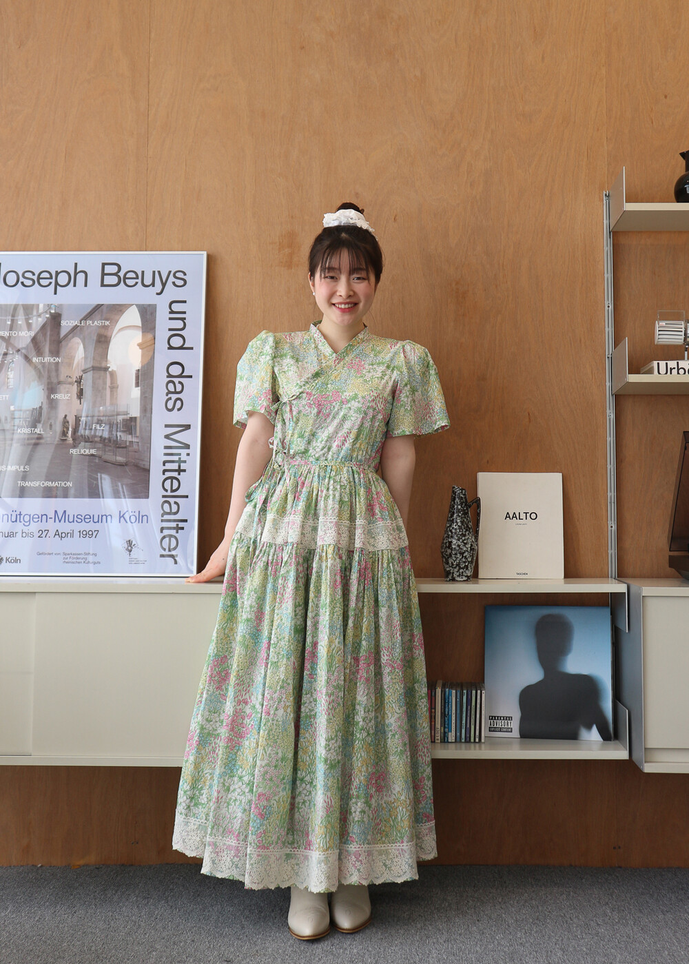 주었습니다. 아기자기한 꽃과 풀 패턴이 숲을 연상시키는 원피스입니다.