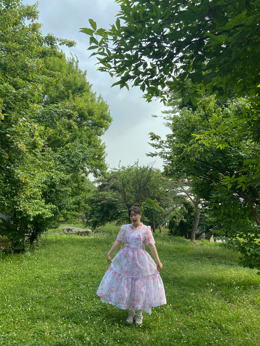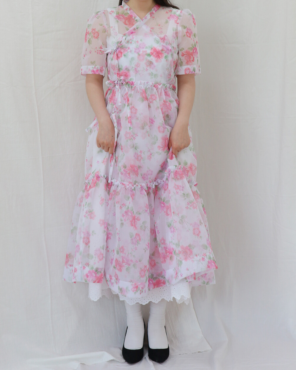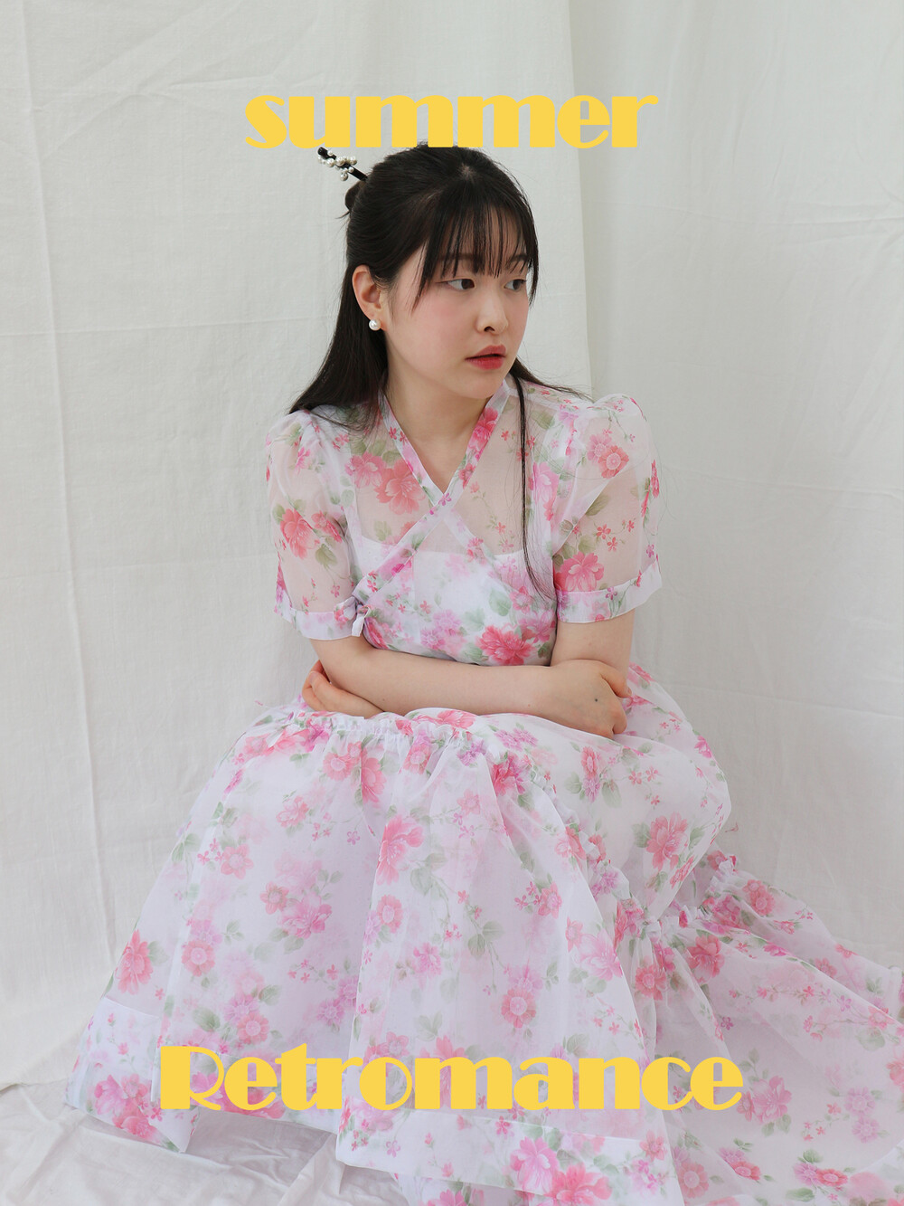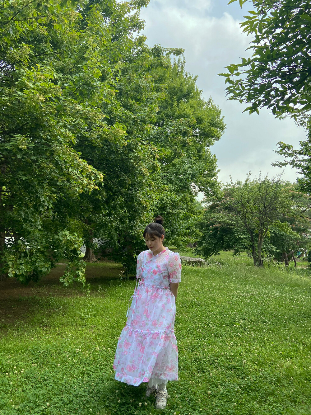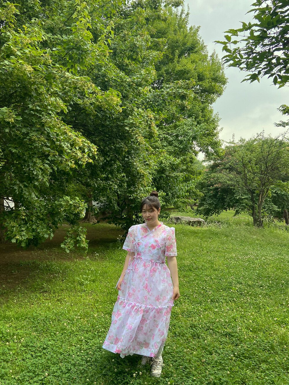 여름과 잘 어울리는 플라워 노방 원단으로 제작된 캉캉원피스입니다.