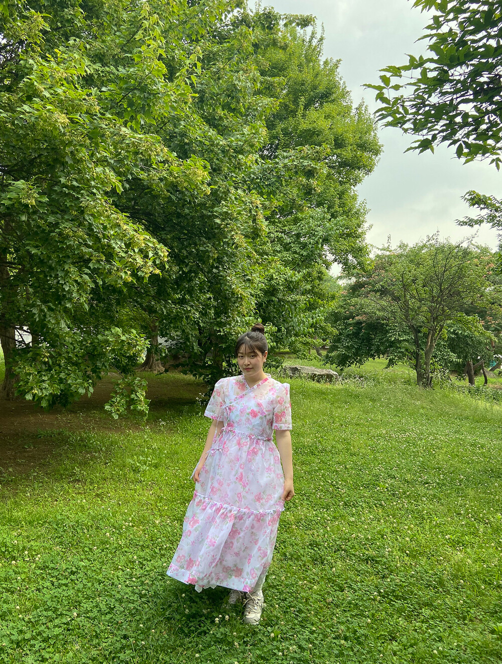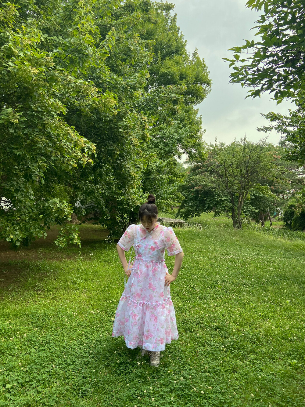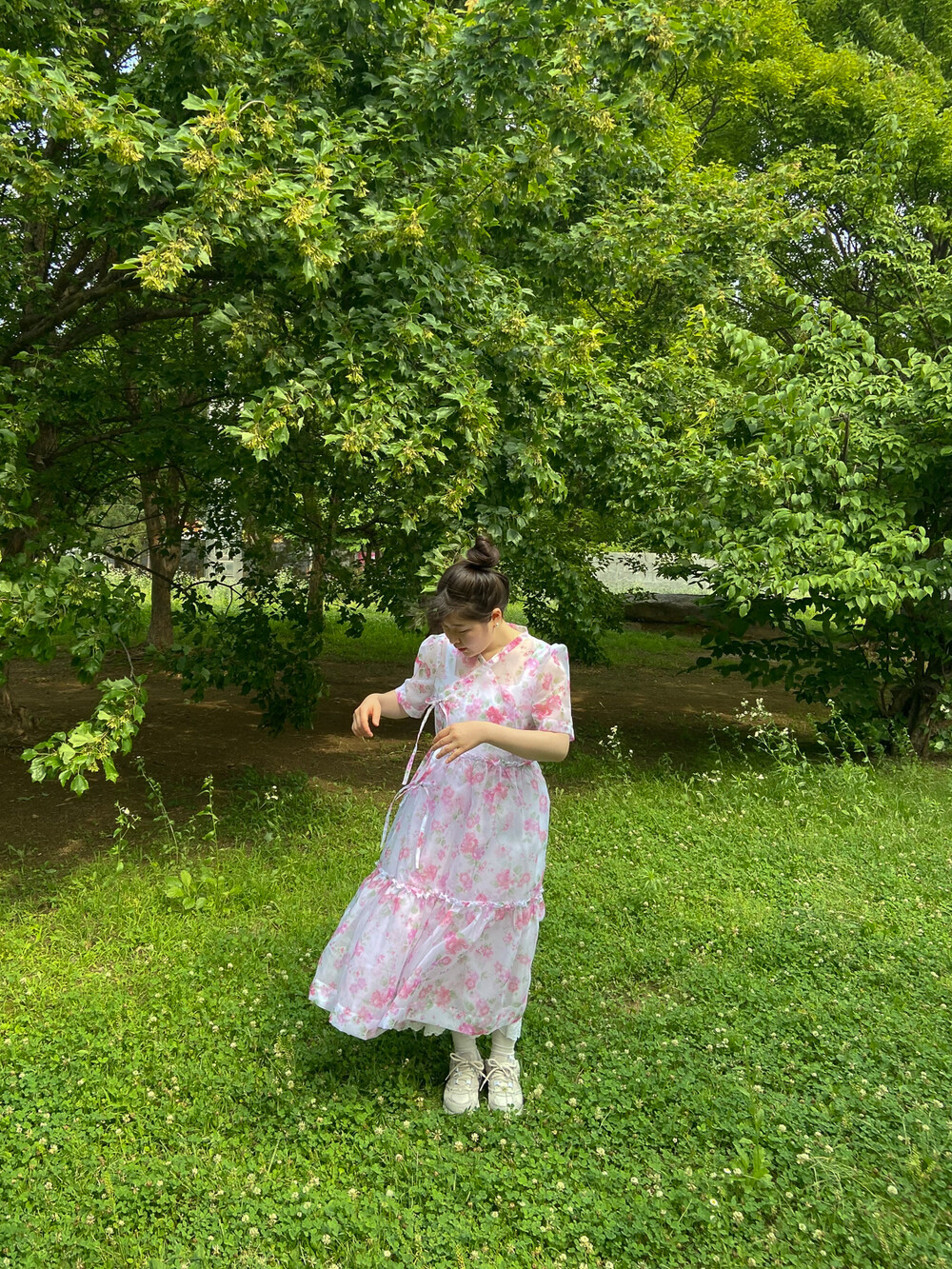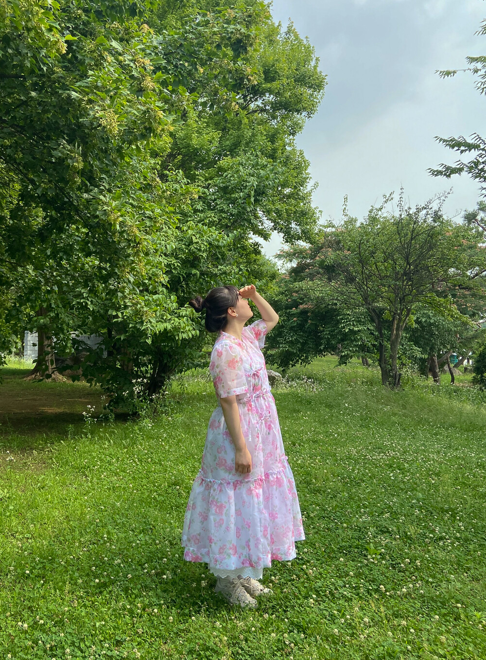 여름과 잘 어울리는 플라워 노방 원단으로 제작된 캉캉원피스입니다.