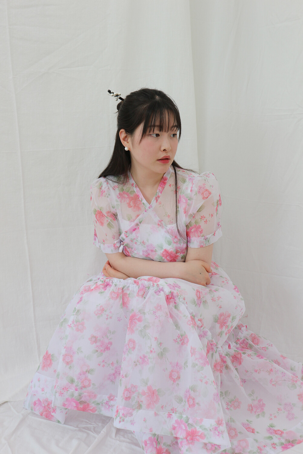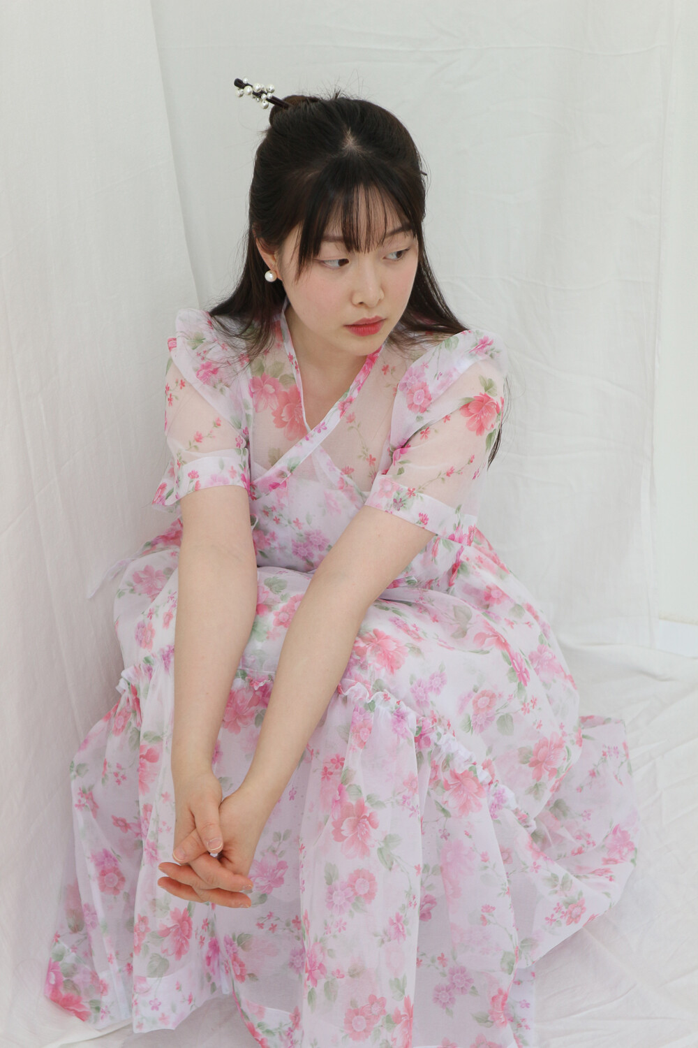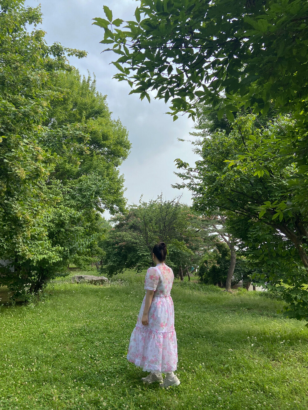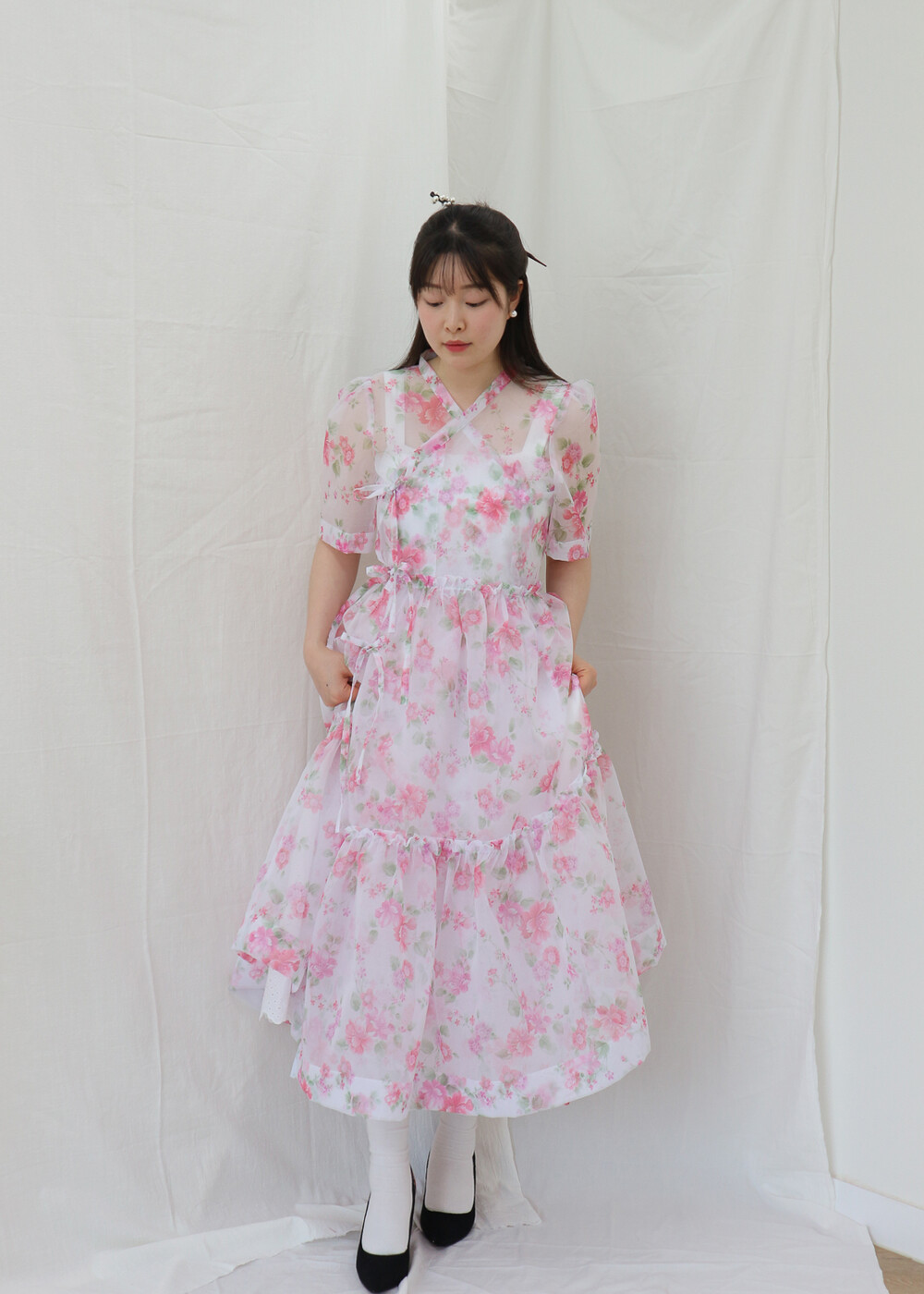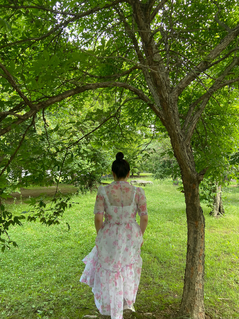 여름과 잘 어울리는 플라워 노방 원단으로 제작된 캉캉원피스입니다.